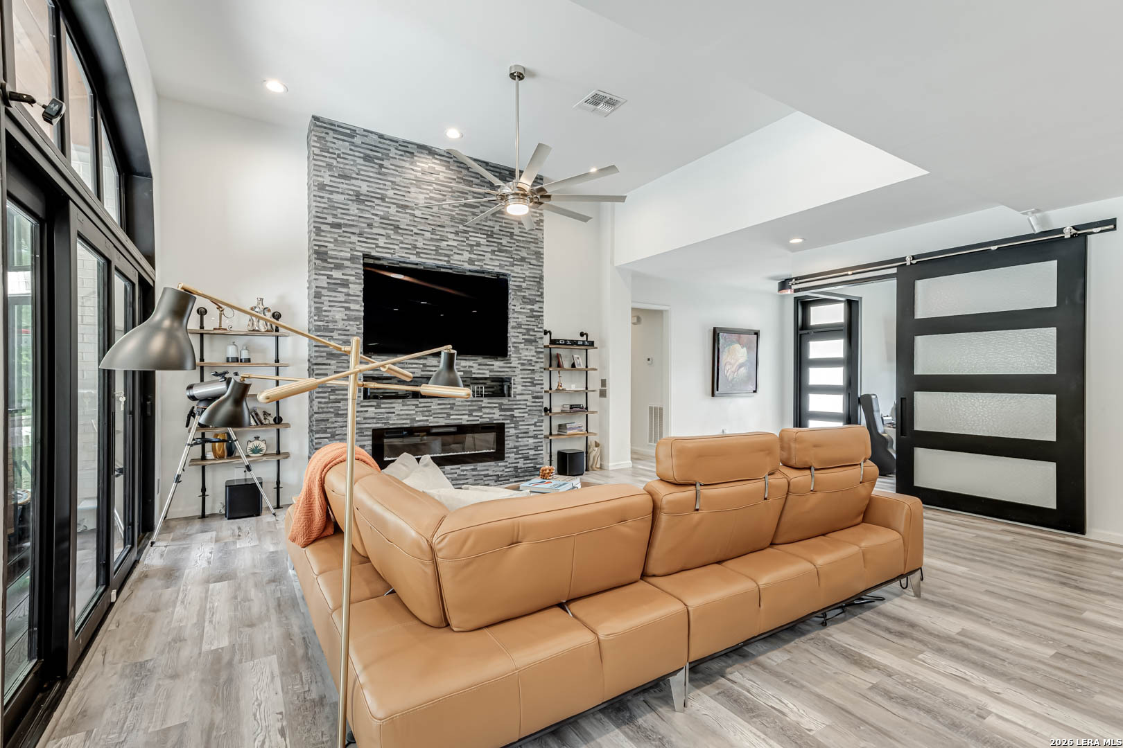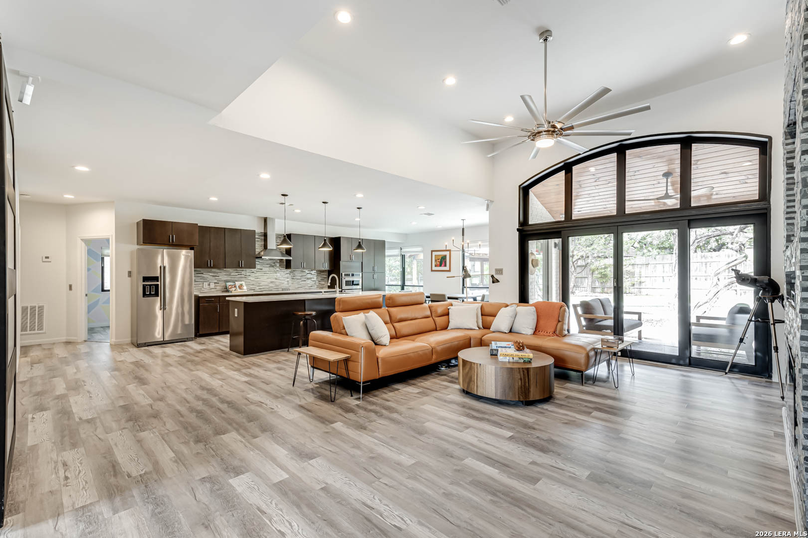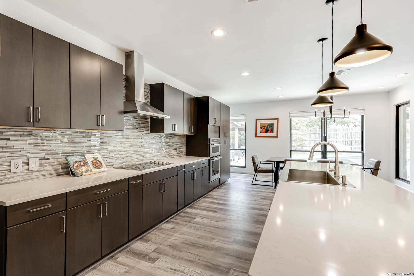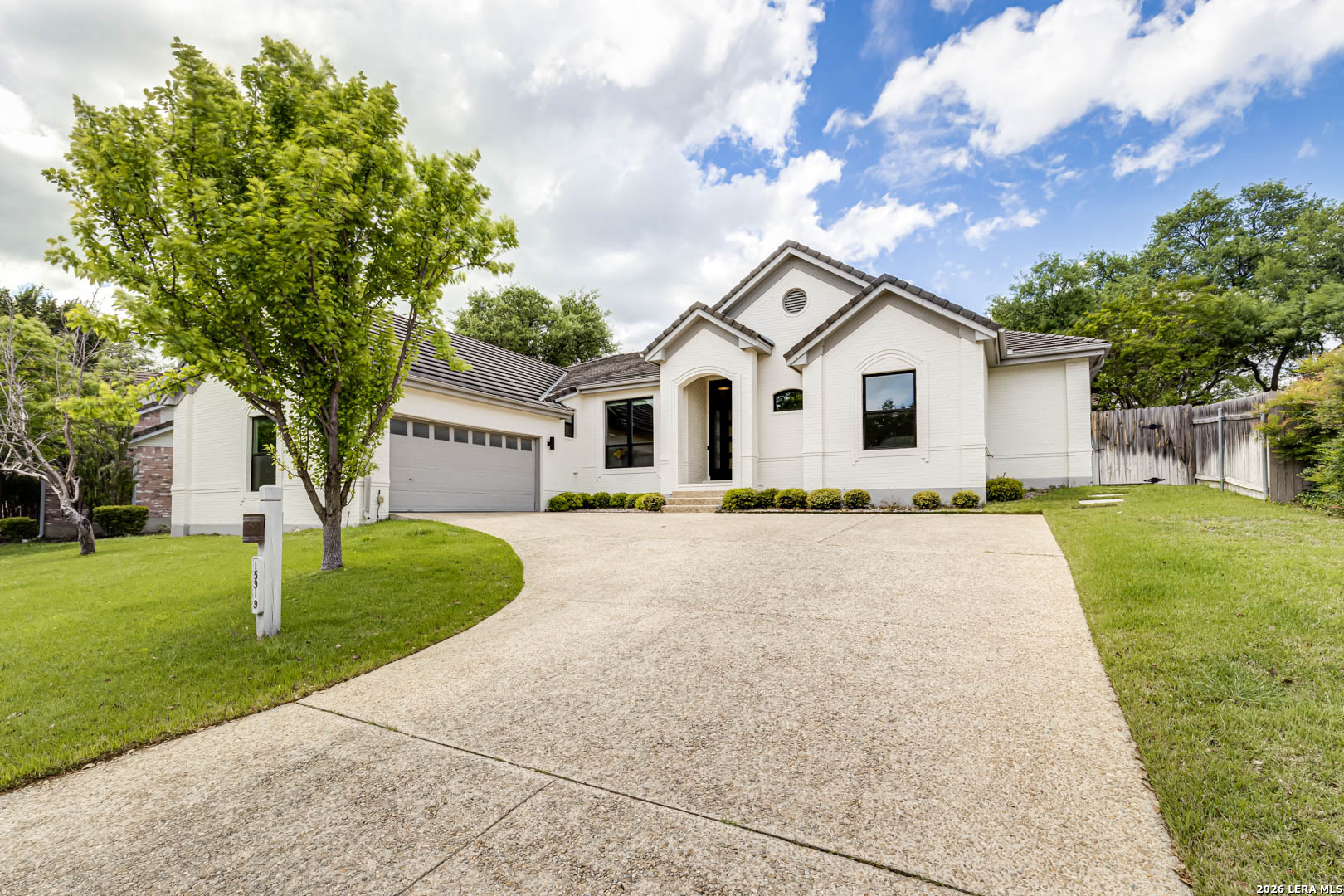 Serenity awaits in this exquisite one-story sanctuary, nestled within the exclusive & desirable guarded "Mission Ridge" Community in one of San Antonio's most convenient location, this Home offers 4 spacious bedrooms, 3 luxurious bathrooms - recently transformed with precision, elegance and modern touches, gleaming luxury laminated floors, a sophisticated kitchen, with custom cabinetry, solid countertops, new light fixtures Crisp new exterior doors and expansive windows and doors invite abundant natural light and serene views of the Resort -like -backyard which is an enchanting and relaxing retreat, complete with a sparkling pool and spa, travertine porch, and an elegant gazebo - complete with custom grill and fireplace - perfect for al fresco gatherings beneath starlit skies. Elevated window treatments and impeccable finishes throughout. A true masterpiece!