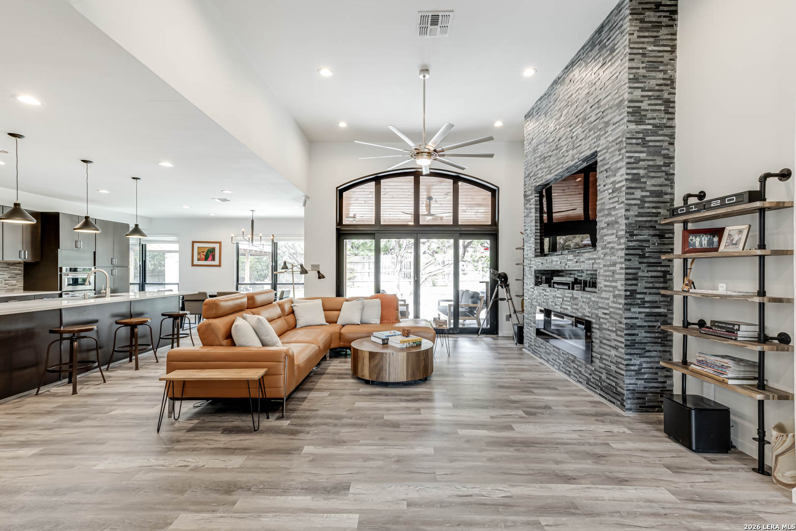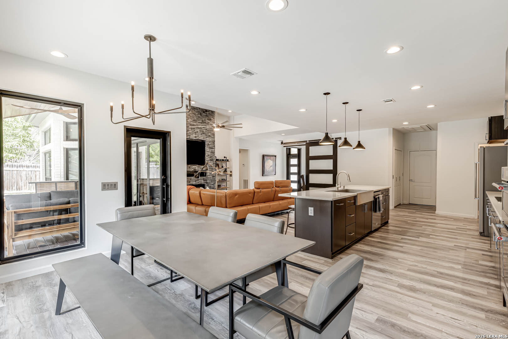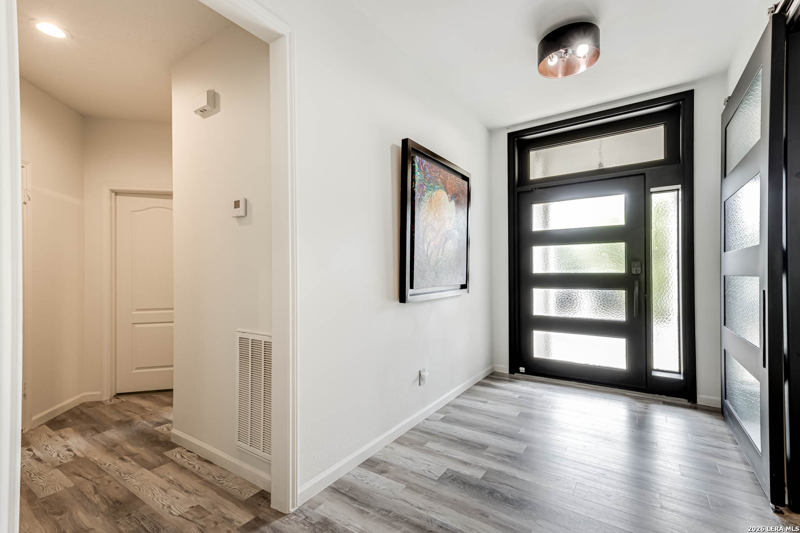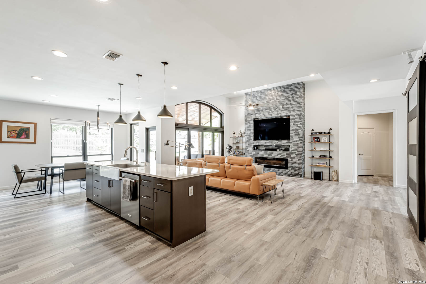 Serenity awaits in this exquisite one-story sanctuary, nestled within the exclusive & desirable guarded "Mission Ridge" Community in one of San Antonio's most convenient location, this Home offers 4 spacious bedrooms, 3 luxurious bathrooms - recently transformed with precision, elegance and modern touches, gleaming luxury laminated floors, a sophisticated kitchen, with custom cabinetry, solid countertops, new light fixtures Crisp new exterior doors and expansive windows and doors invite abundant natural light and serene views of the Resort -like -backyard which is an enchanting and relaxing retreat, complete with a sparkling pool and spa, travertine porch, and an elegant gazebo - complete with custom grill and fireplace - perfect for al fresco gatherings beneath starlit skies. Elevated window treatments and impeccable finishes throughout. A true masterpiece!