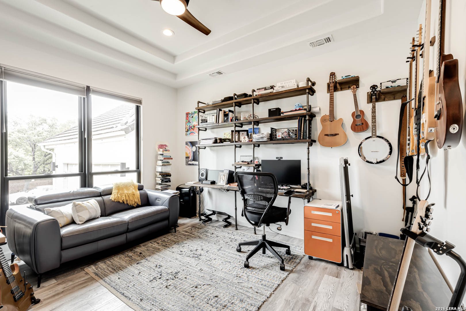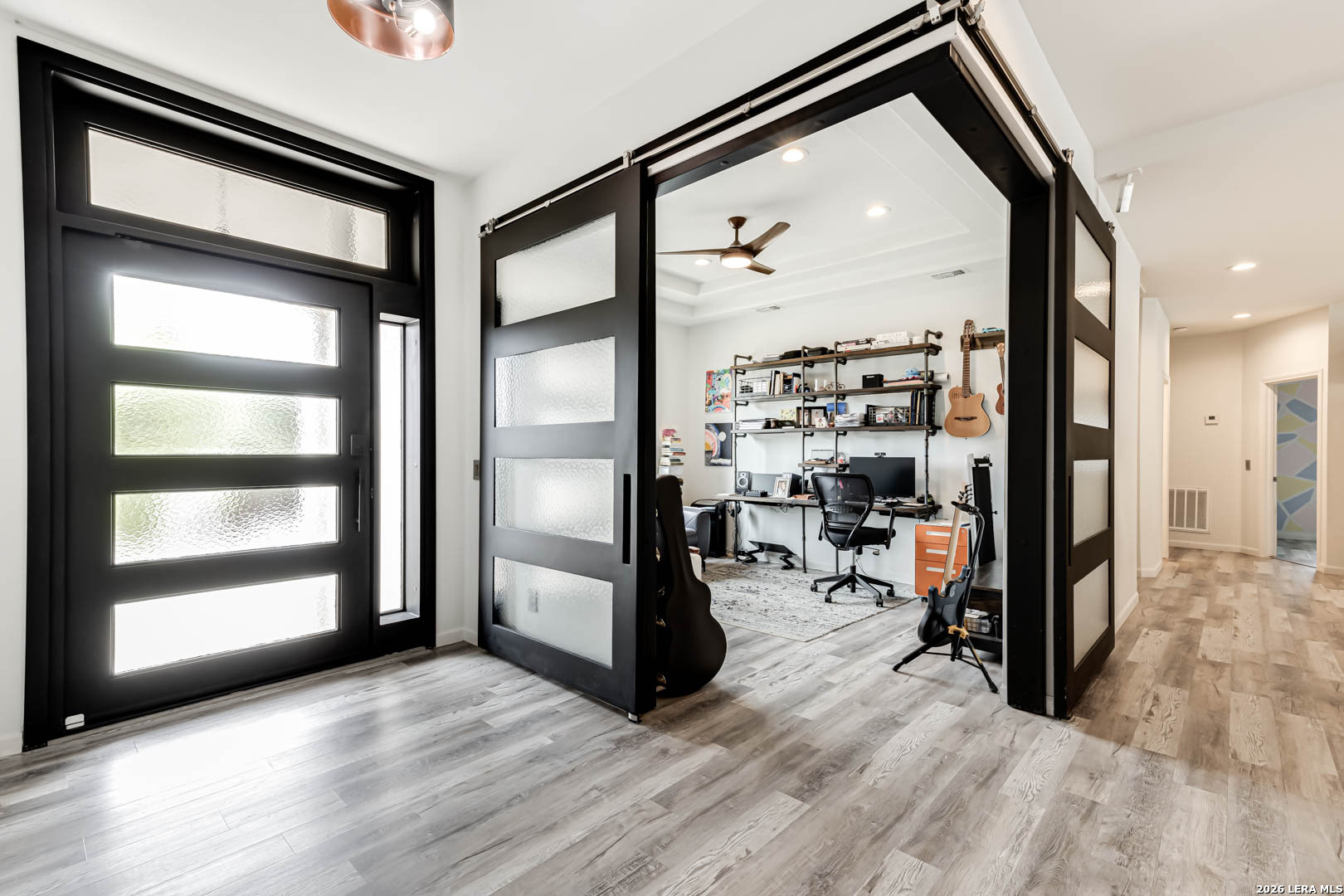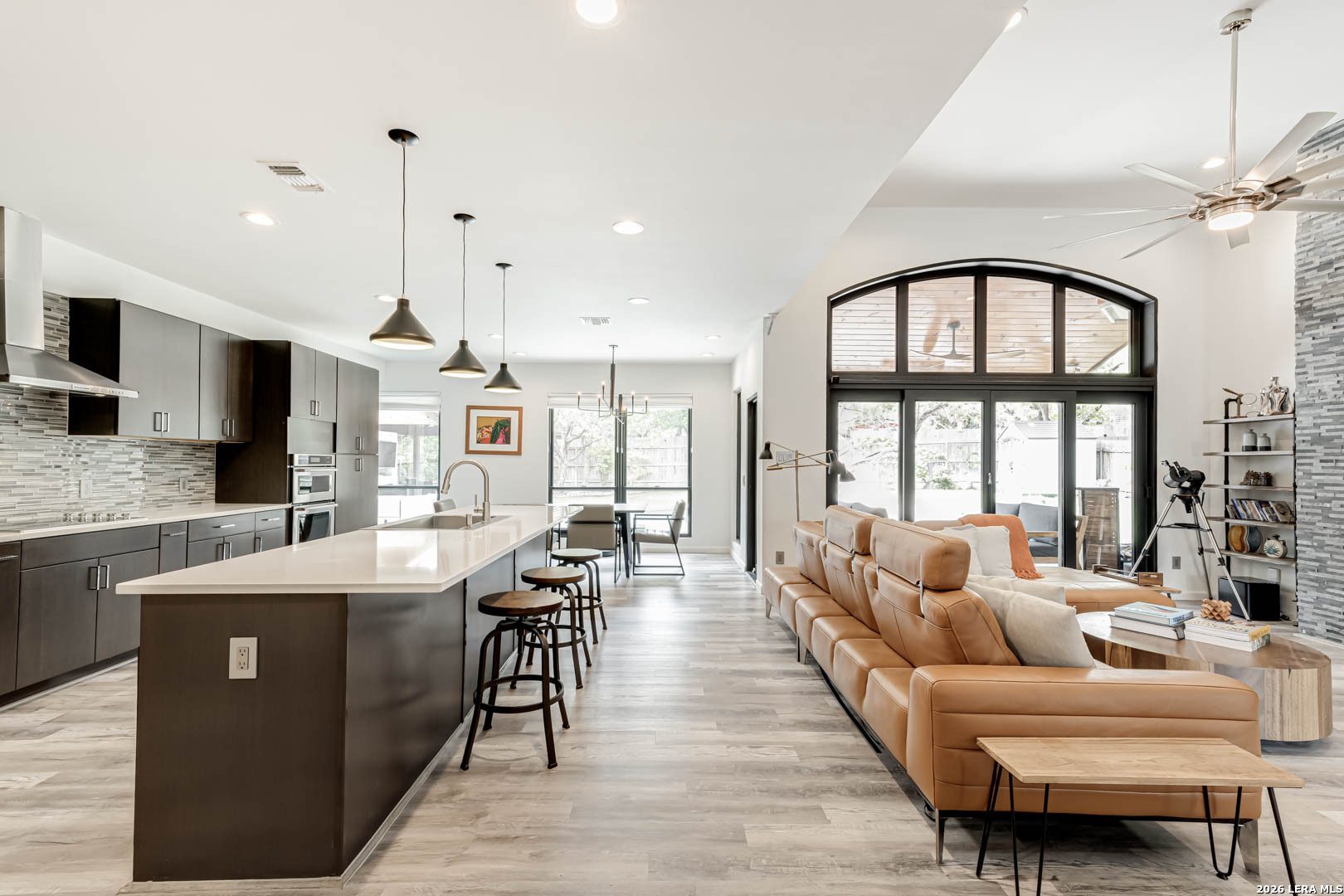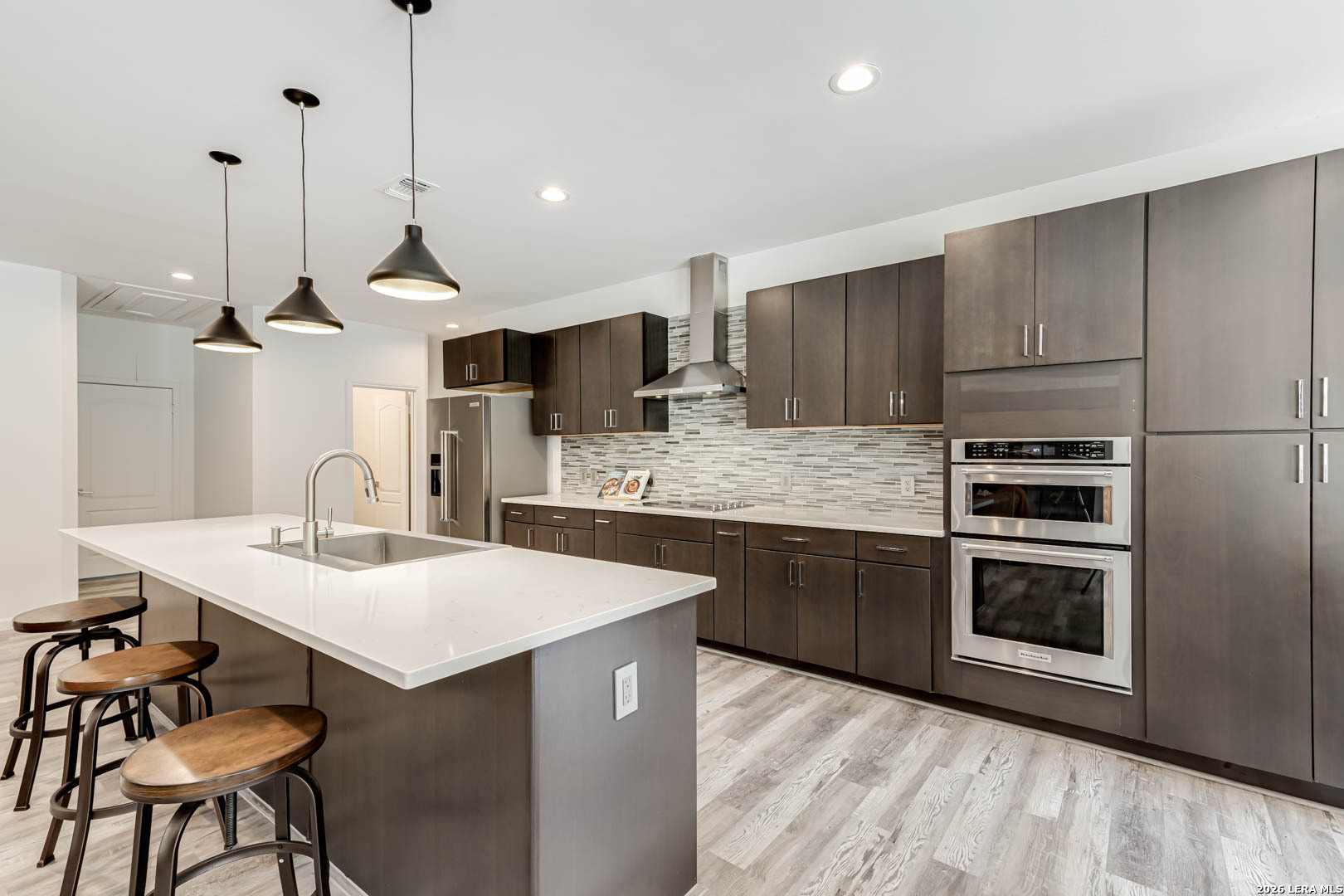 Serenity awaits in this exquisite one-story sanctuary, nestled within the exclusive & desirable guarded "Mission Ridge" Community in one of San Antonio's most convenient location, this Home offers 4 spacious bedrooms, 3 luxurious bathrooms - recently transformed with precision, elegance and modern touches, gleaming luxury laminated floors, a sophisticated kitchen, with custom cabinetry, solid countertops, new light fixtures Crisp new exterior doors and expansive windows and doors invite abundant natural light and serene views of the Resort -like -backyard which is an enchanting and relaxing retreat, complete with a sparkling pool and spa, travertine porch, and an elegant gazebo - complete with custom grill and fireplace - perfect for al fresco gatherings beneath starlit skies. Elevated window treatments and impeccable finishes throughout. A true masterpiece!