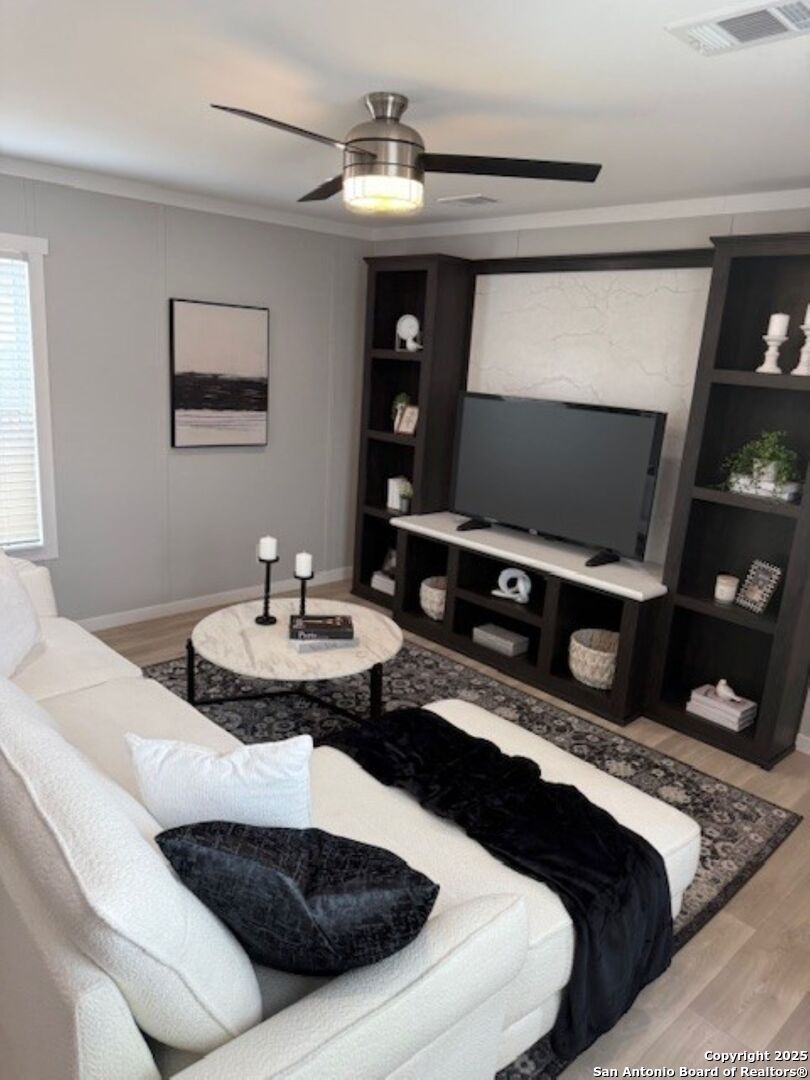 Just minutes from downtown Texas A&M San Antonio and Toyota Manufacturing, this brand new manufactured home is presented for lease (with option.) Home features 3 bedrooms, 2 full baths, and an open floorplan with kitchen and dining area perfect for entertaining. All new appliances are included with a smooth top stove. The spacious living area with build in shelving is perfect for family movie nights. The primary bedroom comes with a large walk in closet, double vanity and large tub in the primary bath. Other features for comfort are central cooling and heat with ceiling fans in the primary bedroom and living area, Low-E windows, and vents in ceiling.