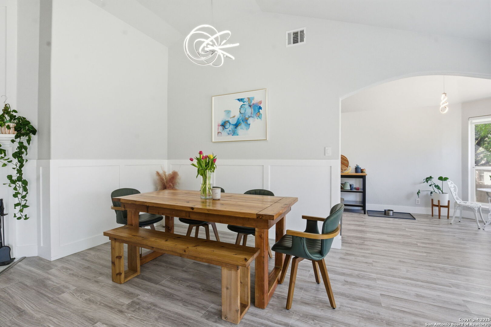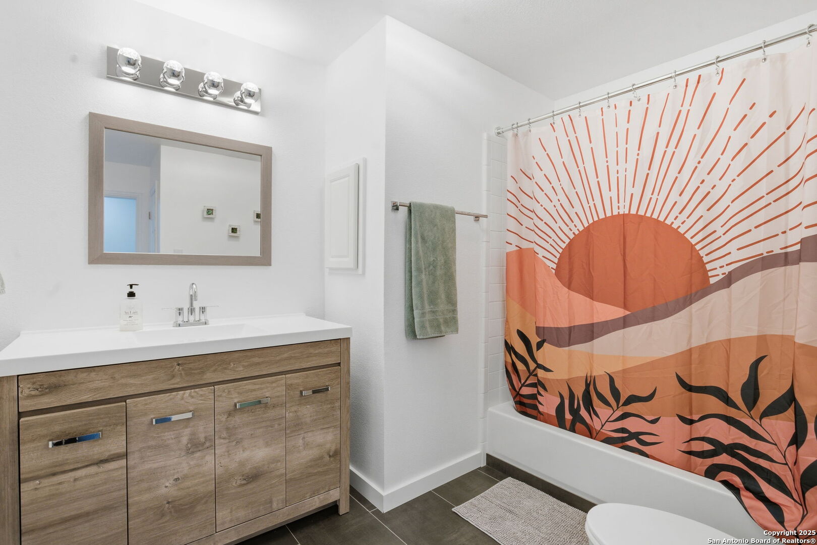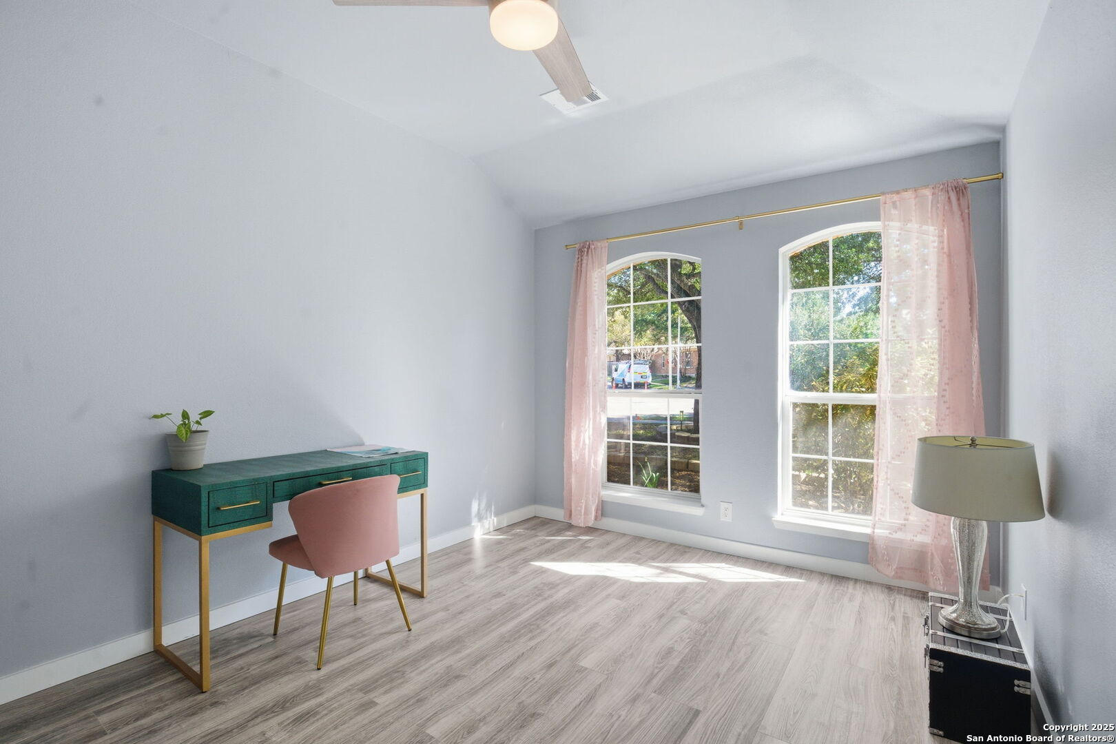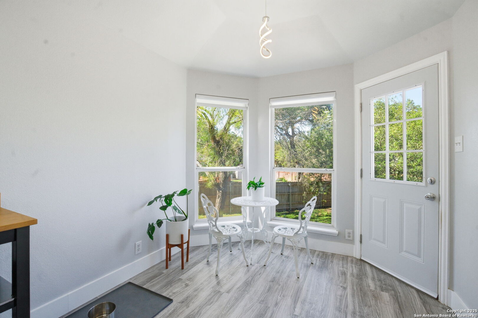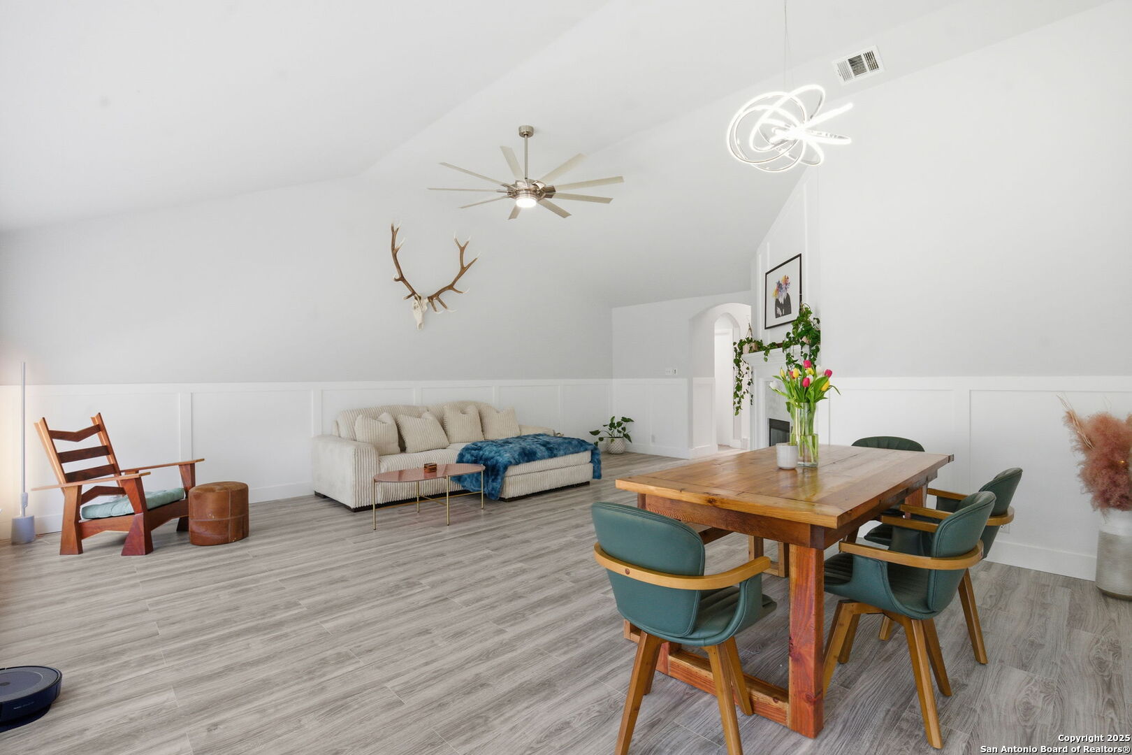 Nestled in the desirable Greenshire neighborhood, this beautifully renovated home blends classic charm with modern elegance. The inviting interior features wainscoting accents, a cozy fireplace, and abundant natural light. The chef-inspired kitchen boasts sleek countertops, stainless steel appliances, and a spacious walk-in pantry-perfect for entertaining or everyday living. The luxurious primary suite offers a spa-like retreat with a garden tub, separate shower, and generous closet space. Enjoy peaceful outdoor living on the private patio surrounded by mature trees on an oversized lot. Conveniently located near shopping, dining, major highways, and RAFB. This home combines comfort, style, and location in one of Schertz's most sought-after communities.