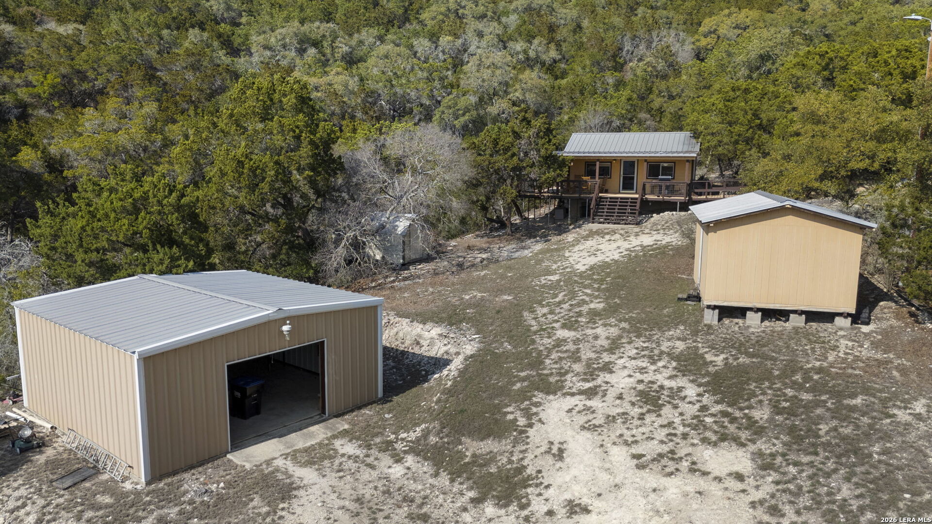 Tucked away at the end of a private road, this secluded 11-acre Hill Country retreat offers pristine views and the perfect escape from the hustle of everyday life. The property features a charming 500-square-foot cottage with beautiful pine finishes, a durable metal roof, and a welcoming wraparound porch-ideal for relaxing and taking in the surrounding scenery. A seasonal creek meanders through the land, enhancing the peaceful setting, while the acreage is partially fenced and horse-friendly, making it a great option for equestrian use or simply enjoying wide-open space. There's also a workshop and or storage, giving you plenty of room for hobbies, tools, and outdoor equipment. Whether you're looking for a second residence, weekend getaway, or Airbnb investment opportunity, this property offers incredible versatility. All furniture conveys, allowing you to move right in or start hosting immediately. With ample space to build a second home, the possibilities are endless on this scenic Hill Country property.