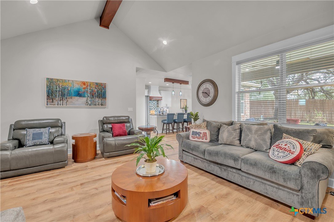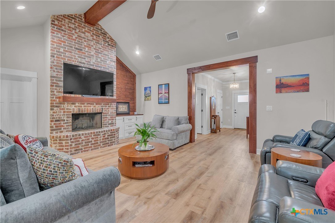Step into this stunning 3 bedroom, 2 bathroom home built in 2023, where modern design meets thoughtful craftsmanship. With 1,782 square feet of living space, this home offers a bright and welcoming atmosphere that combines style, comfort, and functionality. An open concept layout and vaulted ceilings set the tone the moment you step inside, highlighting the spacious main living area. The gourmet kitchen stands at the heart of the home, featuring smart appliances, premium cabinetry, granite countertops, and a large island, all complemented by a welcoming dining area ideal for everyday living or entertaining. A split floor plan ensures privacy for the primary suite while maintaining a smooth, functional flow throughout. Discover thoughtful details in every corner such as custom woodwork, luxury vinyl flooring, and a floor-to-ceiling, brick fireplace, adding warmth, character, and timeless appeal to the home. Enjoy the outdoors on a beautifully manicured lawn enclosed by both a privacy fence and a custom stone fence, creating a serene and secluded setting. A covered patio provides the perfect spot for relaxing, while mature trees enhance the natural ambiance. The property also features a 14x20 detached shop, with access to electricity, offering versatile space for storage, projects, or hobbies. With the benefits of new construction, designer finishes, and a peaceful setting, this home delivers quality and comfort in every detail.