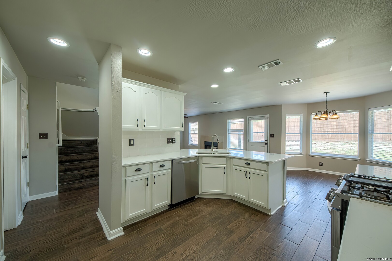 Guy Fieri Would Love...the thoughtfully designed gourmet kitchen of this beautiful 3 bedroom, 2.5 bath traditional home. With generous quartz counters, professional gas oven/cooktop and microwave - it's a cook's dream. Wonderful breakfast bar, too. 1762 square feet. Newly painted inside/out. Walls of windows, fireplace & ceramic tile. A winding staircase that leads to a loft and all three bedrooms. The master bath has a walk-in shower and double vanity. Close to schools and shopping. Come see!