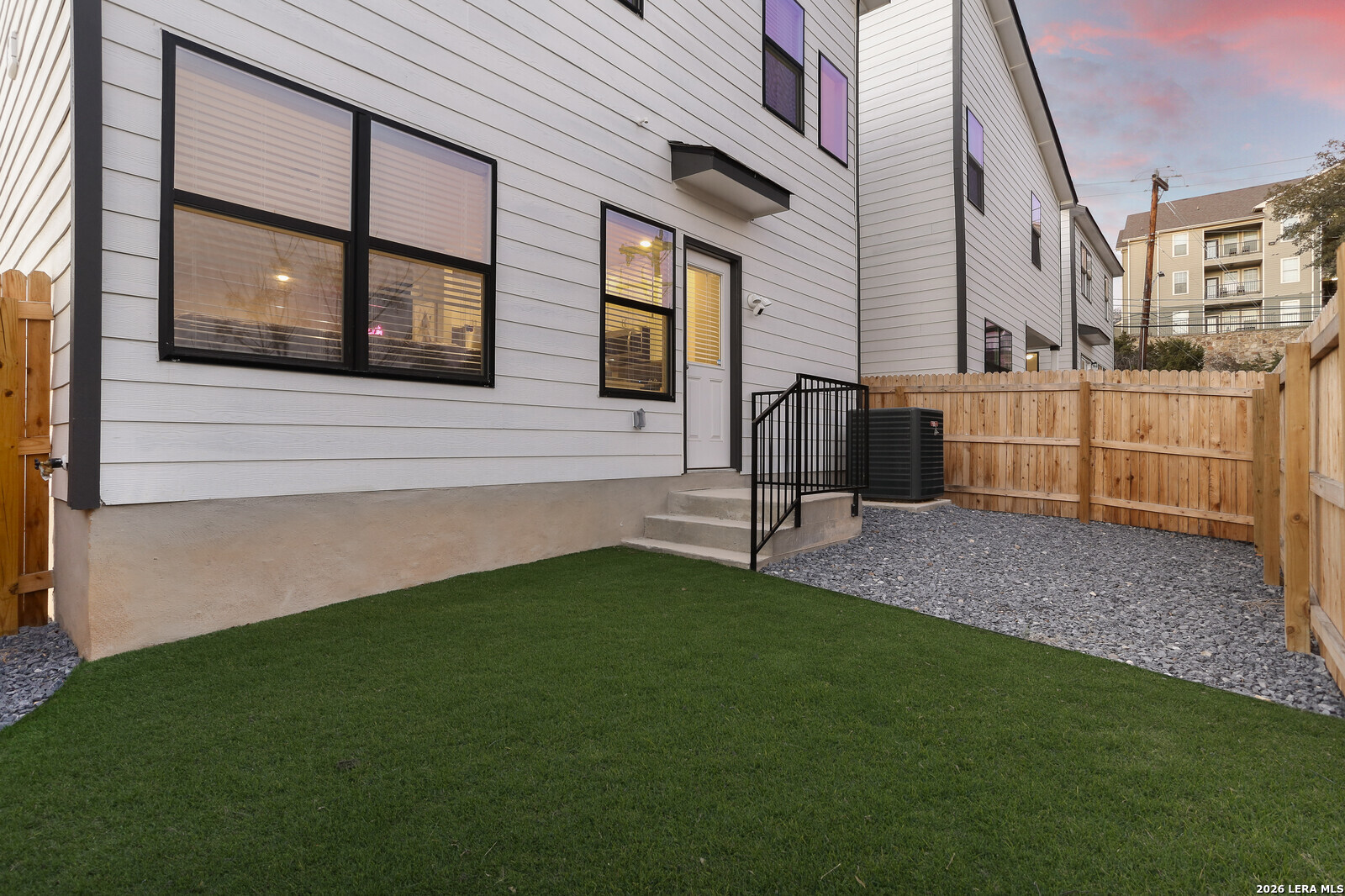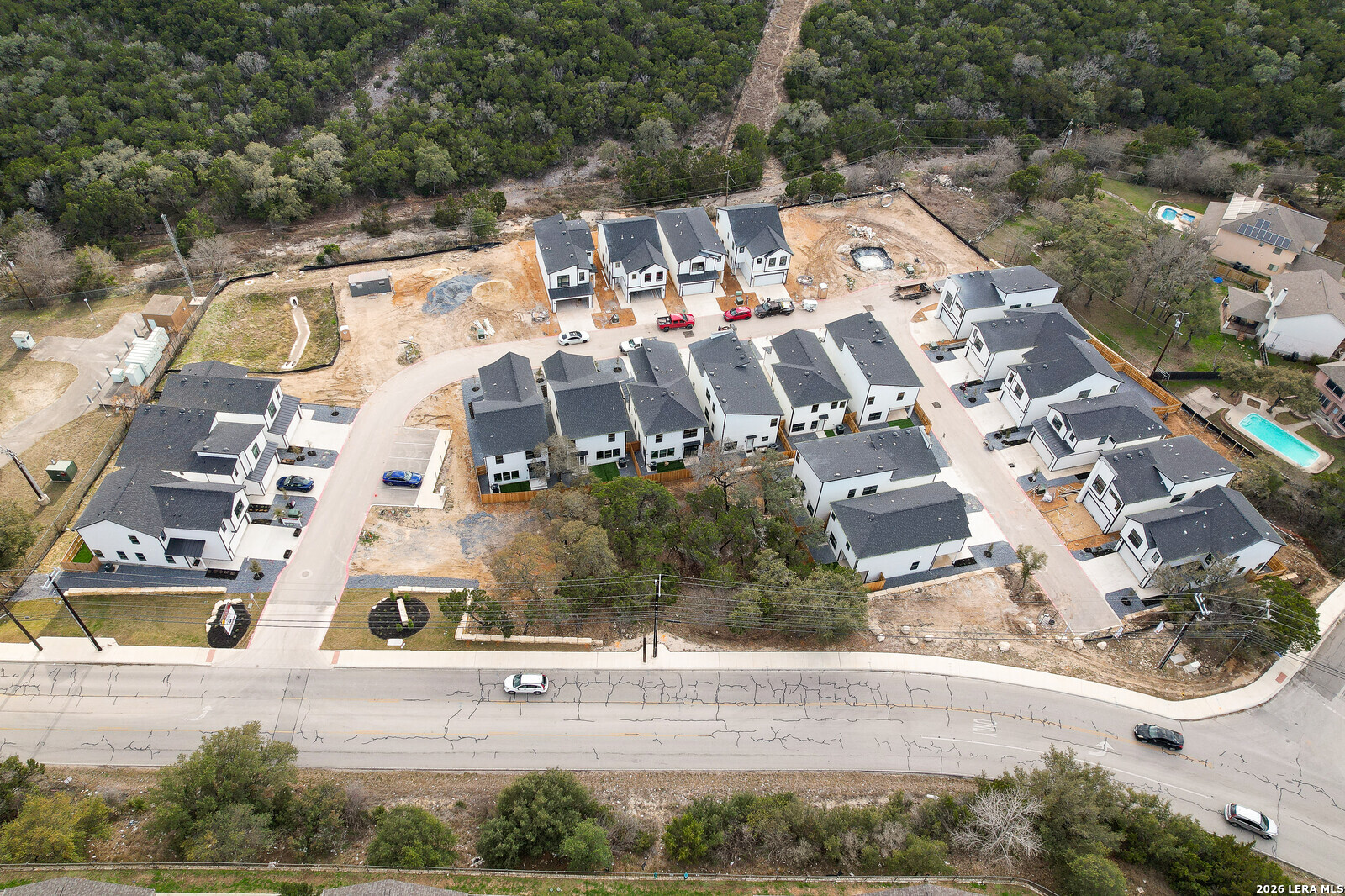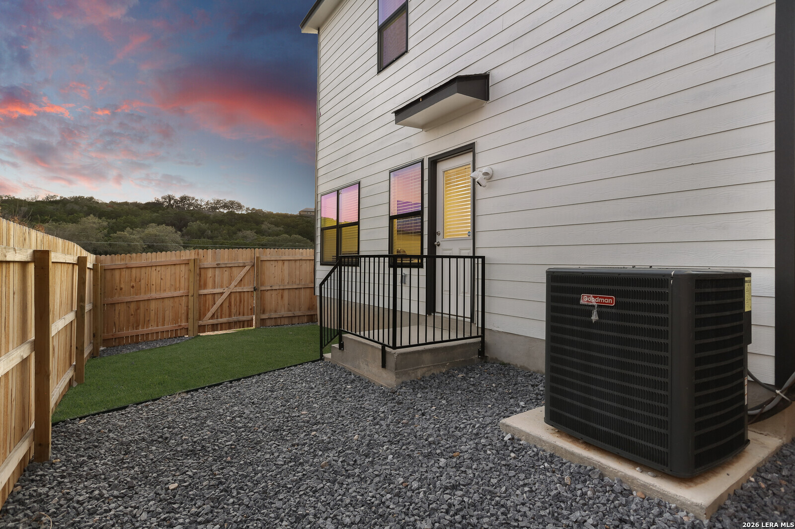 Welcome to The Babcock Noir, a modern home located in a condo-style community where opportunities rarely come available. The striking white exterior with bold black trim offers strong contemporary curb appeal. Inside, the open-concept floor plan is designed for both everyday living and entertaining, filled with abundant natural light throughout the main living areas. The kitchen and living spaces flow seamlessly together, creating an inviting atmosphere for hosting family and friends. The spacious primary suite features a tray ceiling and a well-appointed en-suite bathroom with double vanity, large walk-in shower, and generous walk-in closet. Enjoy a low-maintenance backyard with beautiful Texas sky views-perfect for relaxing evenings or outdoor gatherings. Ideally situated in Northwest San Antonio, this home offers quick access to UTSA, The Shops at La Cantera, and Six Flags Fiesta Texas. Convenient access to Loop 1604, I-10, Bandera Rd makes commuting, shopping, dining, and entertainment just minutes away. Modern design, effortless living, and an unbeatable location all ready to welcome you home. *** 4.25 Assumable Rate ***