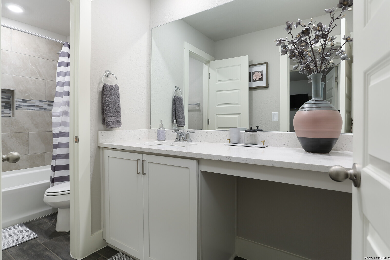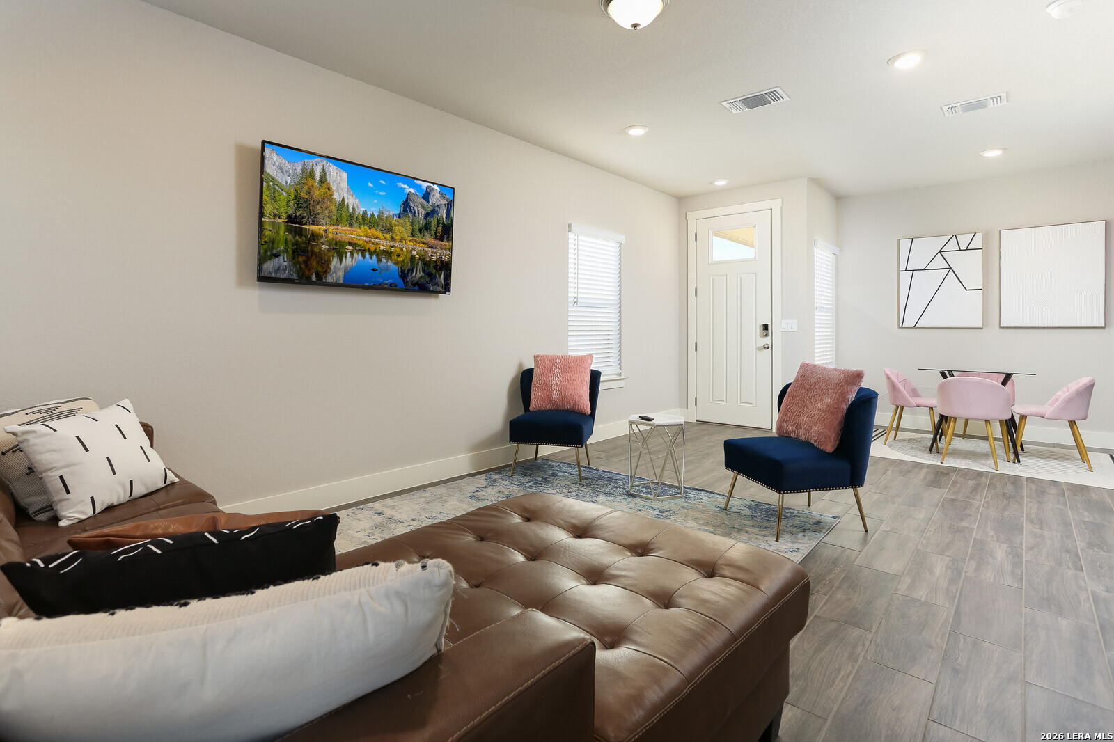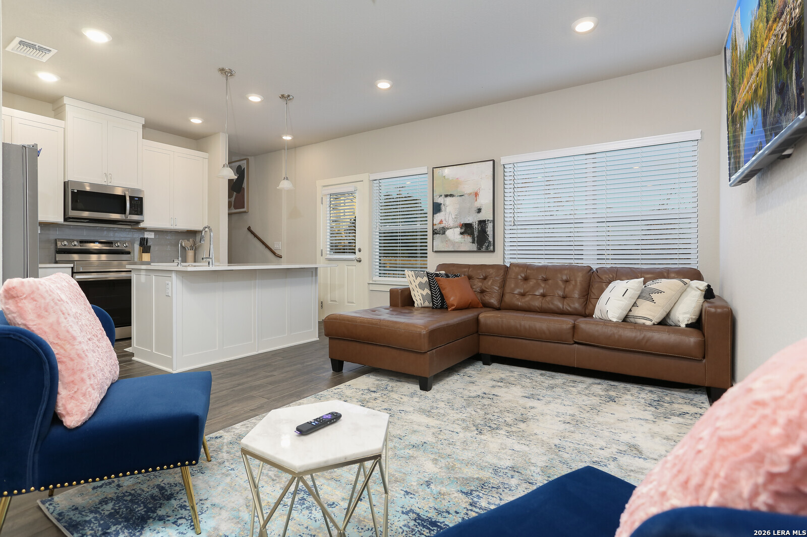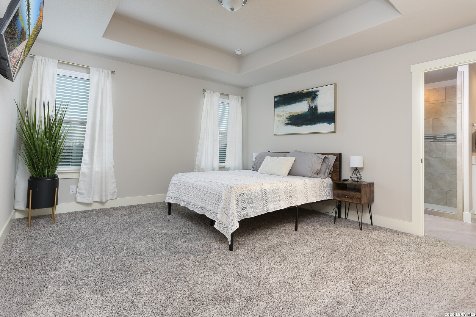 Welcome to The Babcock Noir, a modern home located in a condo-style community where opportunities rarely come available. The striking white exterior with bold black trim offers strong contemporary curb appeal. Inside, the open-concept floor plan is designed for both everyday living and entertaining, filled with abundant natural light throughout the main living areas. The kitchen and living spaces flow seamlessly together, creating an inviting atmosphere for hosting family and friends. The spacious primary suite features a tray ceiling and a well-appointed en-suite bathroom with double vanity, large walk-in shower, and generous walk-in closet. Enjoy a low-maintenance backyard with beautiful Texas sky views-perfect for relaxing evenings or outdoor gatherings. Ideally situated in Northwest San Antonio, this home offers quick access to UTSA, The Shops at La Cantera, and Six Flags Fiesta Texas. Convenient access to Loop 1604, I-10, Bandera Rd makes commuting, shopping, dining, and entertainment just minutes away. Modern design, effortless living, and an unbeatable location all ready to welcome you home. *** 4.25 Assumable Rate ***