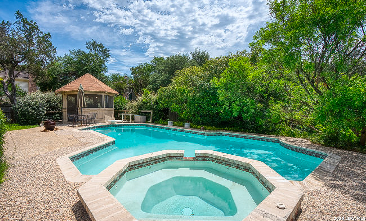 Experience elevated living in this spacious 4-bedroom residence located in the highly coveted, guard-gated Mission Ridge subdivision. Meticulously maintained and updated, this home features a durable tile roof, recent HVAC updates, and elegant plantation shutters throughout. The first floor boasts impressive travertine tile in a versaille pattern, flowing into a remodeled gourmet kitchen featuring custom maple cabinets, updated appliances, and an oversized granite island perfect for culinary pursuits. Designed for entertaining, the open layout includes a formal dining area, a dedicated home office, and two distinct living spaces. Step outside to your private oasis, featuring a sparkling inground pool, expansive patio areas, and a tranquil gazebo. Located in a premier North Central location, minutes from the airport, this competitively priced home offers a luxurious lifestyle.