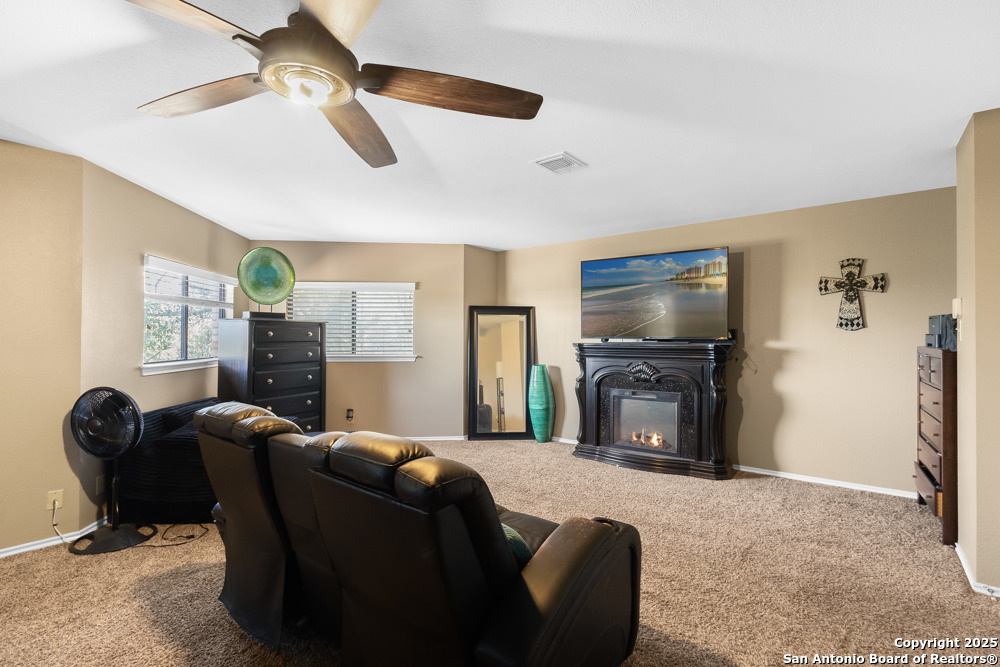 Spacious 2-story home with 3,635 sq. ft. offering 4 bedrooms upstairs and 2.5 baths. Three living areas include a family room with fireplace and an upstairs bonus room. Beautiful wood flooring in living spaces, ceramic tile in kitchen and wet areas. The primary suite features a spacious glass-door shower and oversized closet. Generous closets and a large pantry provide excellent storage. Enjoy outdoor living on the deck overlooking a big backyard. Recent 5-ton HVAC ensures comfort and efficiency, complemented by updated ceiling fans throughout. Conveniently located near Randolph AFB, Fort Sam Houston, IKEA, and The Forum shopping center.