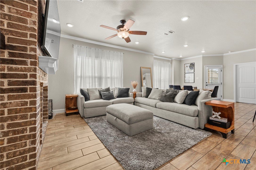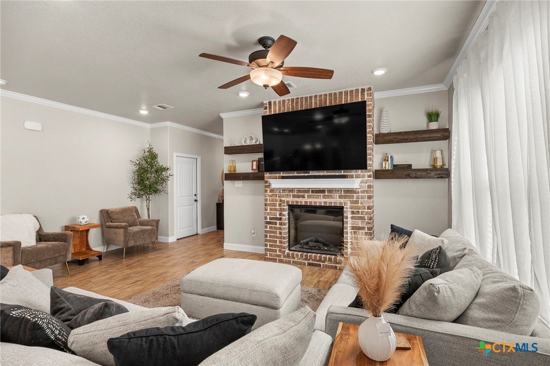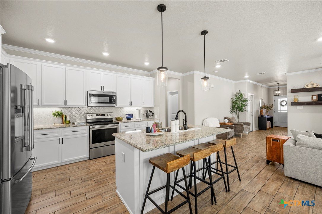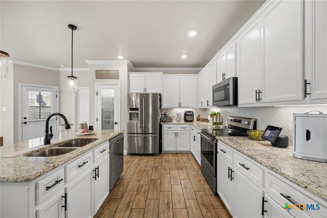 Located in Prairie Ridge Phase I in Temple ISD, this well-maintained 4-bedroom, 3-bath single-story ranch home offers 1,777 square feet of thoughtfully designed living space. Built in 2021 and situated on approximately 0.137 acres in Bell County, the home features an open-concept layout with intentional upgrade features throughout. The kitchen serves as a true focal point, with UPGRADES! Showcasing 1¼-inch thick granite countertops, enhanced lighting, and seamless flow into the main living area. A stone-faced electric fireplace anchors the living room and adds warmth and character. Additional upgrades include under-cabinet lighting in the bathrooms, upgraded lighting in secondary bedrooms, and added flood lighting in closets for improved functionality and visibility. These enhancements create a bright, comfortable atmosphere that elevates everyday living. Located in a quiet neighborhood with supportive neighbors and a manageable HOA, residents enjoy community walking trails with dog waste stations and convenient access to major highways, shopping, dining, and downtown Temple. The home is also located near Baylor Scott & White Health and the VA, adding to the accessibility and convenience this property offers. This home is one you don't want to miss! https://orders.hammondshomemedia.com/sites/bppbxxa/unbranded