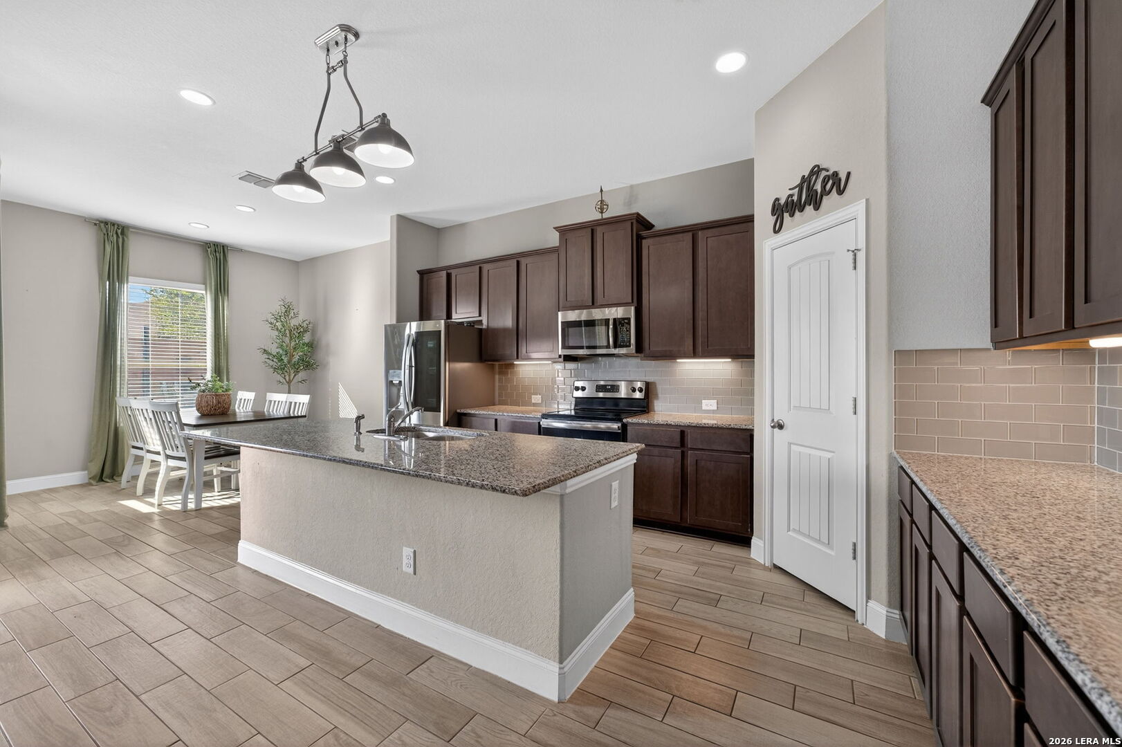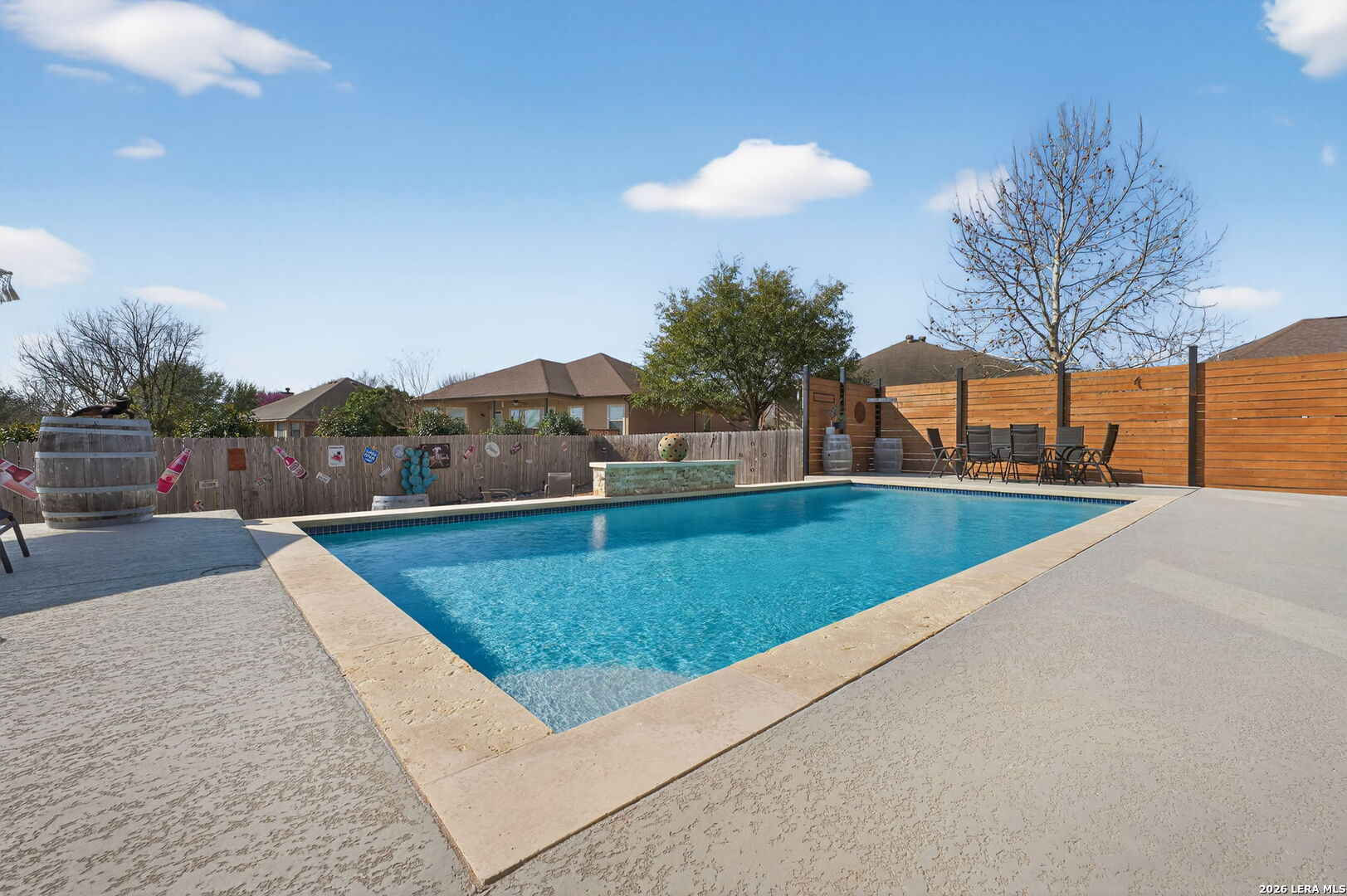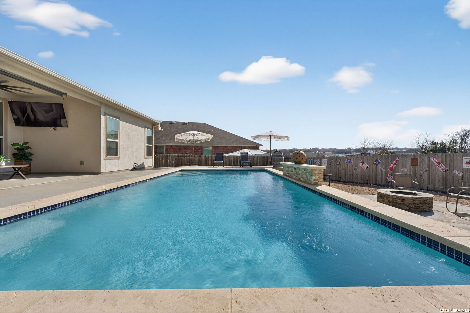 Located on a quiet cul de sac at 1608 Alvin Cir in New Braunfels, this beautifully maintained single story home offers an open layout, modern finishes, and a backyard MASSIVE designed for entertaining. The exterior features a combination of brick and stone with mature landscaping and a spacious driveway leading to a three car garage and garage bay that is taller in height, making it ideal for storing a boat, RV, or oversized vehicle. The property is NOT located in an HOA, providing additional flexibility for owners. The home has had only one owner and still carries approximately two years remaining on the foundation warranty, offering additional peace of mind. Inside, the home welcomes you with tall ceilings and a bright entry that flows into an open living space. Wood look tile flooring runs throughout the main living areas, creating a clean and durable finish. The living room opens directly to the kitchen and dining area, making the space ideal for everyday living or hosting guests. The kitchen includes granite countertops, a large center island, stainless steel appliances, dark cabinetry, and ample counter space for cooking and entertaining. The primary suite features tray ceilings, large windows that bring in natural light, and a spacious bathroom with dual vanities, granite counters, a large walk in shower, and generous storage. Additional It has a Secondary Ensuite perfect for a mother-in-lawlaw suite, bedrooms provide flexible space for guests, guests, or a home office. Step outside and the backyard becomes the highlight of the property. The outdoor space includes a covered patio, an in ground pool with a water feature, an extended pool deck for seating and dining, and a custom fire pit area perfect for relaxing evenings. The yard also includes a dedicated dog run and plenty of space to enjoy the outdoors while maintaining privacy. Conveniently located near shopping, dining, and major routes connecting New Braunfels to San Antonio and Austin, this home combines comfort, functionality, and outdoor living in one inviting property. Few minutes from 46 Lake Dunlap, and 10 minutes from downtown new Braunfels this is an incredible property in a neighborhood that rarely has inventory