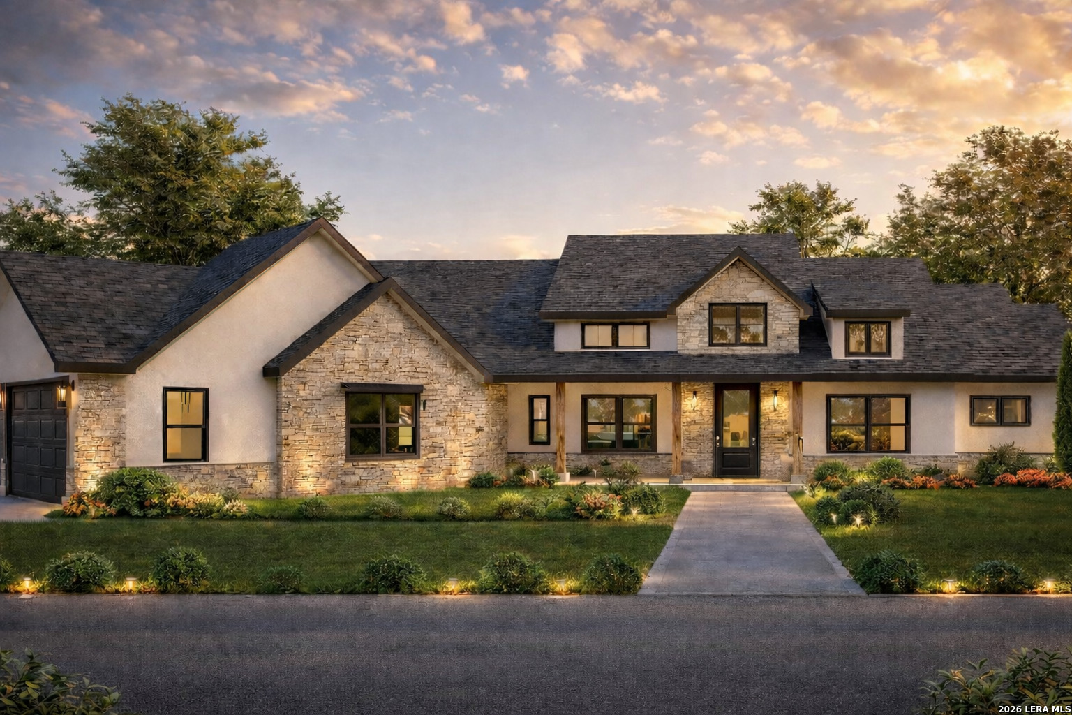 Coming in June 2026 is this beautiful 4 bedroom, 3.5 bath modern farmhouse on 1 acre in a quiet culdesac at the back of the Hondo Ridge subdivision in La Vernia, backing to a large acreage ranch for maximum privacy and Hill Country views. This single-story Silver T Construction home offers approximately 2,766 sq ft with an open-concept great room, island kitchen with butler's pantry, dedicated study with large closet, and private owner's retreat with his-and-hers closets and spa-inspired bath. Designer finishes include light, neutral interiors, custom shaker cabinetry, gleaming counters, luxury hard-surface flooring, and black fixtures and hardware for a clean modern-farmhouse look. Exterior features showcase a classic white stucco and stone palette with black accents, Onyx Black roof, striking black garage doors, and spacious front and rear covered porches to enjoy the peaceful ranch backdrop. Frigidaire appliance package (cooktop, wall oven, microwave, dishwasher, refrigerator) and vent hood insert included. Secure this new construction home now in preparation for that summer move!