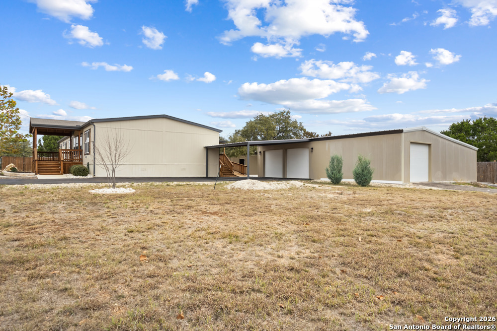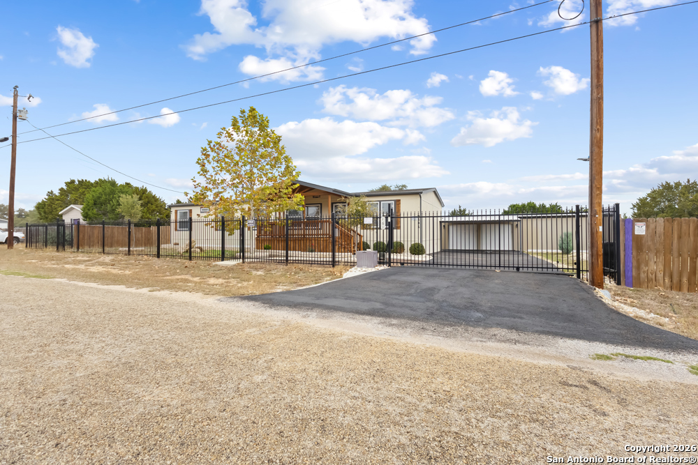 A large, covered front deck creates a warm welcome as you step directly into the living room, where a cozy fireplace sets the tone for comfort and relaxation. The open concept layout seamlessly connects the living room, dining area, and eat in kitchen, highlighted by quartz countertops, custom cabinetry, engineered wood flooring with padding that is water and scratch resistant, and a walk-in pantry designed for everyday functionality. Gas cooking is supported by an exterior propane tank that comes with the property. The spacious primary bedroom features a generous, ensuite bathroom with a soaking tub, standing shower, double vanity, and a large walk-in closet. Three cozy secondary bedrooms offer flexible space for family or guests, while a secondary family room provides the ideal setting for a media room or multipurpose use. Outdoors, a large, covered patio deck with an ADA accessible ramp extends the living space, complemented by a large concrete patio in the backyard, perfect for entertaining, and a fenced dog run. A third covered deck from the utility room offers additional access to the back yard. The property includes a detached barn with two expansive storage or workshop areas, and a two-car garage equipped with garage door openers. The detached barn, workshop and garage all feature insulated metal wall panels. A secondary dwelling unit is nearly complete, with electrical and plumbing in place and insulated metal wall panels, offering excellent potential for guest space or future use. Situated on a fully fenced .55 acre lot with a metal automatic 18 foot asphalt driveway gate, metal pedestrian gate, and an additional metal 18 foot yard gate, this property delivers privacy, versatility, and exceptional value. **PLEASE see the List of Features attached to the listing for a more detailed list of upgrades to the property.**