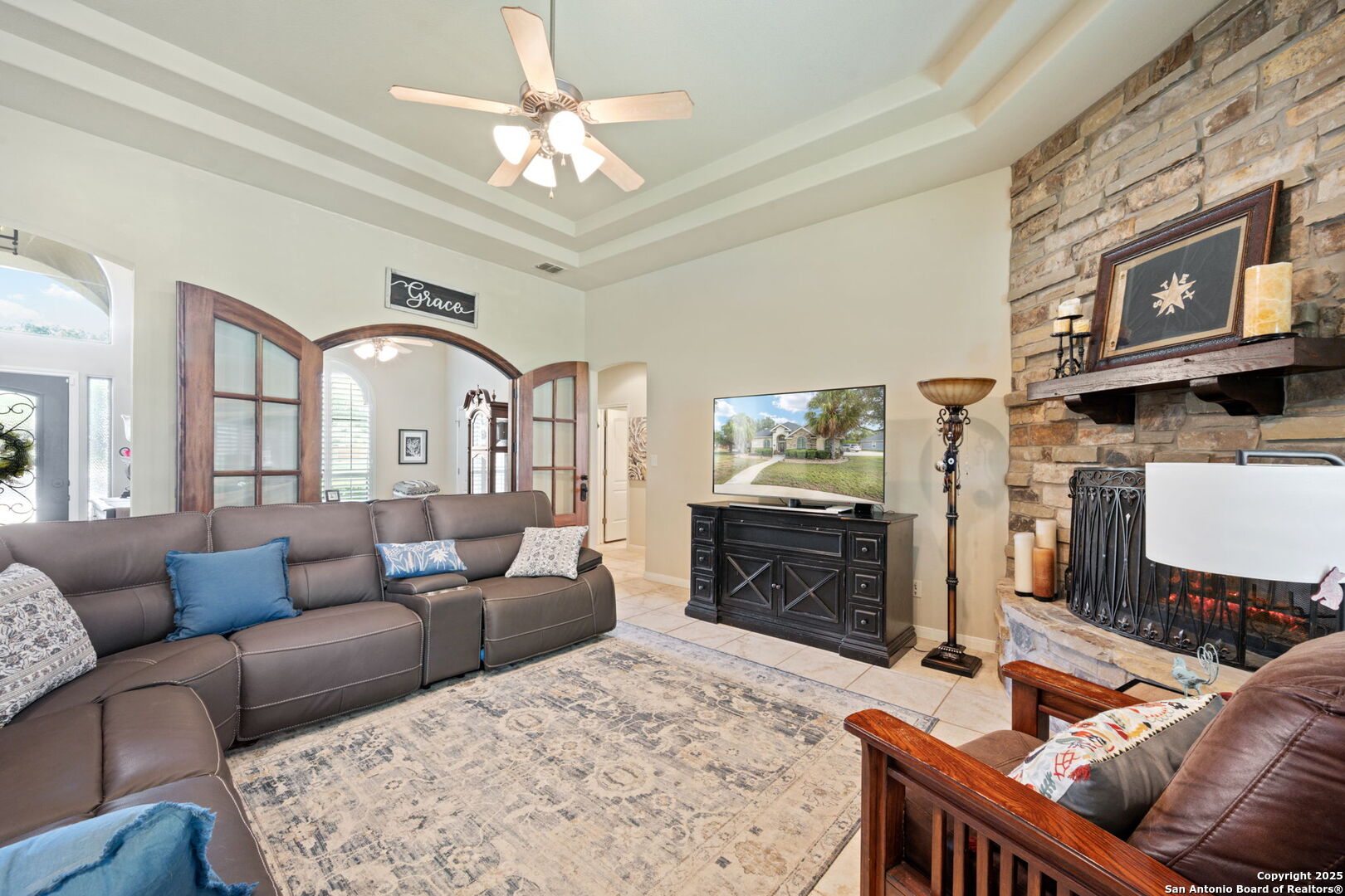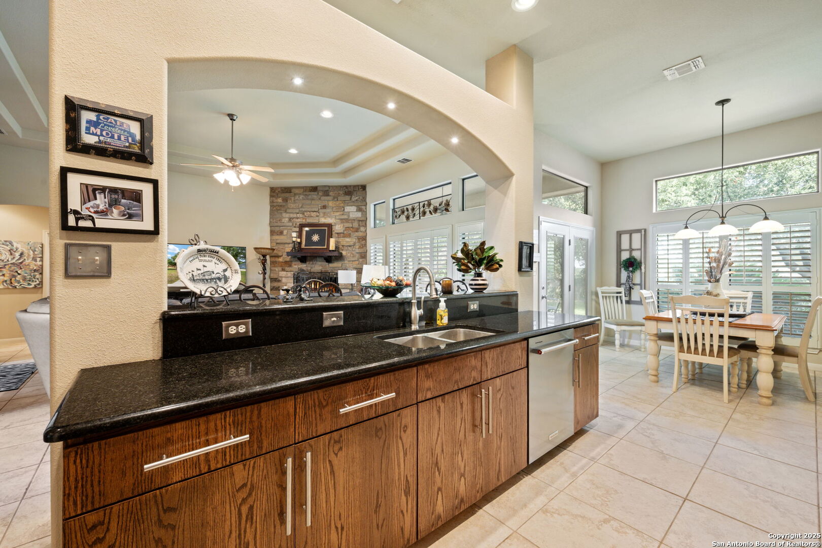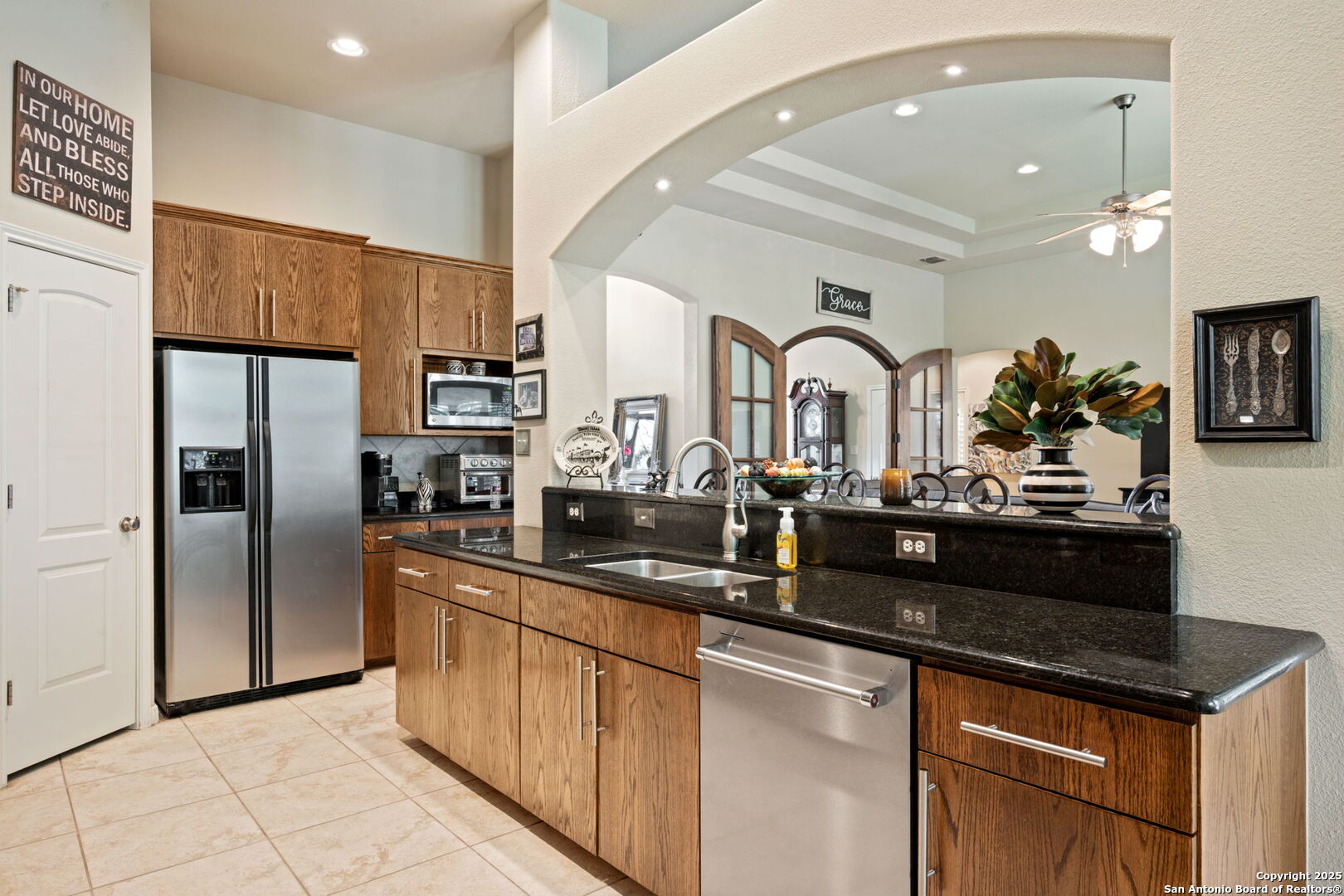 Stunning Rock and Stucco Home in a Picturesque Neighborhood Welcome to your dream home! This beautiful rock and stucco residence is nestled on an expansive landscaped lot, offering the perfect combination of elegance and comfort. With three/four spacious bedrooms and two stylish baths, this home is designed for modern living and entertaining. As you approach the property, you'll be captivated by its charming exterior, featuring a blend of rich rock and smooth stucco. 50 year transferable roof warrant!!!! The well-maintained landscaping enhances the overall ambiance, welcoming you into your serene oasis. Step inside to discover an inviting environment with high ceilings and abundant natural light filtering through plantation shutters. The open-concept layout fosters a sense of flow, perfect for both relaxation and gatherings. The heart of the home, this stunning kitchen boasts gleaming granite countertops and comes complete with all appliances, making meal preparation a delight. The spacious utility room offers added convenience, keeping everything organized and within reach. For those who work from home or simply need a quiet space to focus, the exquisite office features glass doors and a fancy window, providing an inspiring and peaceful atmosphere to enhance productivity. Gather around the beautiful fireplace in the living room, creating a warm and inviting space for family and friends. This area seamlessly connects to the heart of the home, making it perfect for entertaining or enjoying quiet family evenings. Escape to your private backyard oasis, complete with a covered patio ideal for alfresco dining, a cozy firepit for chilly nights, and a meticulously maintained sprinkler system to ensure the lush landscape remains vibrant year-round. This is a space designed for unforgettable summer gatherings and peaceful evenings under the stars. The attached two-car garage offers plenty of storage and parking space, ensuring your vehicles are sheltered from the elements. Storage unit in back yard doesn't convey with the property......