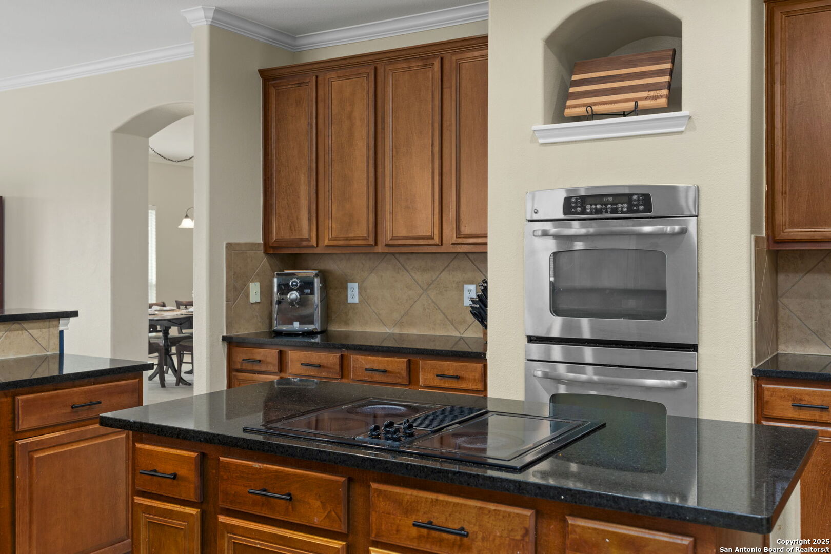 Welcome to the highly sought-after gated community of Sonoma Ranch! This beautiful 4-bedroom, 3.5-bath home offers a spacious open floor plan designed for both comfort and entertaining. The island kitchen is a chef's delight, featuring rich wood cabinetry, double ovens, granite countertops, and abundant storage and workspace. It overlooks the breakfast area and family room, where a charming brick gas fireplace serves as the perfect gathering spot. A formal dining room and additional living area provide extra space for family and friends to enjoy. The primary suite is conveniently located downstairs and includes a luxurious en suite bath with dual vanities, a separate shower, and a soaking tub. Two additional bedrooms on the main level offer flexibility for family or guests. Upstairs, you'll find an oversized secondary bedroom complete with its own full bath-an ideal space for guests, a media room, or a private retreat. Step outside to a peaceful backyard with a relaxing patio, perfect for enjoying quiet evenings outdoors. Residents of Sonoma Ranch enjoy resort-style amenities including two pools, a clubhouse, tennis courts, sand volleyball, and basketball courts. Great location with quick access to Loop 1604, I-10.