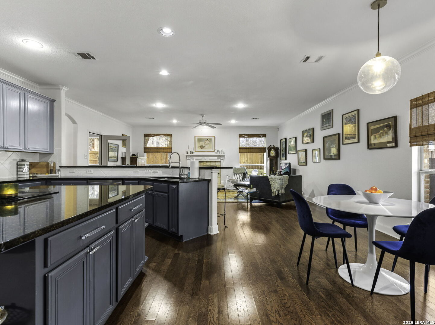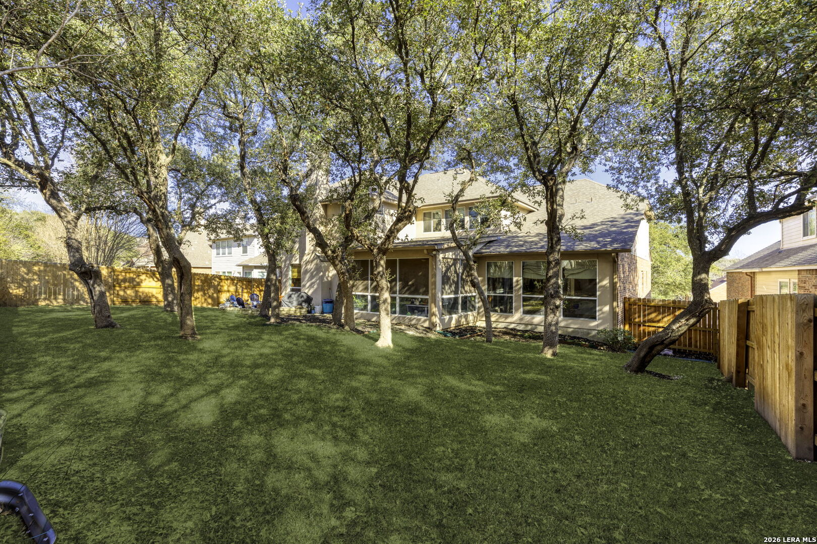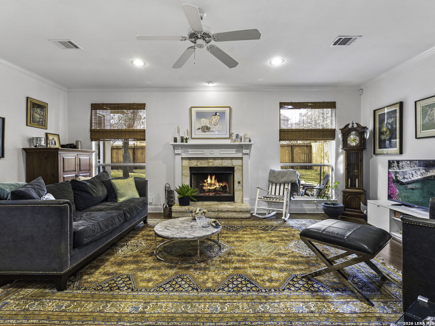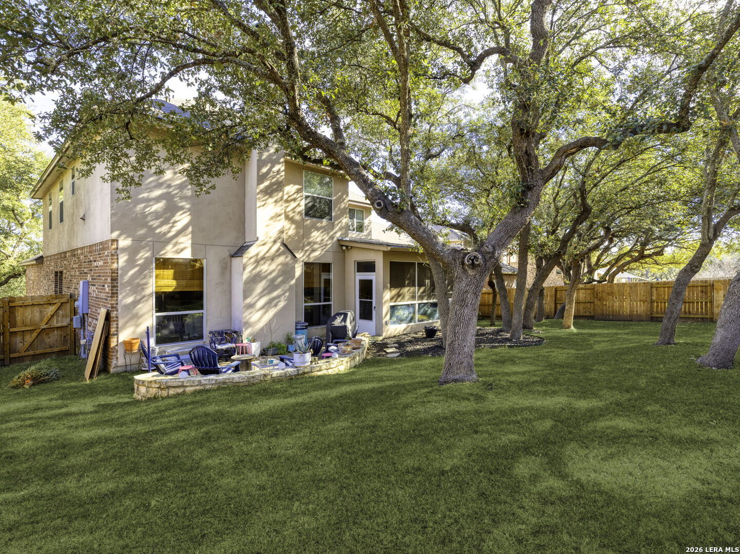 Stunning 5-Bedroom Home in Sought-After Sonoma Ranch. This beautifully designed 5-bedroom, 3.5-bath home offers generous space, thoughtful design, and a seamless layout in sought-after Sonoma Ranch. A grand entry opens to the formal dining area, with sightlines through the formal living space and enclosed porch to the backyard, creating a light, bright, and welcoming first impression-perfect for gathering and entertaining. The layout flows naturally into the main living areas, creating a clean, cohesive feel throughout the first floor boasting seamless hard-surface flooring extending through the entry, kitchen, dining, and family room, offering durability and easy maintenance with no carpet in the main living spaces. The heart of the home features a sleek, stylish kitchen with modern cabinetry, countertop bar seating, and a sunny breakfast area, opening effortlessly to the spacious family room, highlighted by a fireplace with a stone hearth. Just beyond the living area, the enclosed porch offers additional living space and features a beautiful wood ceiling, making it a comfortable, year-round retreat that opens to a serene patio and ample backyard. The primary suite is conveniently located on the main level and offers a private retreat with a spacious bath featuring his-and-hers vanities, abundant counter space, and generous closets. The primary bedroom features hard-surface flooring distinct from the main living areas, providing durability and comfort, with private access to the enclosed porch. Upstairs, you'll find four very large secondary bedrooms, two full baths, and a spacious game room, offering flexibility for family living, guests, or work-from-home needs. The second level features carpeted bedrooms with tile bathrooms. Located in the highly desirable Sonoma Ranch community and zoned to top-rated NISD schools, this home offers space, functionality, and a layout designed to grow with you.