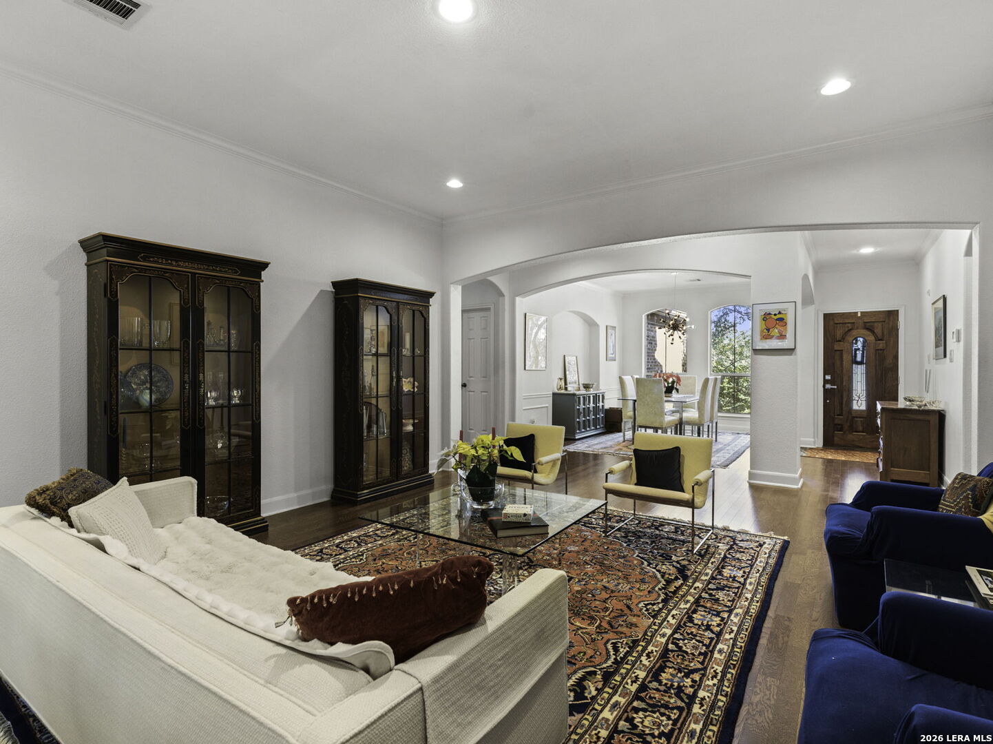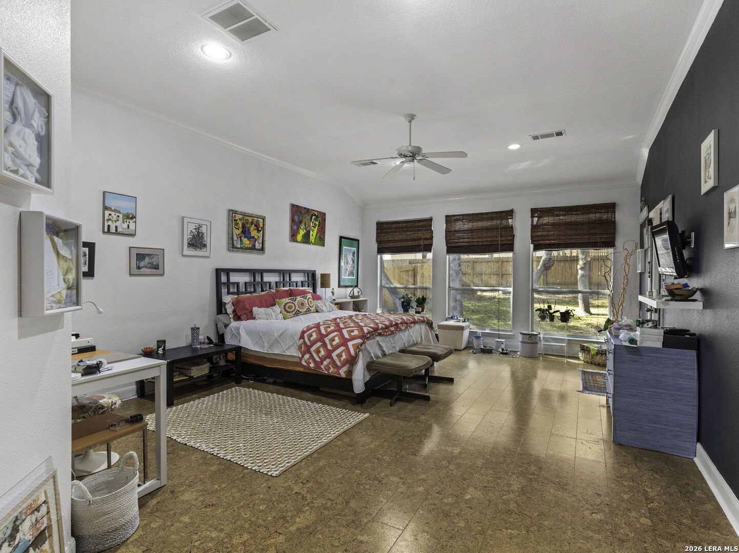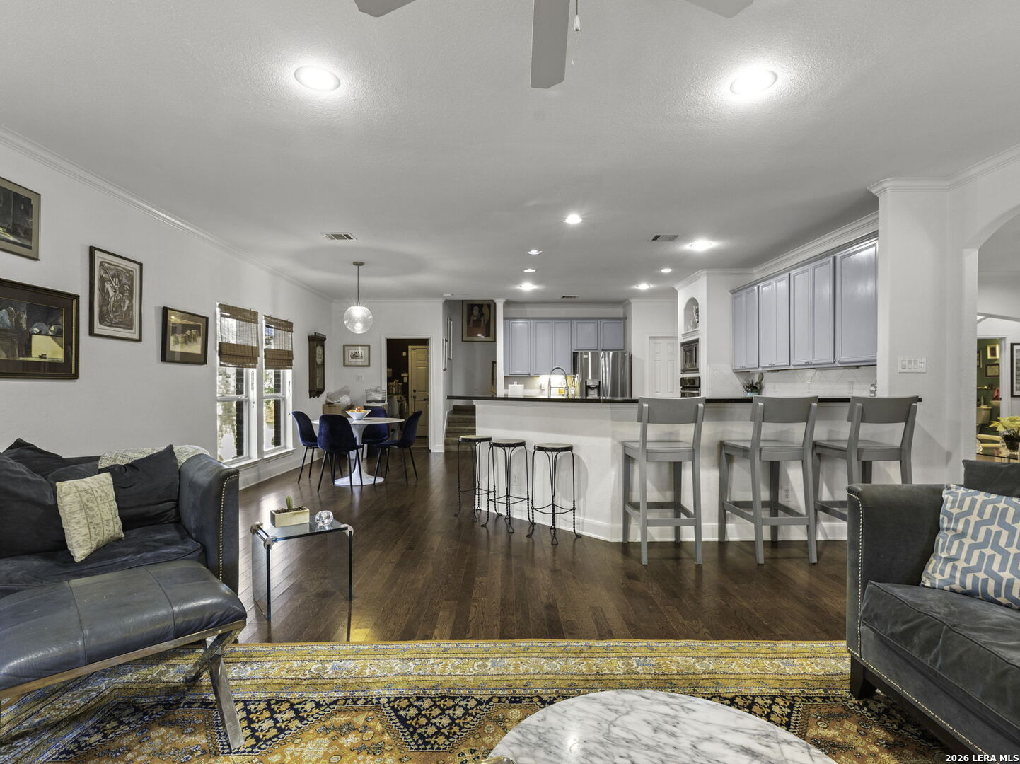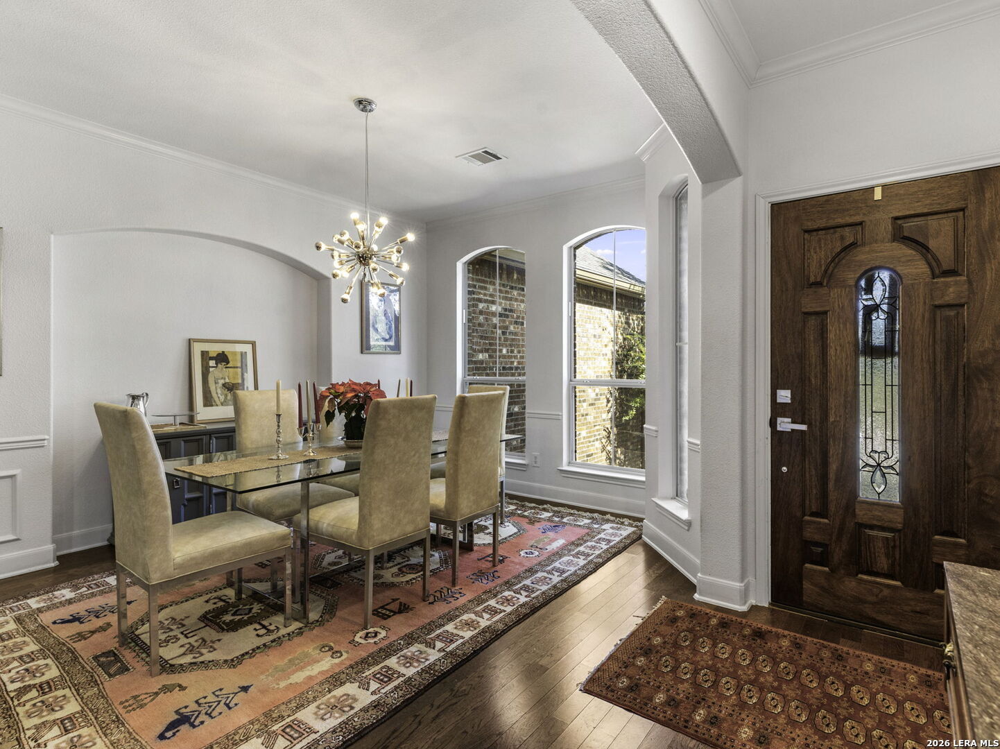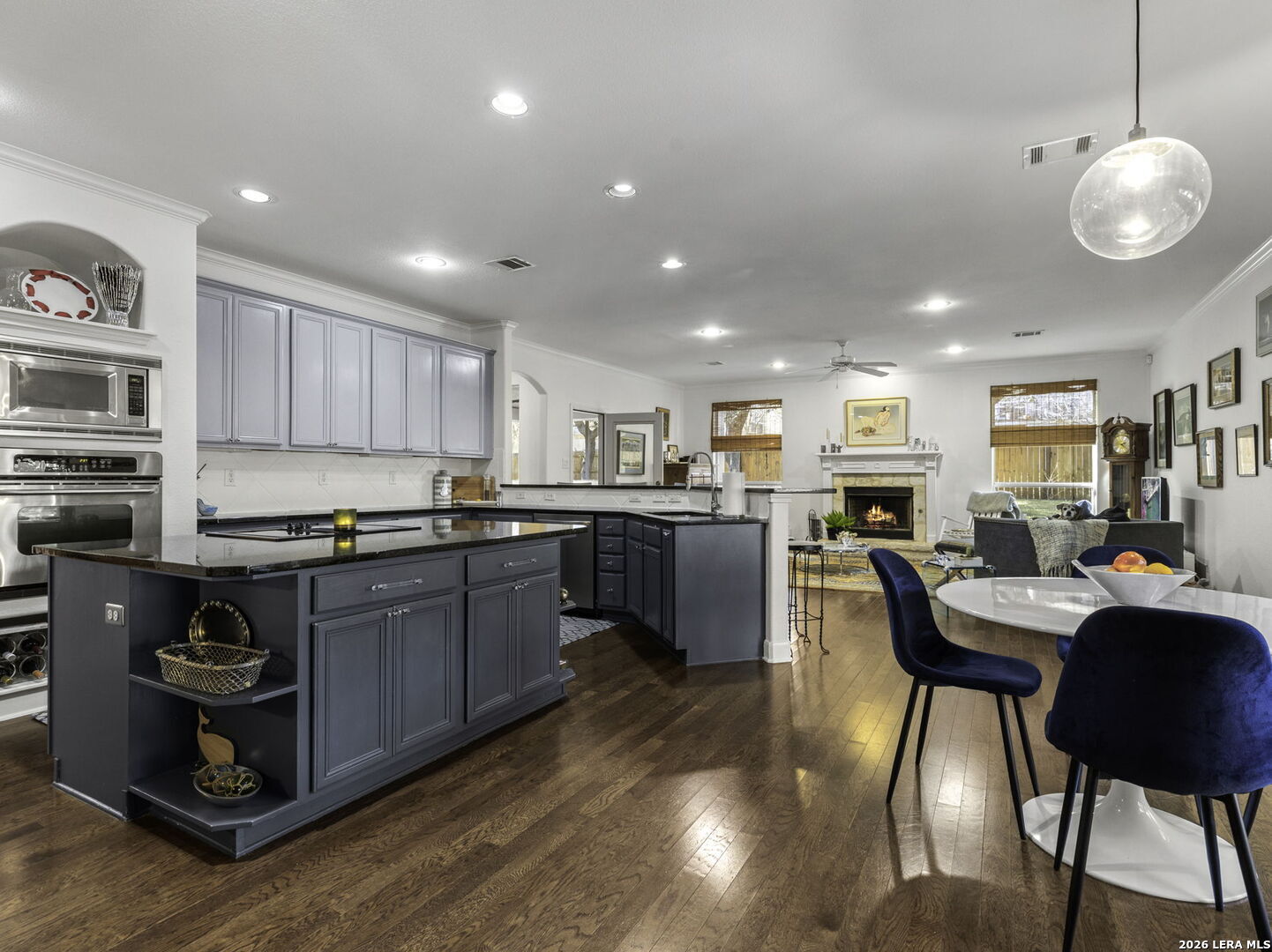 Stunning 5-Bedroom Home in Sought-After Sonoma Ranch. This beautifully designed 5-bedroom, 3.5-bath home offers generous space, thoughtful design, and a seamless layout in sought-after Sonoma Ranch. A grand entry opens to the formal dining area, with sightlines through the formal living space and enclosed porch to the backyard, creating a light, bright, and welcoming first impression-perfect for gathering and entertaining. The layout flows naturally into the main living areas, creating a clean, cohesive feel throughout the first floor boasting seamless hard-surface flooring extending through the entry, kitchen, dining, and family room, offering durability and easy maintenance with no carpet in the main living spaces. The heart of the home features a sleek, stylish kitchen with modern cabinetry, countertop bar seating, and a sunny breakfast area, opening effortlessly to the spacious family room, highlighted by a fireplace with a stone hearth. Just beyond the living area, the enclosed porch offers additional living space and features a beautiful wood ceiling, making it a comfortable, year-round retreat that opens to a serene patio and ample backyard. The primary suite is conveniently located on the main level and offers a private retreat with a spacious bath featuring his-and-hers vanities, abundant counter space, and generous closets. The primary bedroom features hard-surface flooring distinct from the main living areas, providing durability and comfort, with private access to the enclosed porch. Upstairs, you'll find four very large secondary bedrooms, two full baths, and a spacious game room, offering flexibility for family living, guests, or work-from-home needs. The second level features carpeted bedrooms with tile bathrooms. Located in the highly desirable Sonoma Ranch community and zoned to top-rated NISD schools, this home offers space, functionality, and a layout designed to grow with you.