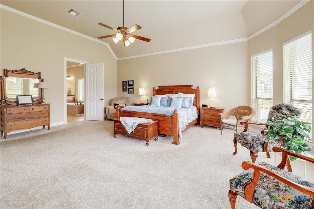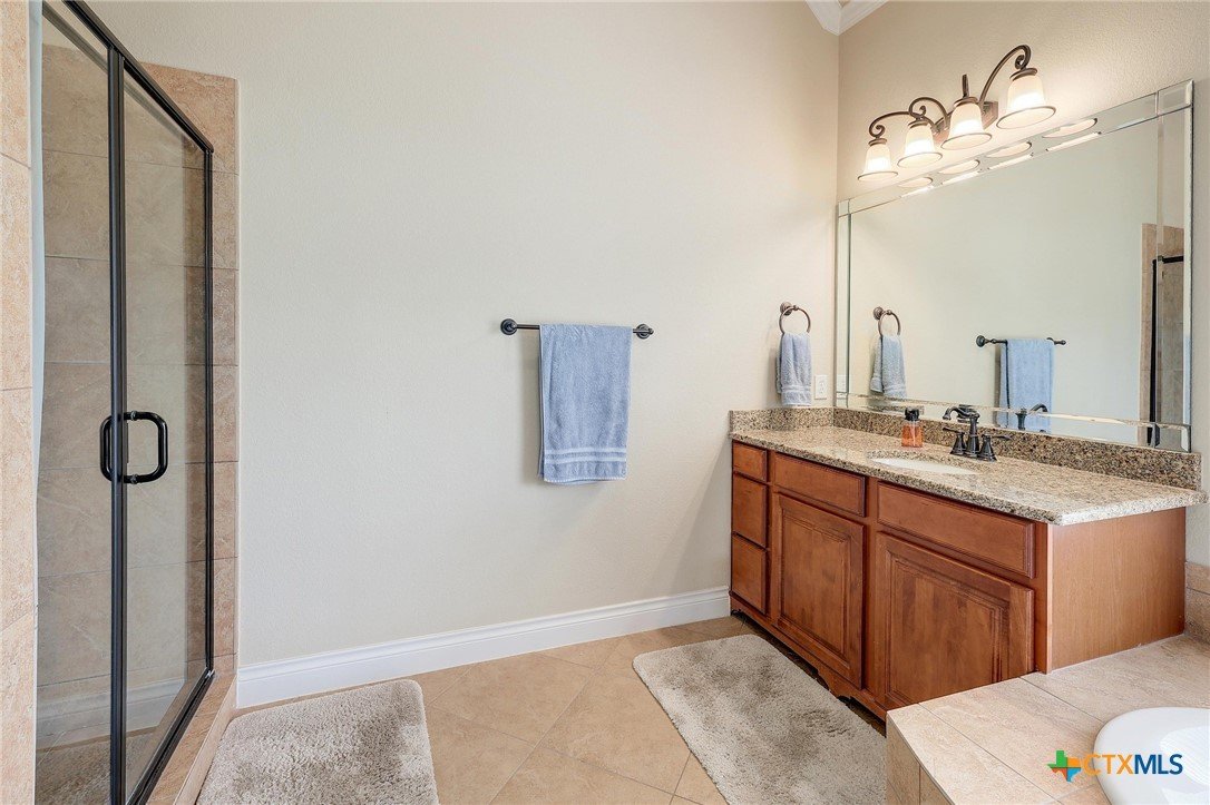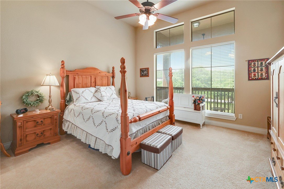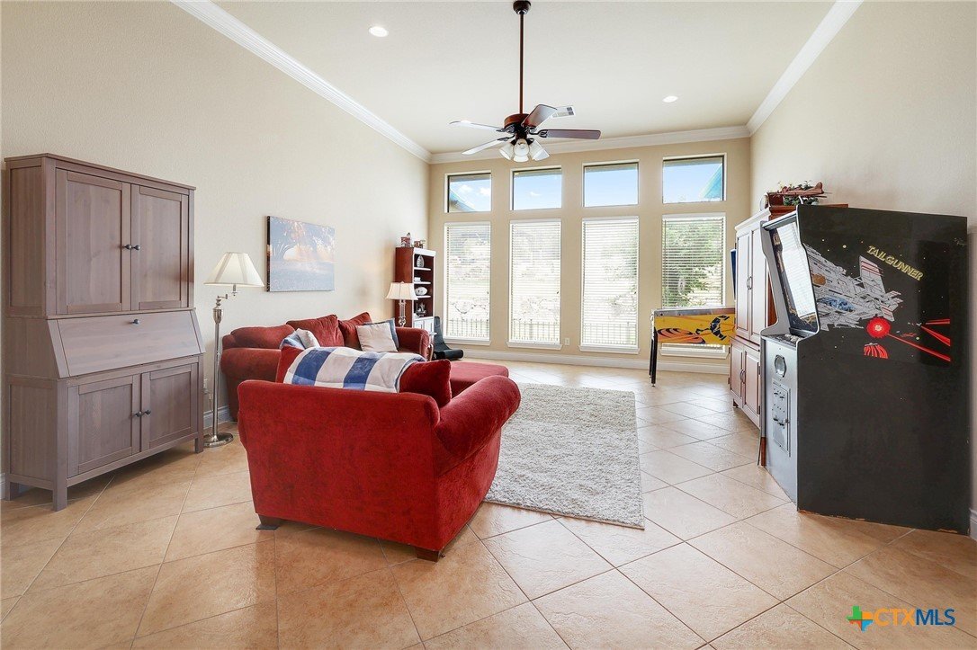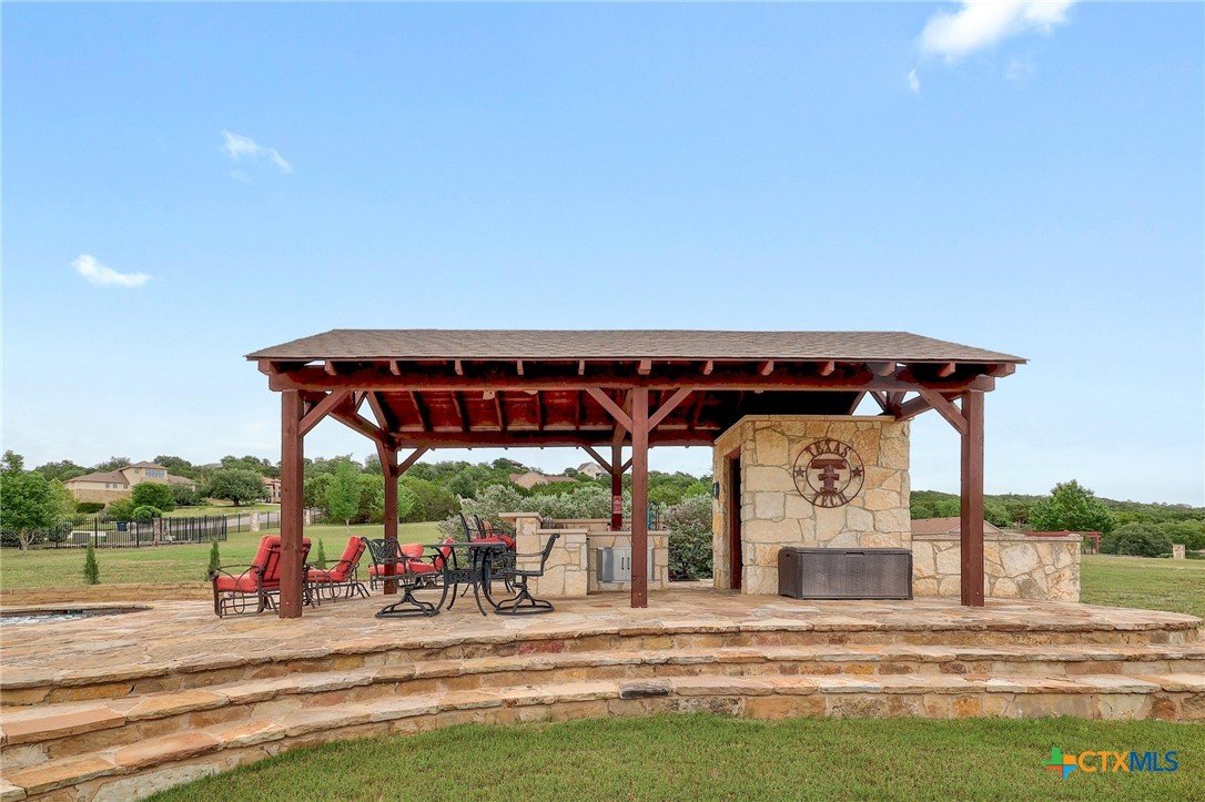 This breathtaking and spacious residence is ideally located on 4.42 beautiful acres within a beautiful Hill Country gated community. Step into the grand foyer, where towering ceilings create an inviting atmosphere that makes you feel right at home. You'll be welcomed by a spacious office adorned with French doors, while the foyer guides you toward the breathtaking formal dining room featuring elegant wood floors. The first living area awaits, offering versatility as a formal living area or game room. As you round the corner, you'll be welcomed by a spacious great room featuring 12-foot ceilings, a stunning gas fireplace, and an abundance of natural light streaming in from the floor-to-ceiling wall of windows. The spacious great room and kitchen blend seamlessly, creating an ideal environment for entertaining or maintaining connections while cooking. The primary suite boasts over 800 square feet of space, offering stunning views of the backyard. Additionally, there is a guest suite complete with its own private ensuite. Experience the outdoor paradise featuring a covered rear patio equipped with a built-in gas grill, a stunning pool adorned with a fountain, and a cabana that includes a wet bar, bath, and outdoor shower. Enjoy the spacious entertainment area under a large pergola, complete with stone benches and a gas firepit. The entire back of the property is secured by a 6' wrought iron fence, enhanced by custom white stone pillars that beautifully complement the home’s design. The property boasts stunning landscaping, adorned with numerous oak trees and 18 maple trees that burst into vibrant colors each Fall. Furthermore, there is an additional two-car garage equipped with a storage loft, perfect for stowing away your off-season belongings. For equestrian enthusiasts, the Homeowners Association (HOA) permits property owners to keep a horse on the estate, thanks to the ample size of the property. New roof, gutters and vents replace November 20025