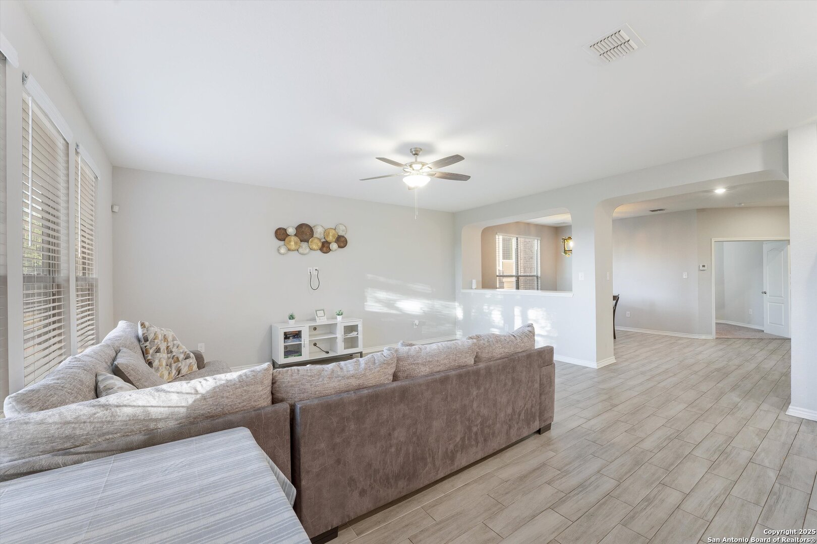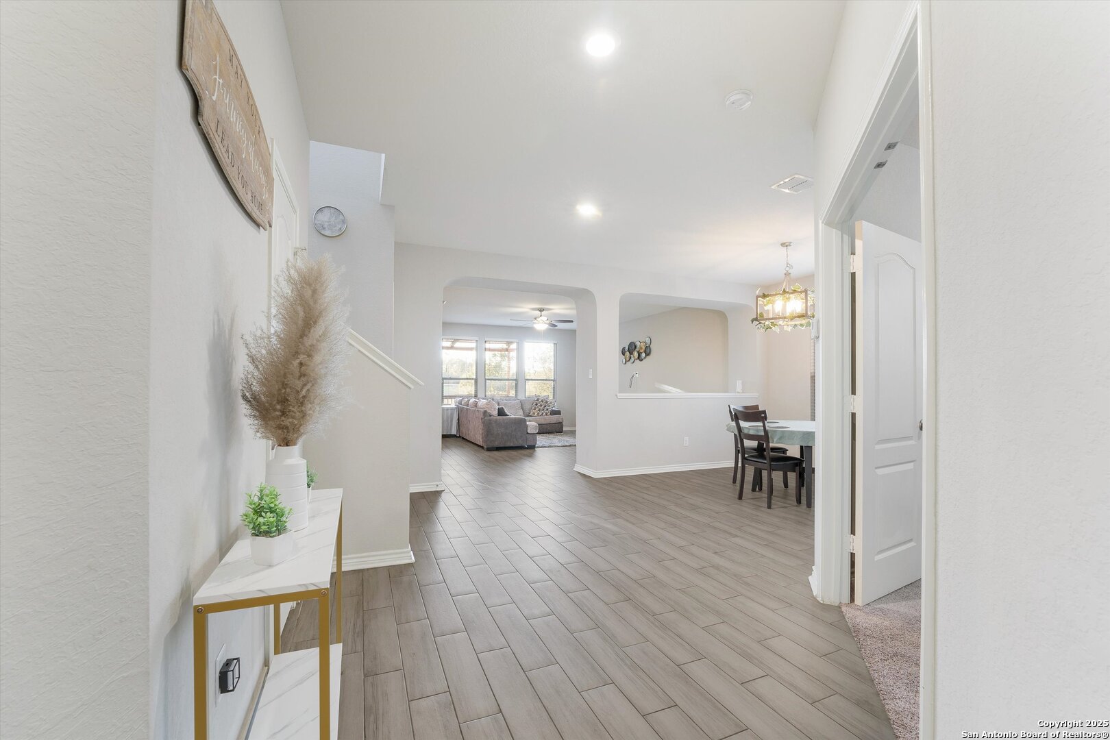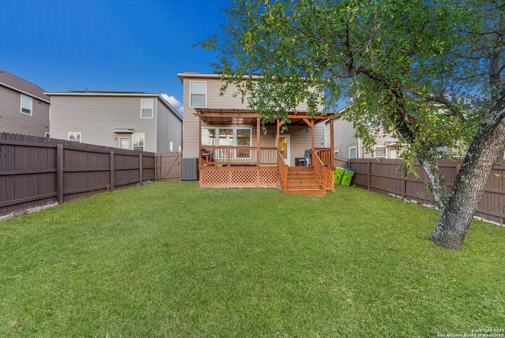 This stunning two-story home offers five spacious bedrooms and two and a half baths, combining modern efficiency with comfort and style. Featuring a paid-off solar system that provides a sizable energy offset and a new HVAC system, this home is both eco-friendly and cost-efficient. The layout includes a welcoming entryway, dedicated office, and open kitchen flowing into the dining and living areas-perfect for gatherings or entertaining. Upstairs, the primary suite offers a luxurious retreat with a large bath and walk-in closet. Enjoy outdoor living on the private patio with a jacuzzi, backing up to a peaceful greenbelt. Still under the builder's 10-year warranty, this property also offers flexible options, including owner financing and lease-to-purchase. Neighborhood amenities include a community pool, adding to the home's appeal and convenience.