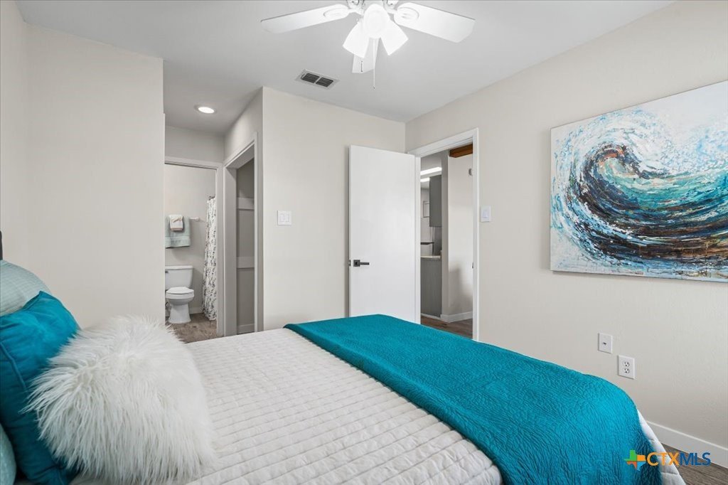 Location, location, location! This first-floor condo is minutes from downtown San Marcos and Texas State University bus stop. This 2-bedroom, 2-bath condo features many stylish and practical updates with a highly desirable split floor plan. HOA amenities include basketball court, pool and dog park. Don't miss this fantastic opportunity for university students, small families that want a low maintenance lifestyle, or investors seeking a prime location.