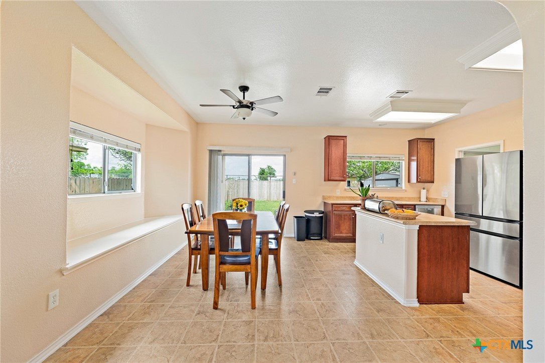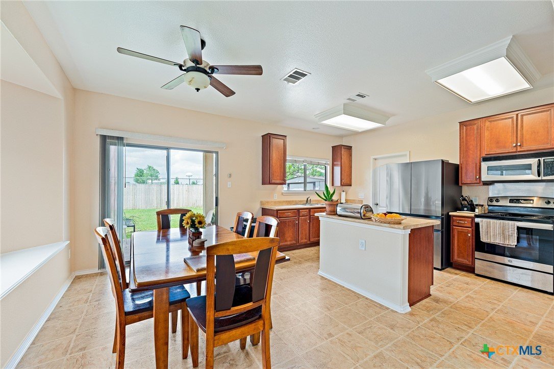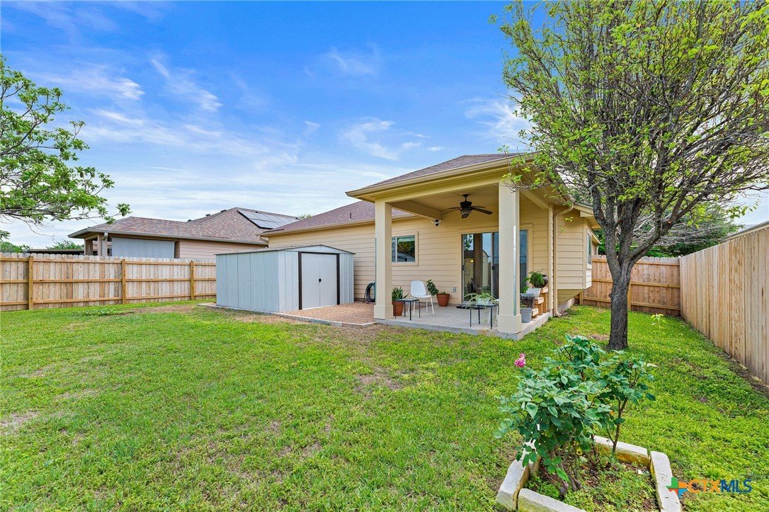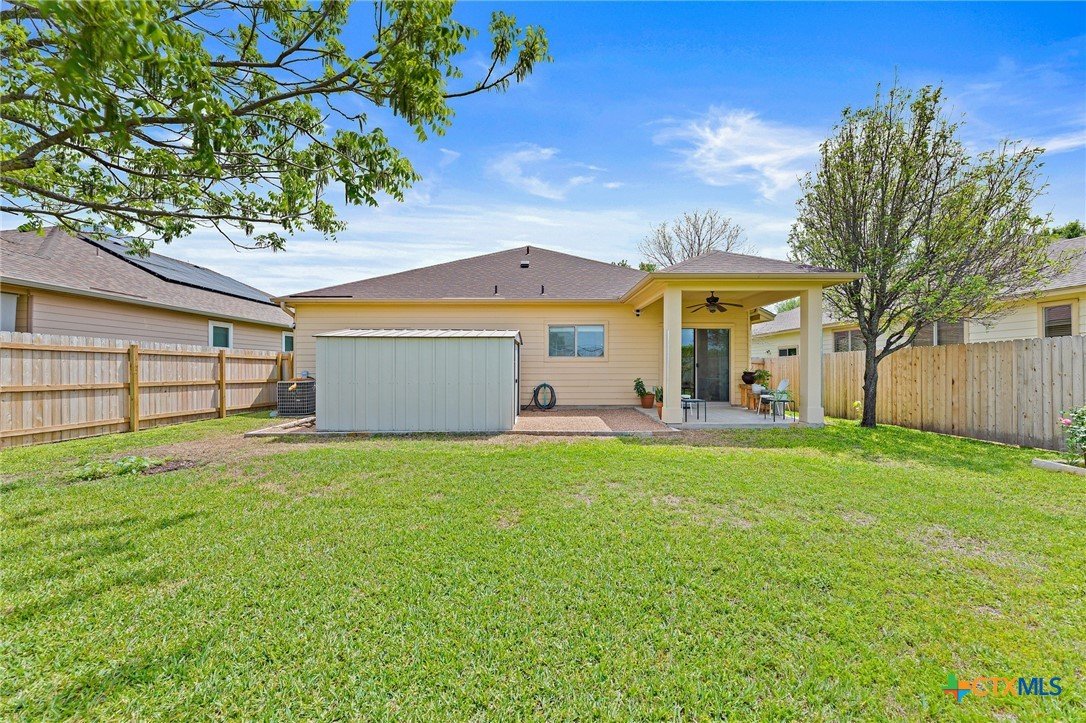 Welcome to 1624 Bayland Street, a charming home nestled on a quiet street in the desirable Chisholm Crossing neighborhood of Round Rock. Surrounded by mature trees and established homes, this property offers a peaceful setting while remaining conveniently close to shopping, dining, parks, and major commuter routes. Inside, the home features a comfortable open-concept layout where the living room, dining area, and kitchen flow together seamlessly, creating an inviting space for both everyday living and entertaining. Natural light fills the home, adding warmth and brightness throughout the main living areas. The property includes three bedrooms and two full bathrooms, providing flexibility for family living, guests, or a home office. The spacious primary suite offers a relaxing retreat and includes an ensuite bathroom with dual vanities for added convenience. Step outside to a generously sized backyard designed for both relaxation and possibility. A deck extends from the dining area, offering the perfect spot for morning coffee, outdoor dining, or weekend gatherings. The yard has been recently refreshed and provides plenty of space for gardening, play, or future landscaping ideas. Two outdoor storage sheds add practical functionality, offering extra room for tools, hobbies, or seasonal items. A unique feature of the property is its location backing to the Tiger Diamond baseball field at Stony Point High School, adding a subtle connection to local community life. Priced at $325,000, this inviting home combines comfortable living spaces, outdoor potential, and a convenient Round Rock location. Welcome home!
