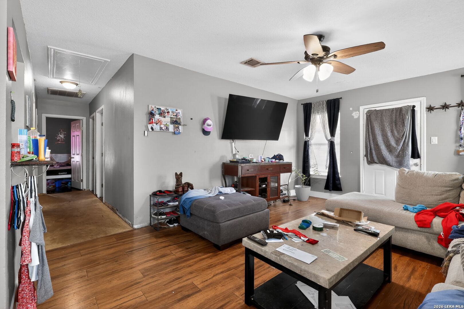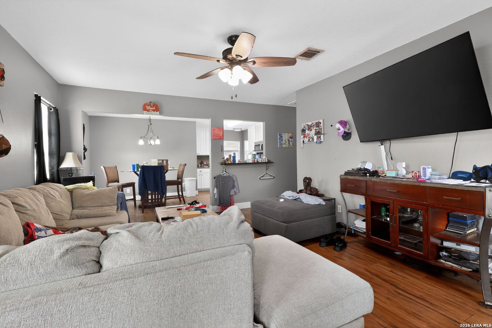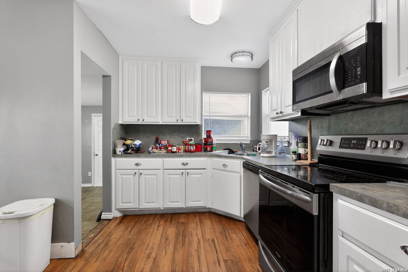 Charming one-story home with 3 bedrooms and 1 full bathroom, plus a bonus room (~220?sq?ft). Features hardwood and tile flooring, a kitchen with stove, microwave, and dishwasher, and an attached garage. All bedrooms are on the main level. The home has a composition roof, concrete block foundation, central electric cooling, and gas heating. Situated on a paved asphalt street with public water and sewer. Open layout includes living room, dining area, kitchen, and bonus room, providing comfortable living space throughout.