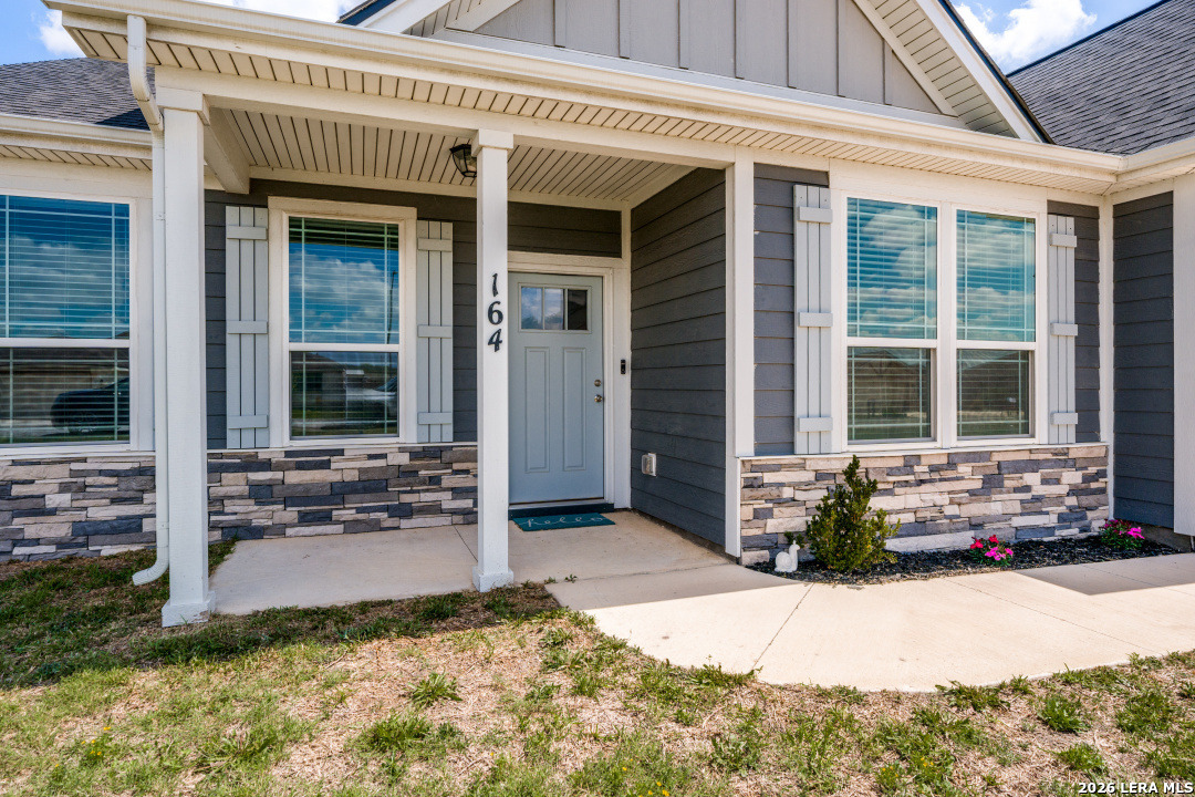 Built in 2023, this La Vernia home blends modern design with the relaxed feel of small-town living. The open floor plan welcomes you with high ceilings and soft lighting, while the kitchen's granite countertops and central layout make it ideal for both daily living and entertaining. Enjoy your morning coffee or evening unwind on the covered back patio overlooking a private fenced yard with no neighbors directly behind you. Inside, spacious closets and thoughtful finishes throughout provide both comfort and functionality. Outside, the stone and siding exterior along with a composite roof provide durability and curb appeal. Located just 10 miles from H-E-B and under an hour from San Antonio, this property also offers no HOA, no city taxes, and co-op utilities, giving you more freedom and value in one of La Vernia's most desirable small-town settings.
