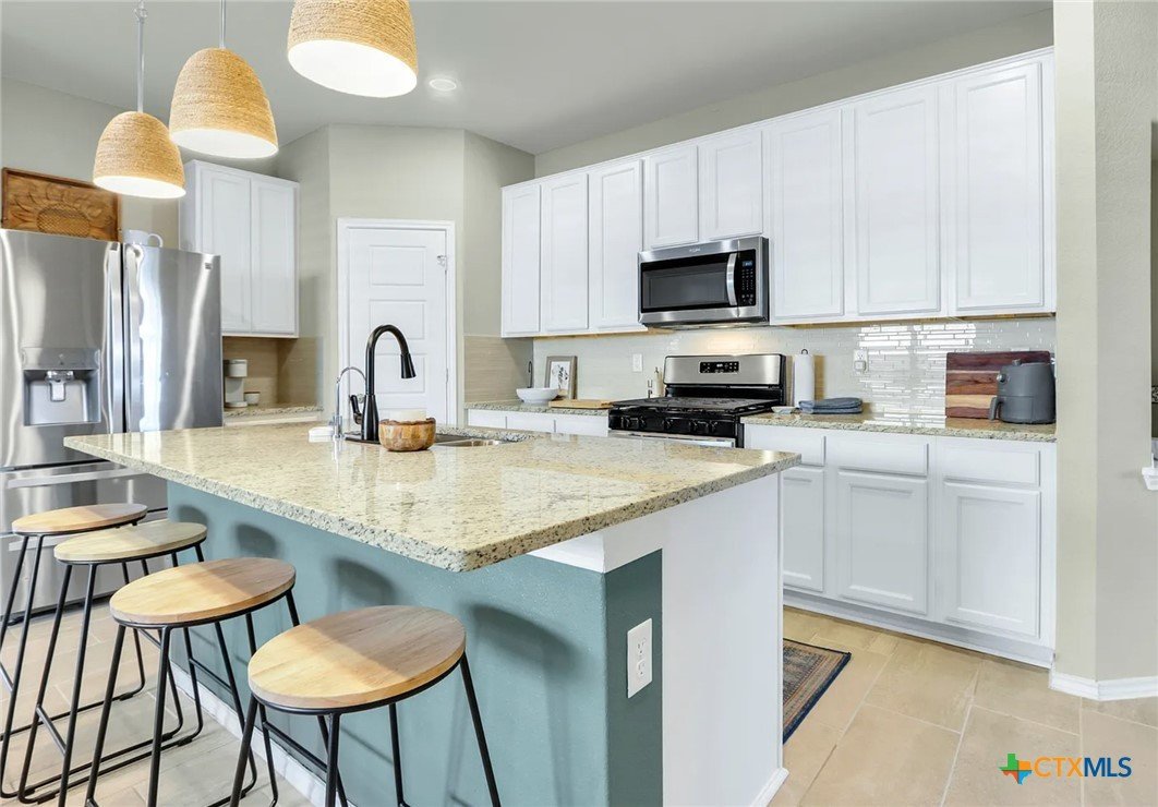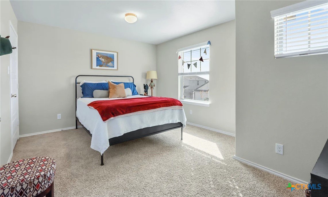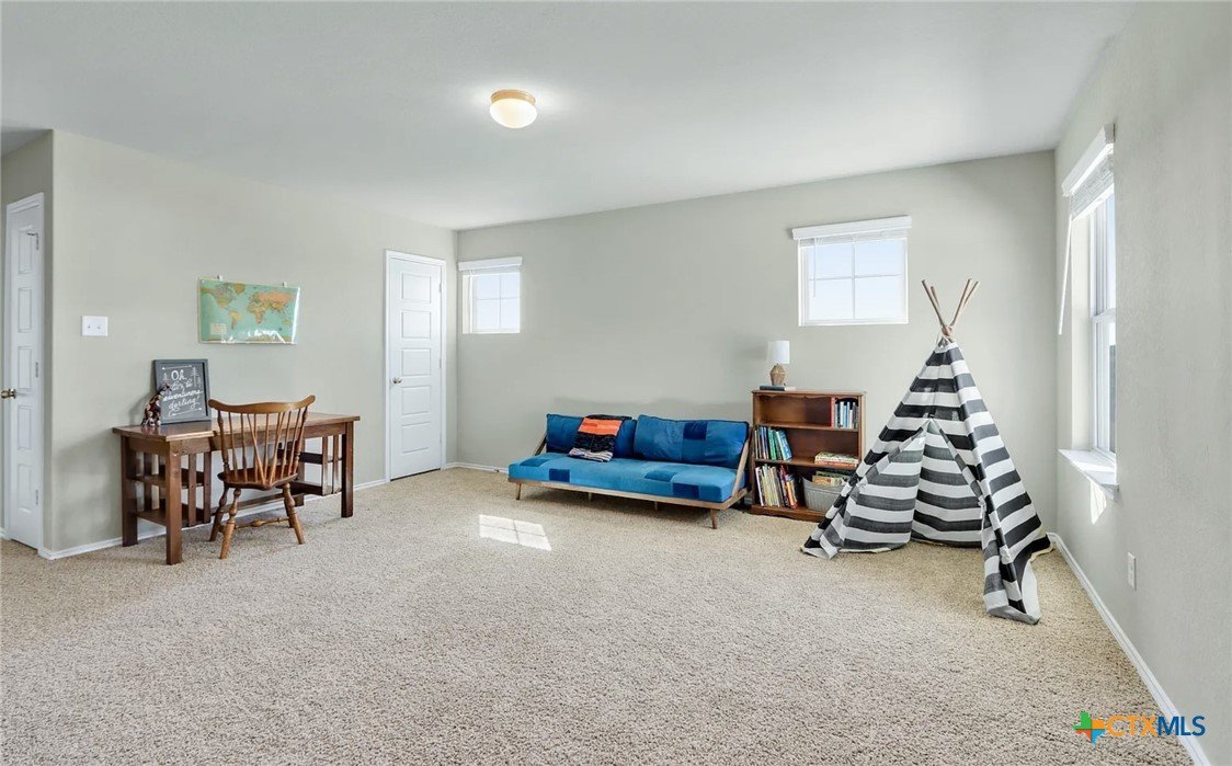 This beautiful fully furnished, 4-bedroom, 3.5-bathroom, two-story home offers a spacious layout with stunning tile floors throughout the kitchen and living area, and cozy carpet in the bedrooms. Downstairs there is an additional office. The large master suite provides a peaceful retreat, while the flexible upper landing can be used as a playroom or office. The home features a fully fenced, spacious backyard, perfect for outdoor activities or relaxation. With an open living space and modern finishes, this home is ideal for families looking for comfort and convenience. The garage has installed storage shelves and an epoxy floor to accomodate all your needs. No direct neighbors across the street! Enjoy all the amenities of Meyer Ranch, including a pool, fitness center, walking trails and playgrounds!
