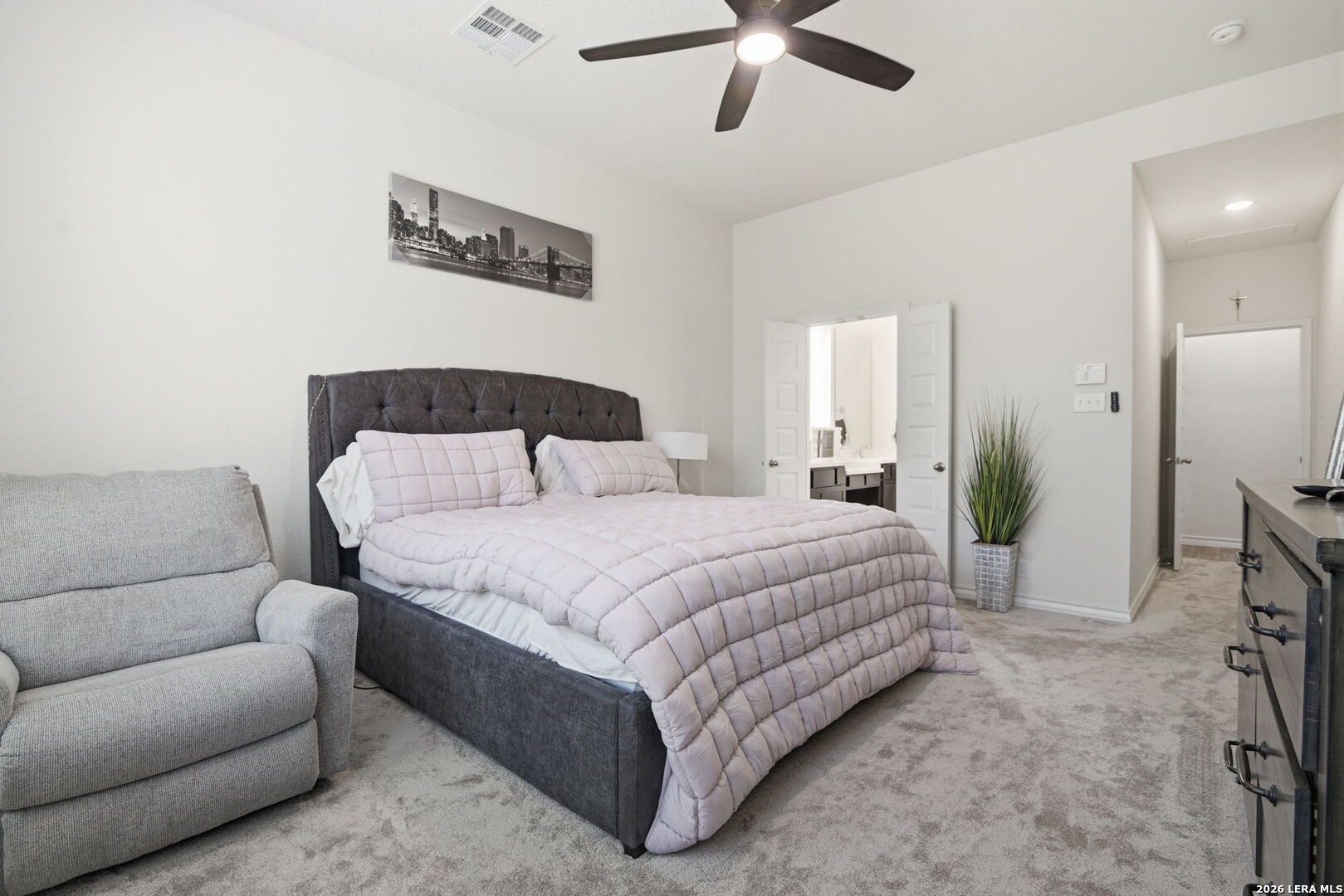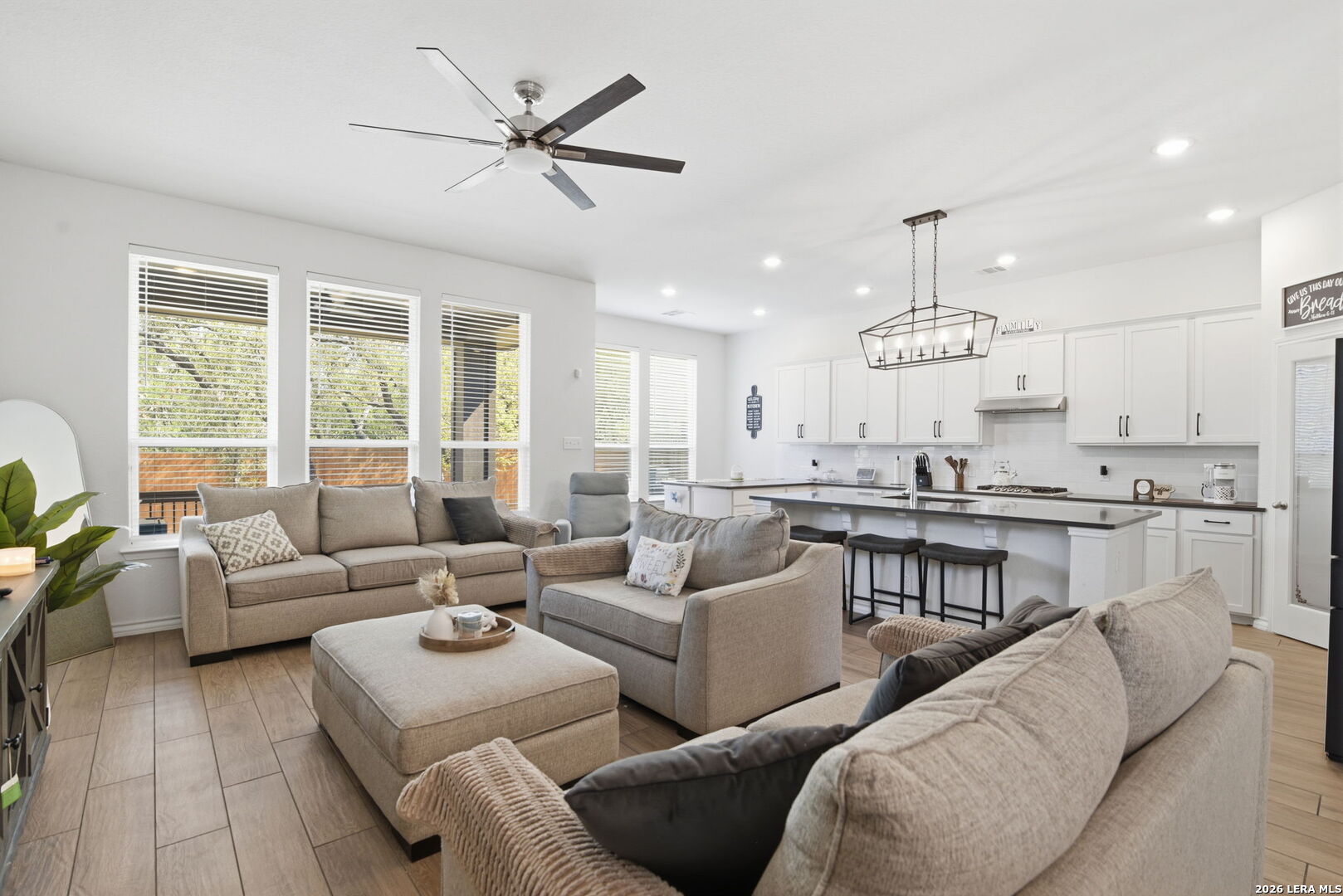 Beautiful 2-story home located in the highly sought-after Fronterra at Westpoint community! Built in 2021 by Highland Homes, this spacious 5-bedroom, 3-bath home offers 2,846 sq ft of well-designed living space with a functional layout perfect for families and entertaining. The primary suite is conveniently located downstairs along with a dedicated office/study, while the open-concept living, dining, and kitchen areas provide plenty of room to gather. Upstairs features additional bedrooms and a versatile game room. This home stands out with recent upgrades, including $6,000 in brand-new upgraded carpet with premium padding, adding comfort and value throughout. The primary bathroom was an upgraded builder option, offering enhanced finishes and design, and the 5th bedroom is also an upgraded option. Enjoy added privacy with no back neighbors, along with a covered patio perfect for relaxing or entertaining outdoors. The community offers great amenities including a pool, park, playground, jogging trails, and an amenity center available to rent for private events and parties. Conveniently located near Loop 1604 for easier access with less traffic, this home is just minutes from major shopping centers, making everyday living incredibly convenient. Nearby attractions include Costco, H-E-B, Walmart, movie theaters, and SeaWorld, giving you quick access to shopping, dining, and entertainment options. This home truly has it all-schedule your showing today!