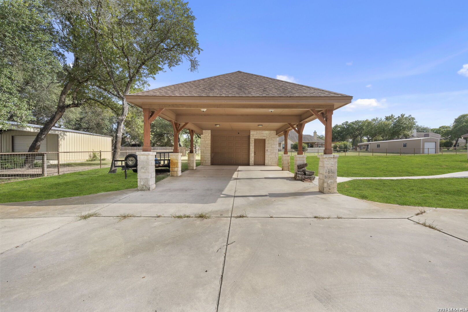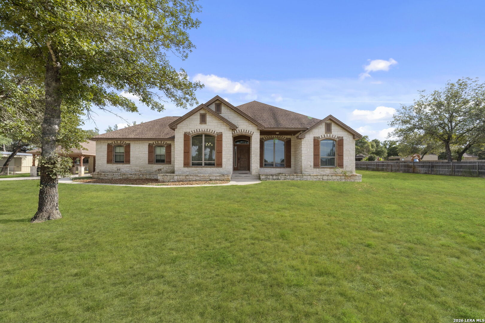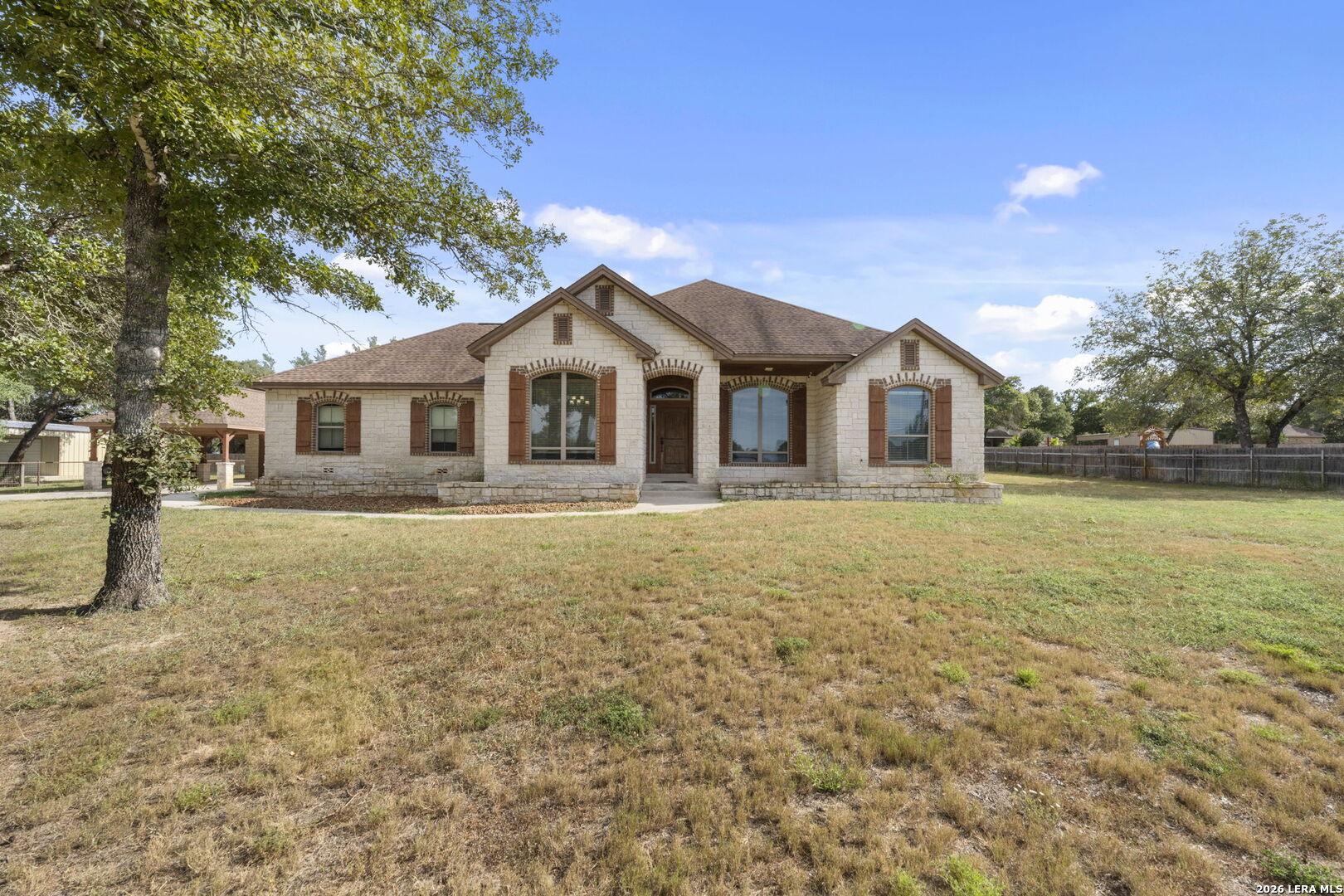 Discover the perfect blend of country charm and modern convenience in this stunning home located in Copper Creek Estates, nestled within the highly sought-after LaVernia ISD. The property is fully enclosed with a steel fence. This home features smart home upgrades including a remote-controlled gated entrance, and security cameras, ensuring privacy, security, and a pet-friendly environment. The home features an oversized attached 2-car garage with extensive shelving for all your storage needs. Sitting on