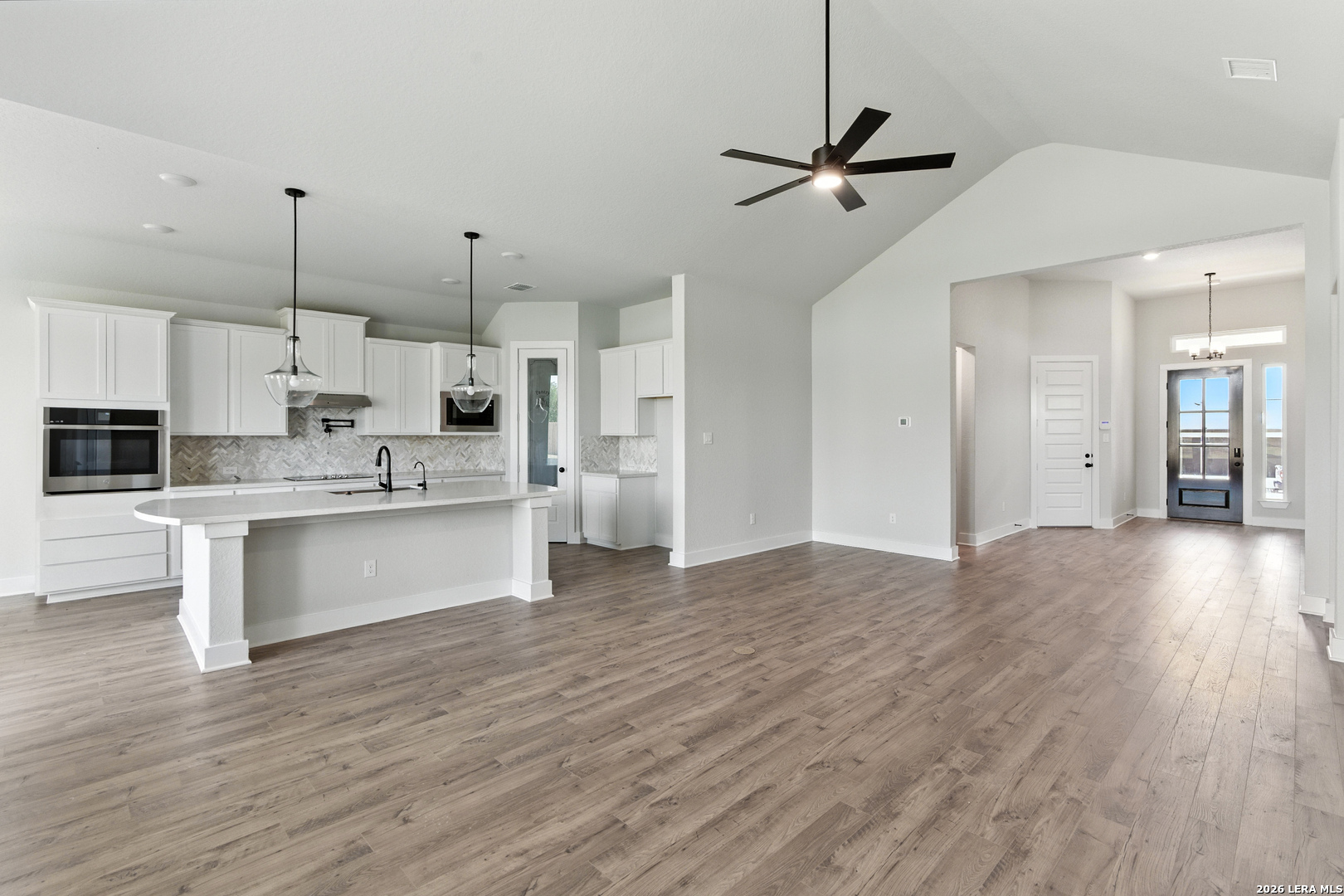Welcome to your dream home in Castroville-a charming town rich in history and small-town appeal, just 17 minutes from Lackland Air Force Base and minutes from San Antonio. This beautiful one-story home offers 3 bedrooms, 3 full bathrooms, and a private office-perfect for working from home or added flexibility. Inside, you'll find soaring vaulted ceilings with a stunning wood beam stretching across the impressive 25-foot living room, creating an open and inviting space filled with natural light. The kitchen is designed for both function and entertaining, featuring a large island that serves as the heart of the home. The inset back patio provides a private and peaceful setting, ideal for relaxing or hosting guests. Step outside to an oversized backyard with endless possibilities-whether you envision a pool, play area, or garden. The primary suite is a true retreat, highlighted by a breathtaking mud set shower that adds a spa-like touch. This home offers the perfect blend of comfort, style, and location. **Home is under construction - est. completion is JUNE 2026 - Photos are representative**