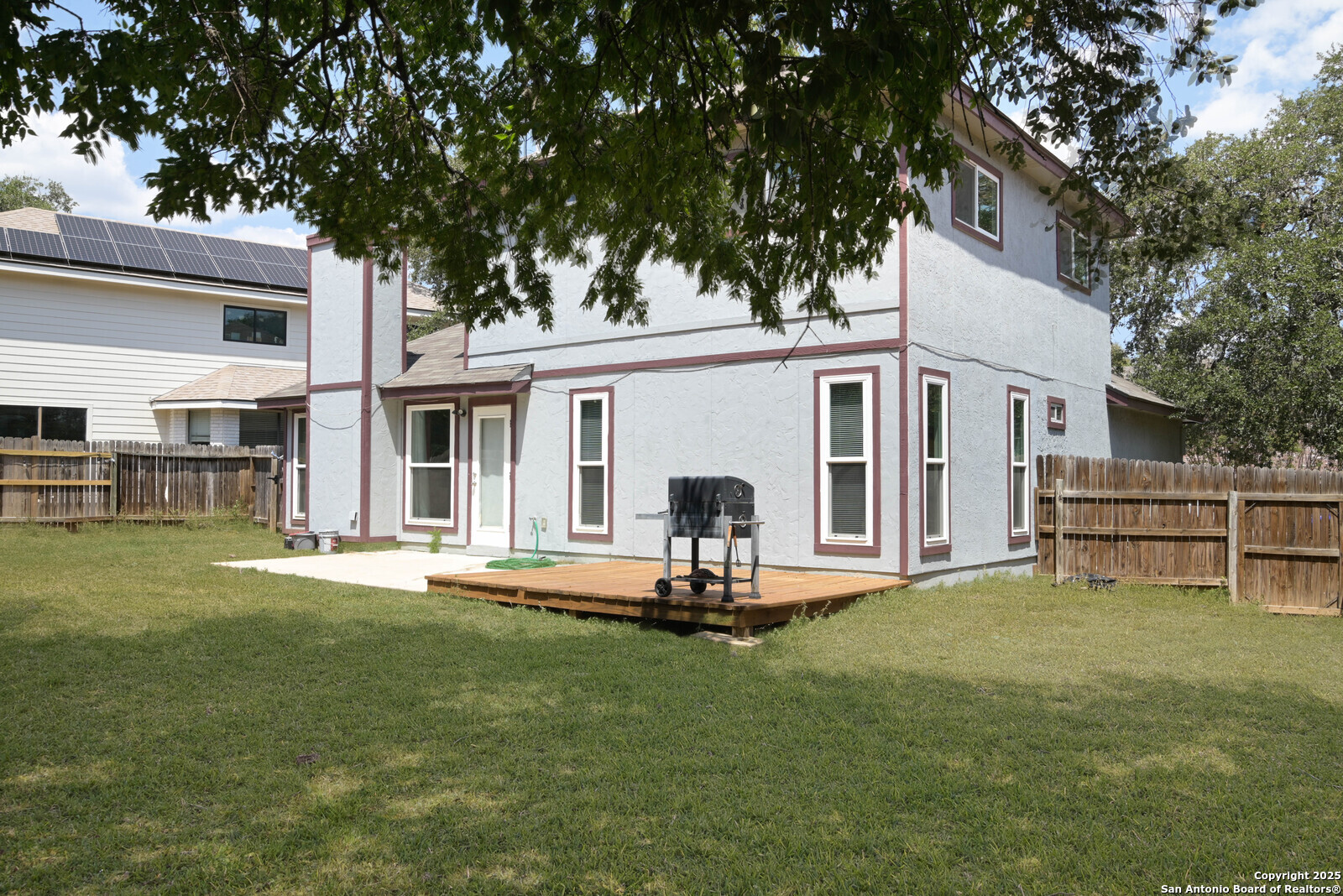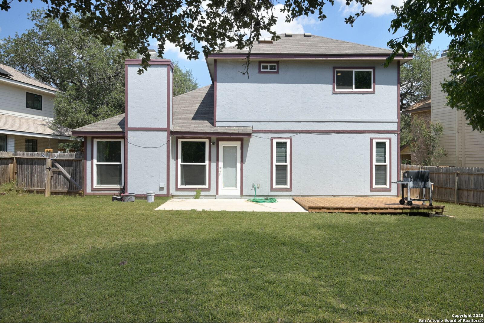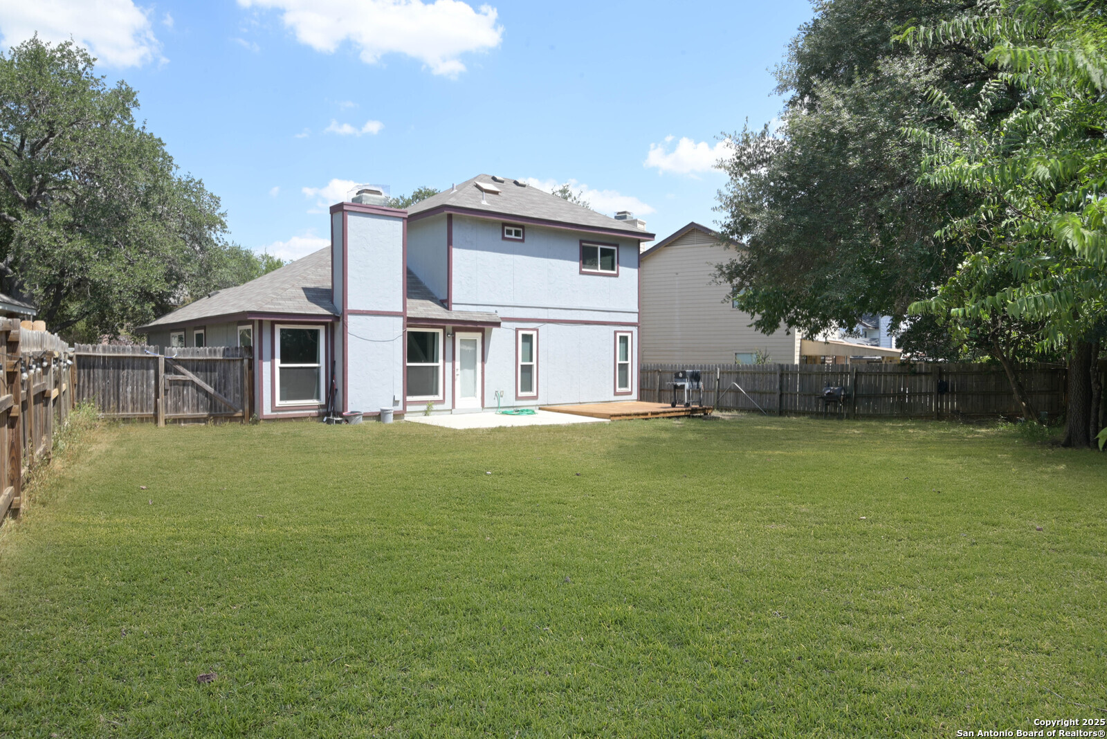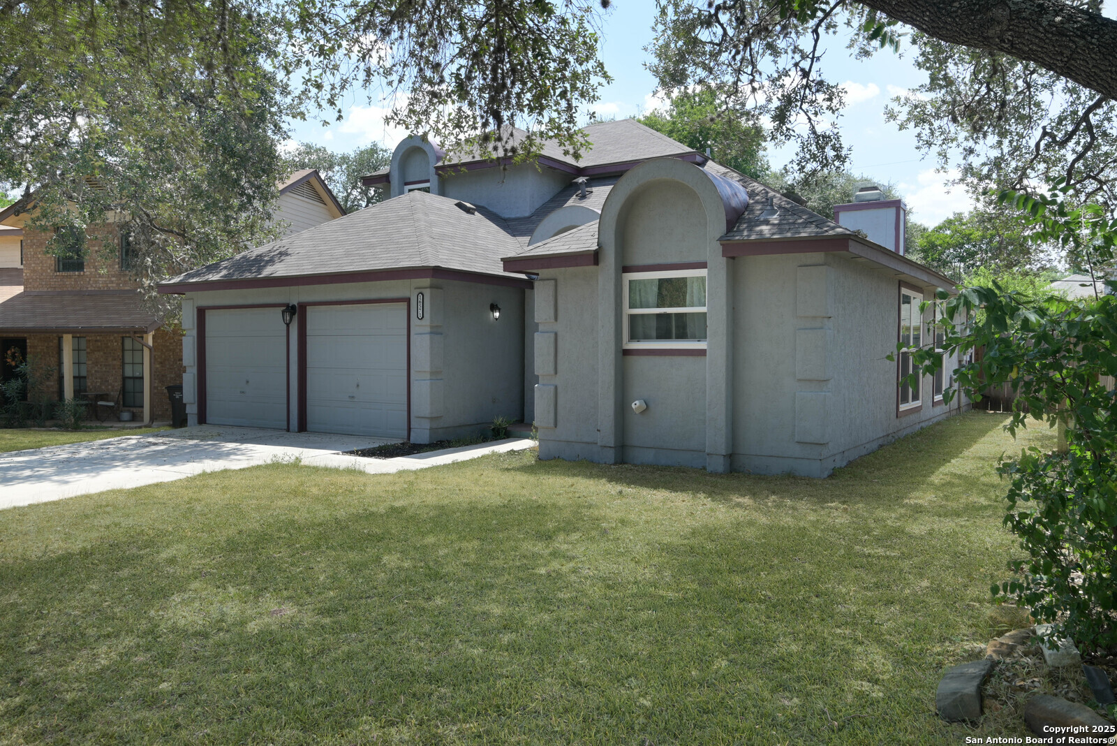 Nicely updated home in Canyon Oaks Subdivision with open design to enjoy with family and friends. Great location - easy access to 1604 and 281 but conveniently situated inside this excellent neighborhood near a cul-de-sac. This home has ample and well illuminated spaces to enjoy with family and friends with this open concept combining the living room, dinning room and kitchen. Stainless steel appliances, quartz countertops and white cabinets give a fresh and elegant look to the kitchen. Master bedroom is conveniently located in the first floor with ensuite bathroom with double vanities and walking closet. 2 more bedrooms and a bathroom are located upstairs. -NO CARPET- wood-look plank tile throughout the house. The 2 car garage was conveniently converted into 1 car garage, integrating another room to the house which can be perfectly used for home office, studio or another bedroom. Enjoy the large backyard with mature trees and wooden porch after a long day of work.