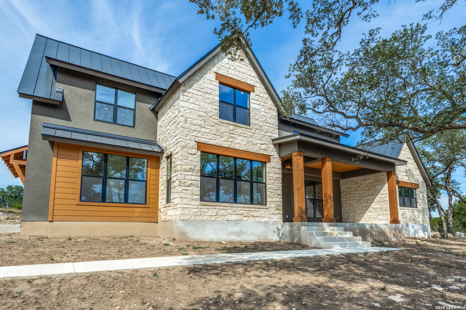 Sitting on 1.02 acres in the heart of the Hill Country, this brand-new custom home blends modern comfort with timeless craftsmanship. Offering 4 bedrooms, 3 full baths, 2 half baths, and 3,258 SqFt of living space, it's designed to feel open, inviting, and perfect for both everyday living and entertaining. Step inside and you'll find a spacious layout with high ceilings, natural light throughout, and durable waterproof vinyl flooring that complements the home's clean, modern design. The kitchen and living areas are pre-plumbed for gas, giving you the flexibility to upgrade with a gas range, a cozy fireplace, and even a built-in patio grill. Some features you may not notice right away-but will appreciate every day-include:2 Trane AC units for year-round efficiency, Spray foam insulation throughout for energy savings, 80-gallon hot water heater, 3-car garage with electric car outlet. Durable metal roof for longevity and peace of mind. The back patio opens to sweeping views of your private acre, giving you plenty of room to create your own outdoor retreat.