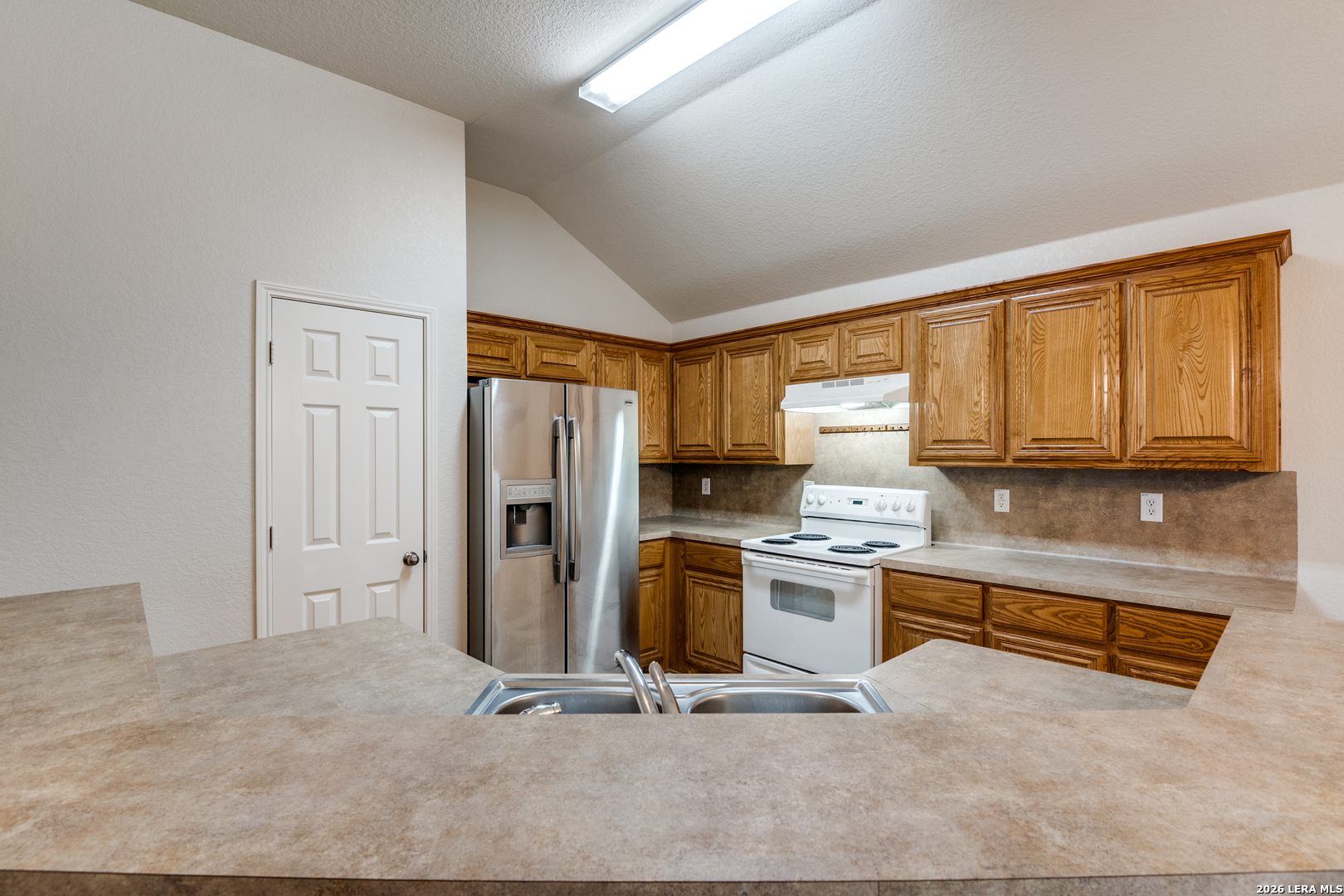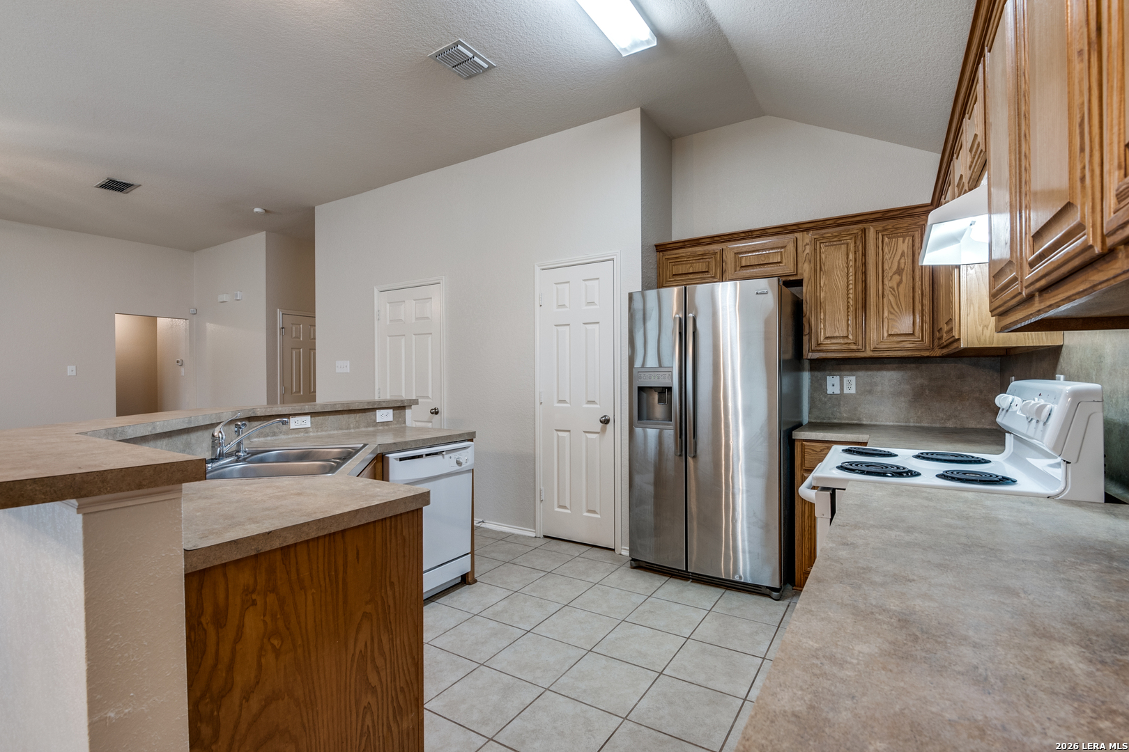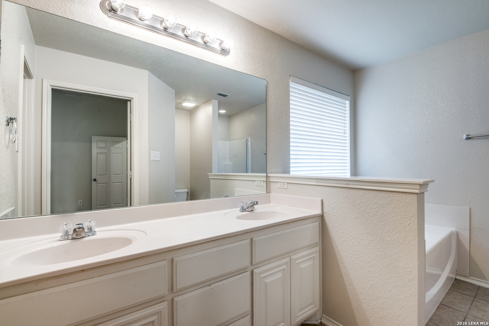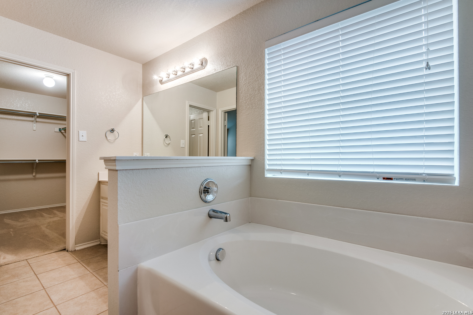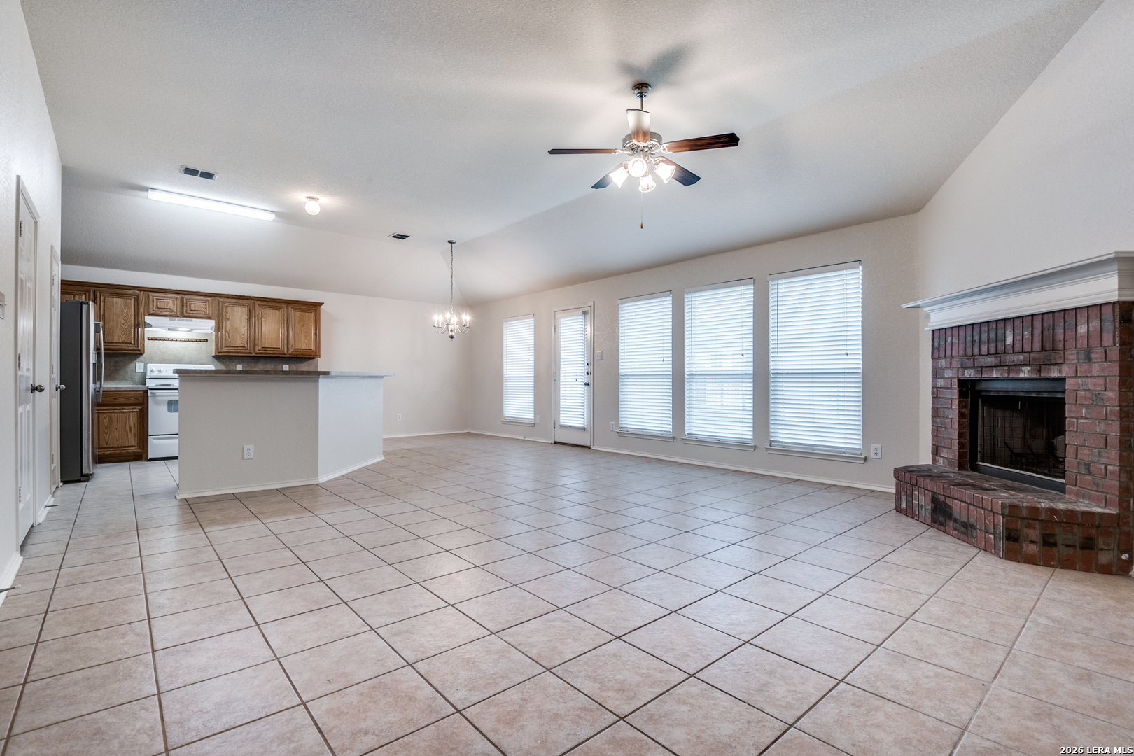 Wonderful large kitchen open to dining and living room. Fireplace in living room. Ceramic tile in all living areas, carpet in bedrooms. Master bedroom has double vanity and garden tub with separate shower. Close to elementary and middle school for NBISD. Close to shopping and IH 35.