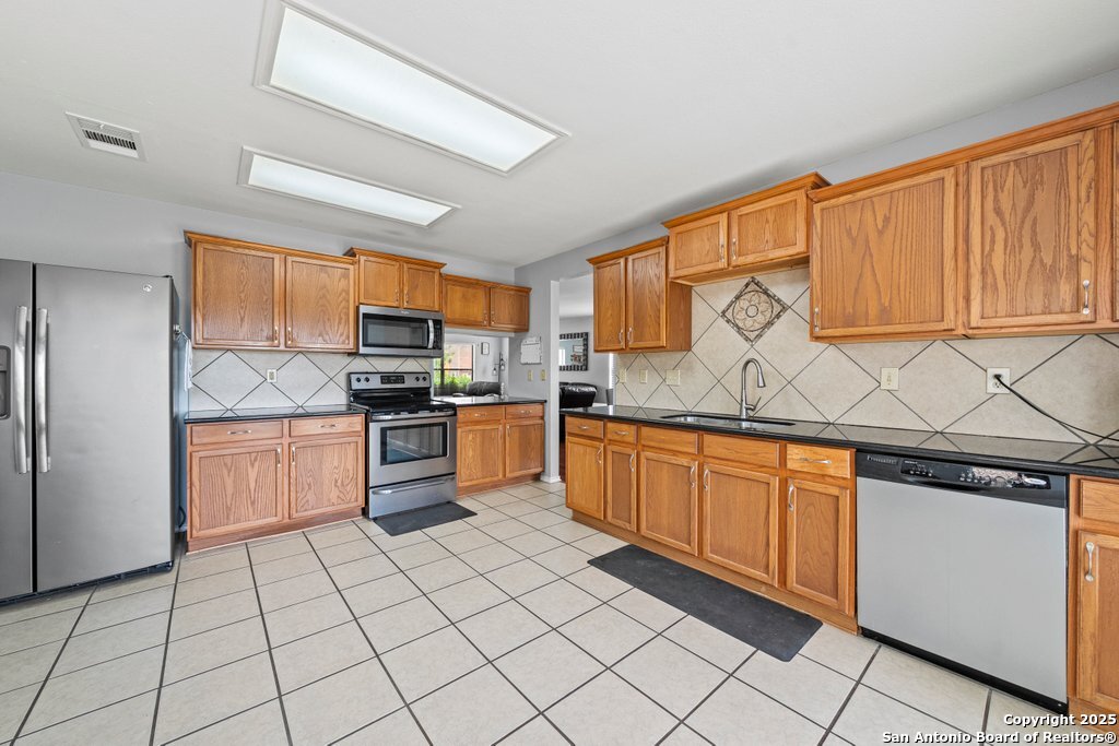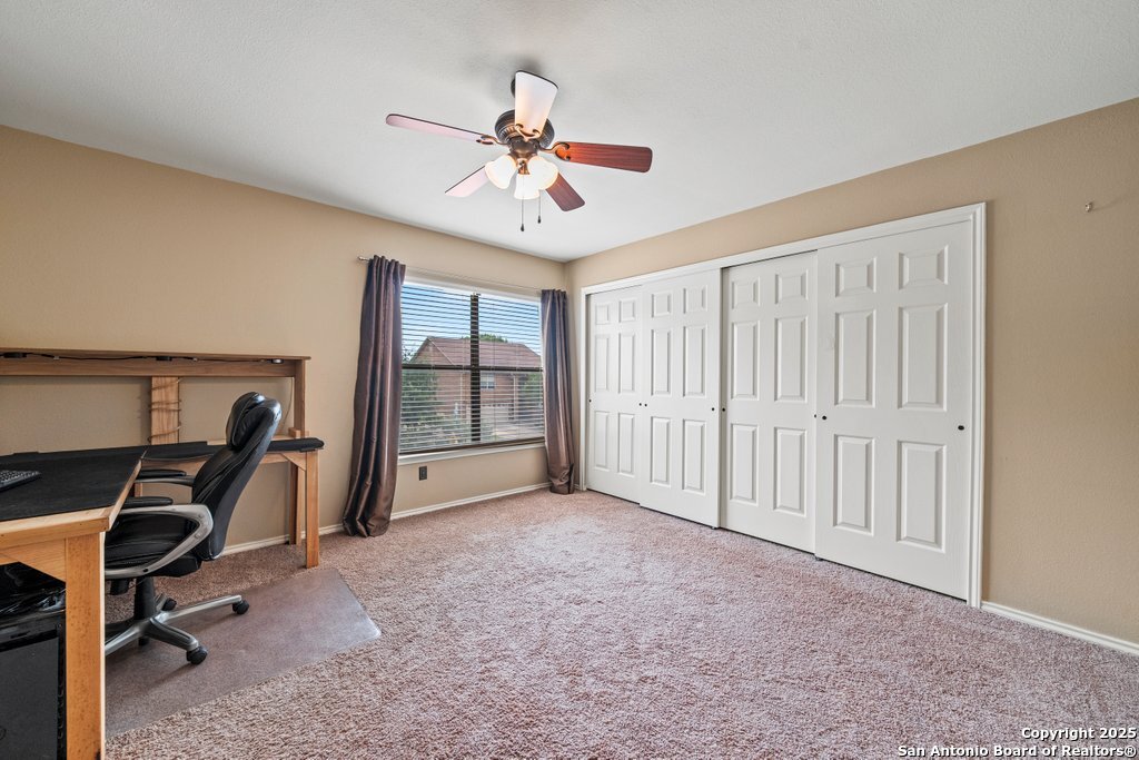 This bright and cheerful, immaculately kept house in SCUCISD is waiting for its new owners to make it their own! You can see and feel the pride of ownership as you walk through this clean home. There is plenty of natural light throughout. The storage will surprise you, with a giant utility/pantry room, under stairs space, and huge walk in closets. The ample sized secondary bedrooms will provide good space for their occupants. Ample doesn't adequately describe the enormous primary bedroom, though! The primary has enough room for your own mini dance hall! Or office space, fitness equipment, seating area, you name it. The kitchen has a great deal of counter space, with plenty of room to move around as you do your kitchen thing. The back door leads to a good sized, level backyard which does not have back yard neighbors. This home is in close proximity to Randolph AFB. The backyard overlooks a school, so it's quiet in the later afternoons, evenings, and weekends. Gorgeous, vibrant bougainvilleas line the front yard, giving this home lovely and welcoming curb appeal! Welcome home, you'll love it here!