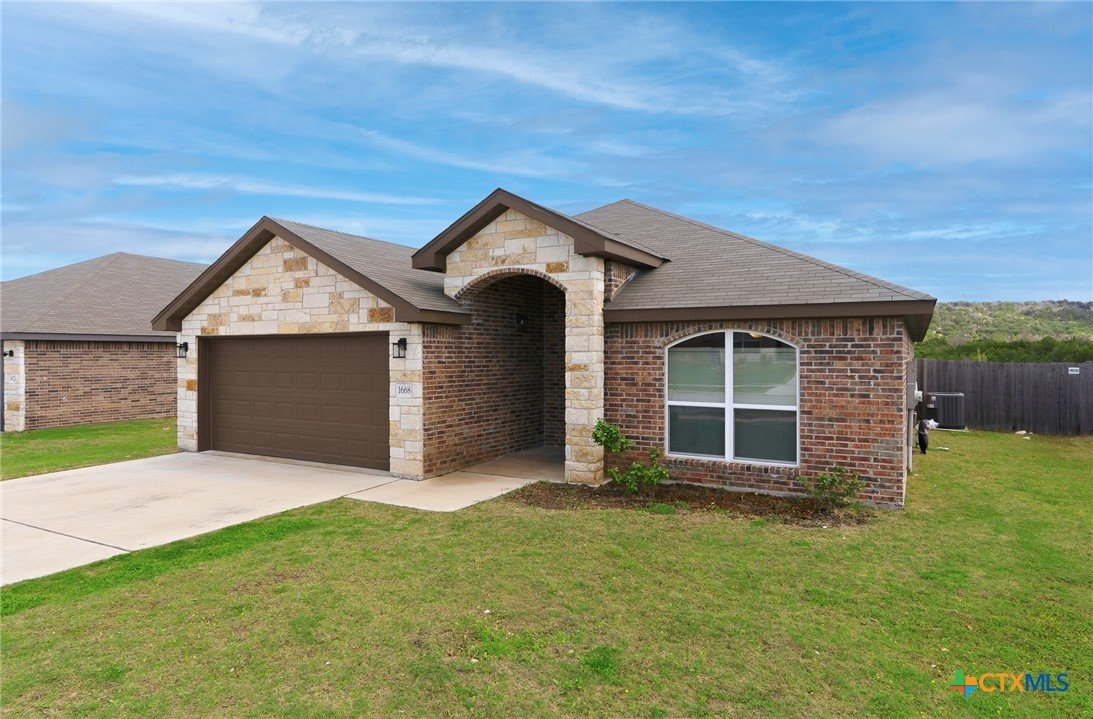 Beautifully designed Tippit built home offering space, comfort, and scenic surroundings. The inviting front entry features an elegant arched porch entry that leads into a welcoming foyer and spacious open concept living area. The expansive living room provides plenty of room for flexible furniture arrangements and features a cozy corner fireplace, creating a warm and comfortable gathering space. The living area transitions smoothly into the dining space and well appointed kitchen, making it ideal for everyday living and entertaining. Large windows in the dining and living area fill the home with natural light and expansive view of the backyard. The kitchen offers granite countertops, an island for additional workspace, abundant cabinetry, and a convenient corner pantry. Durable luxury vinyl plank flooring runs throughout the main living areas, kitchen, dining space, and bathrooms, while the bedrooms feature soft carpeting for added comfort. The private primary suite includes an attractive tray ceiling with crown molding and ceiling fan. The en-suite bath is designed for relaxation with a dual sink granite vanity, soaking tub, separate walk-in shower, and a spacious walk-in closet. The secondary bedrooms share a full bathroom with granite vanity and tub/shower combination. A dedicated laundry room is conveniently located near the hallway leading to the garage. Outdoor living is easy with a large covered patio facing east, providing a comfortable place to relax while overlooking the backyard and the natural landscape beyond. Schedule your showing today!