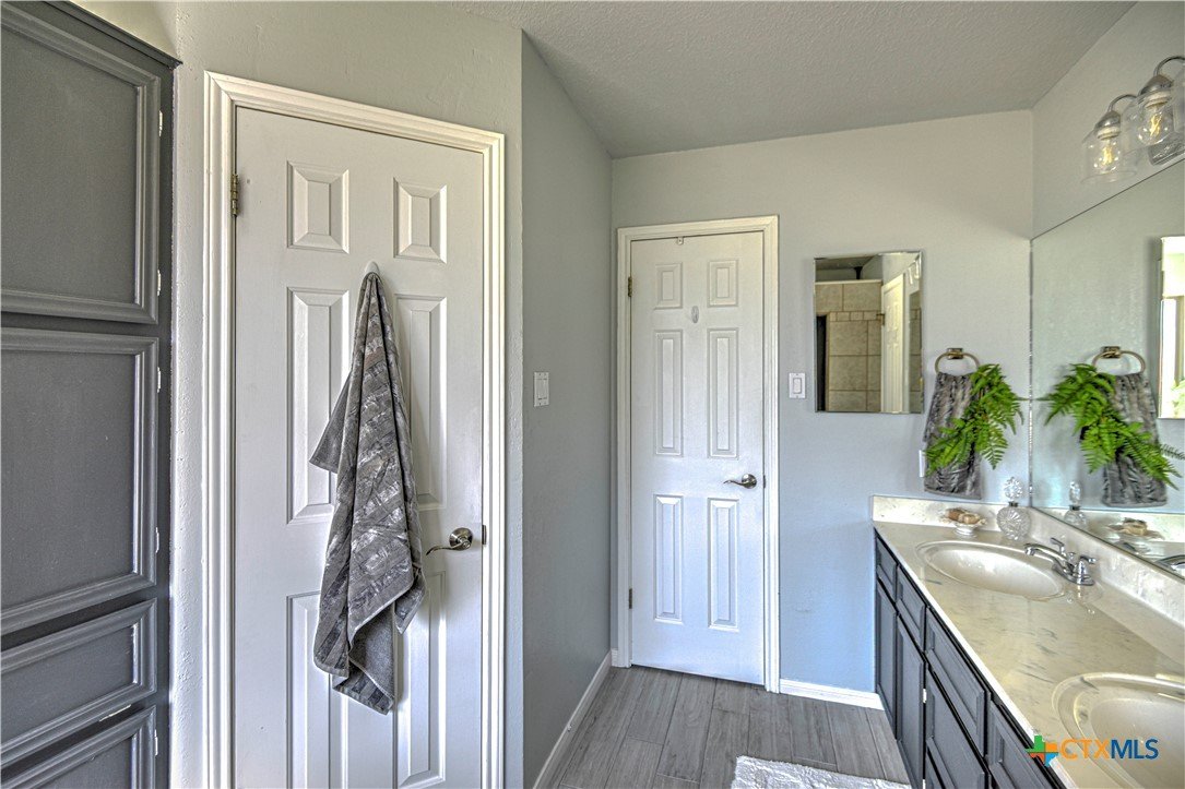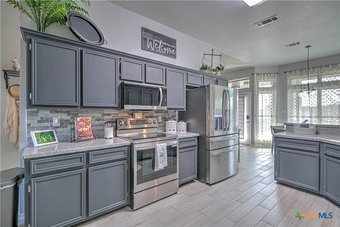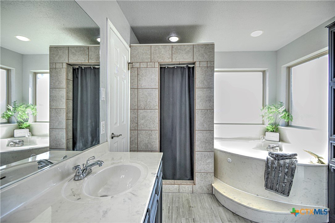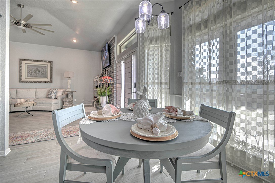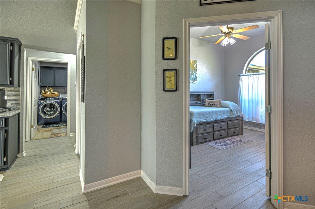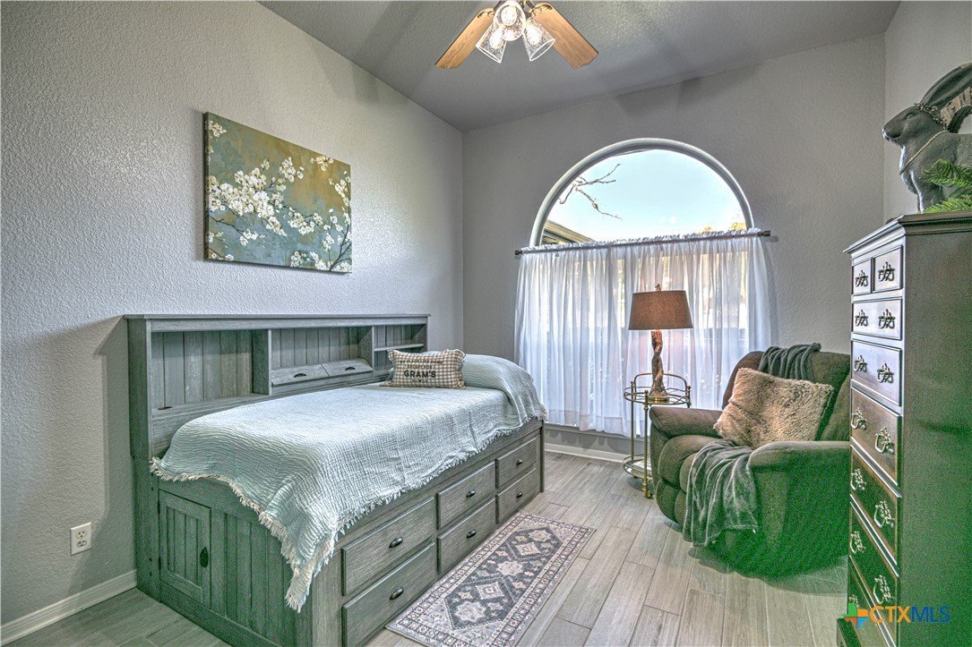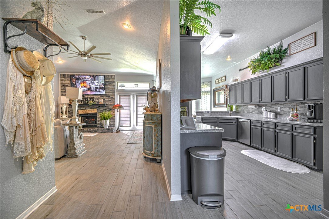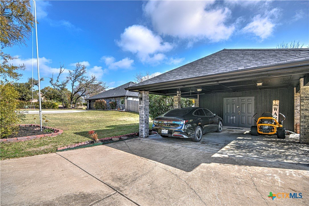 Hidden Country Gem in Belton. This absolutely beautiful 4 bedroom 2 bath home is a true sanctuary property on a little over 3/4 of an acre with no city taxes! Mature trees and beautiful curb appeal! New exterior paint and all new double pane windows for the entire home. As you enter you notice there is brand new wood tile looking floors throughout. Living area is spacious with a fireplace. Large kitchen has stainless steel appliances with storage, pantry, and plenty of counter space! Primary suite has dual vanities, tile floors plus a separate tub and shower. Additional bedrooms are spacious and are set up with a split floorplan; perfect for kids, exercise, office/crafts, or guests! Office or 5th bedroom adjacent to Front Entry. Additional 2 car carport with storage building and carport match home providing room for an additional cars and/or yard equipment. Pristine home that has been well maintained and is ready for its new family!