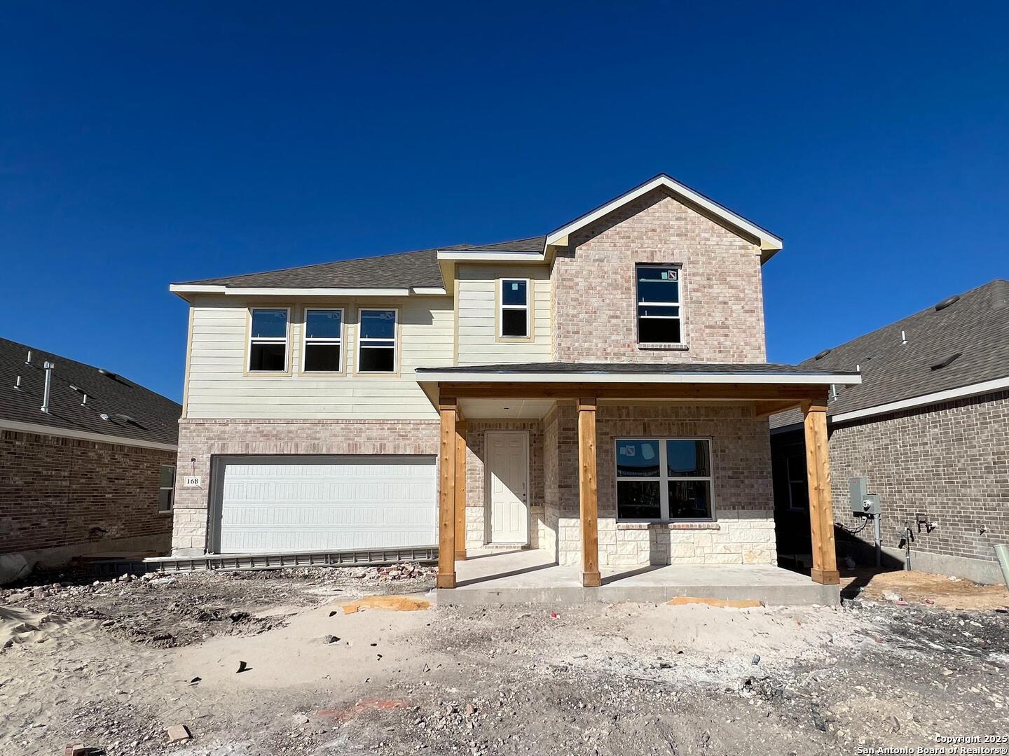Step into this thoughtfully designed two-story home where comfort, style, and everyday functionality come together seamlessly. Natural light fills the open-concept layout, highlighting the gourmet kitchen, breakfast area, and spacious family room. The kitchen serves as the heart of the home, featuring a large center island for casual dining or entertaining, a walk-in pantry for ample storage, and designer finishes that make every meal enjoyable, from weekday breakfasts to holiday gatherings. A flexible space at the front of the home provides the ideal spot for a formal dining room, sitting area, or home office, while a secondary bedroom with a full bathroom offers a comfortable guest suite. Upstairs, a generous loft connects three secondary bedrooms that share a well-appointed bathroom, creating plenty of space for a growing family. The primary suite is a private retreat with thoughtful details and comfort, located alongside the upstairs utility room for added convenience. Outside, a covered patio offers the perfect setting for relaxing or entertaining while enjoying views of the backyard. Every aspect of this home is designed to balance style, functionality, and comfort, providing a welcoming environment for family life, entertaining guests, and everyday living. With its versatile layout and elegant finishes, this home supports every part of your lifestyle while creating spaces for both connection and privacy. This home is part of our Coastal Collection-bringing a breezy, light-filled vibe inspired by shorelines and sunny escapes. Think soft linen and sea glass tones, airy textures, and open spaces that feel effortlessly relaxed. It's the sensation of a fresh ocean breeze, even miles from the water, and the kind of space that makes every day feel like a getaway. Whether you're hosting a sun-soaked brunch or unwinding after a long day, the Coastal Collection delivers a timeless, vacation-at-home atmosphere. This home is located in Nopal Valley, a welcoming community in West San Antonio. Spacious homesites offer room for outdoor living, and the neighborhood will feature a pool, pavilion, and playground for family fun and relaxation. Inside, the home is thoughtfully designed with open layouts perfect for entertaining or enjoying quiet moments. With convenient access to shopping, dining, Medina Valley ISD schools, and Lackland Air Force Base, it combines modern comfort and functional design in an ideal location.