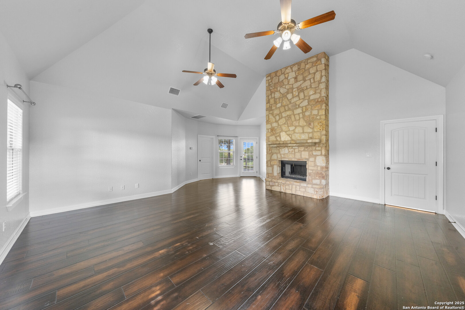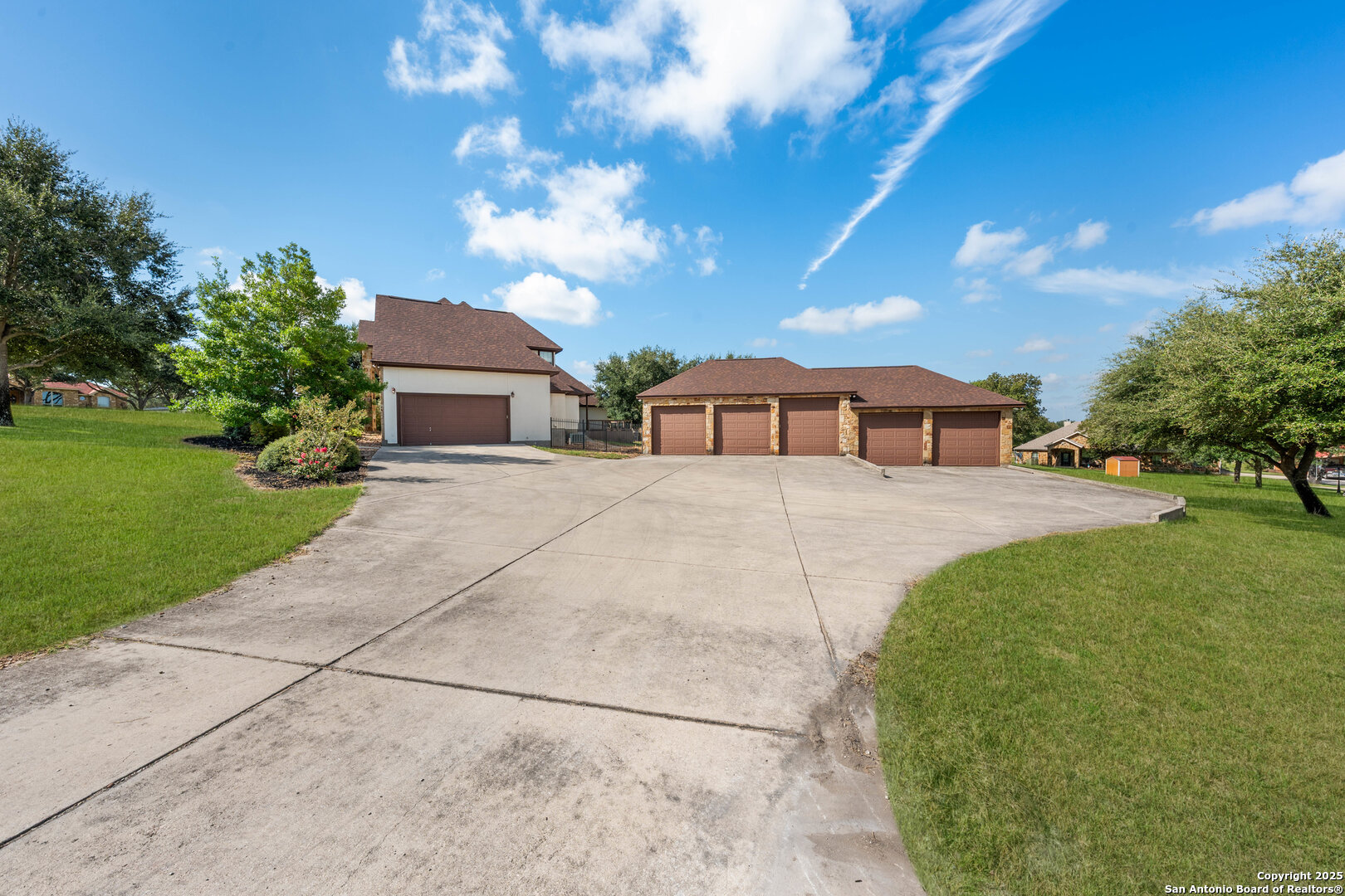 Absolutely Gorgeous Custom Home priced to give you INSTANT Equity of nearly $50k according to the cad--This ONE-OF-A-KIND corner lot property blends simplistic functionality with some high-end comfort--Seller has made many UPGRADES getting this home ready for You!--Many of these UPGRADES are Featured in this Chef's Dream of a kitchen; Including New Double ovens, New 5-Burner Cooktop, New Dishwasher, and a massive, nearly 25 sqft custom granite island surrounded by a number of custom cabinets, granite countertops--Situated perfectly in-between the dining area and eat in kitchen, brightened by recessed and pendant lighting--The open concept layout flows right into the living area complete with high ceilings and fire place--The primary bedroom has it's own fireplace, two ceiling fans, large bathroom with double vanity, his & hers closets--The 5th bedroom can serve perfectly as an office with Beautiful Cherry Wood Cabinets & Shelving--One of the three Bedrooms upstairs can function as a secondary suite--All bedrooms have engineered hardwood flooring with a hand scraped finish--The back yard provides you a lakeview on the 20x21 patio & composite deck that is perfectly shaded by the ever growing Oak Trees!--The Meticulously Maintained Landscaping and Trees are easily kept going in this South Texas heat with the sprinkler system fed by the water well--And OH MY G.... Garage! Nearly 1400 sqft of additional detached garage space for the car lover, craftsman, hobbyist, etc.--5 bays to use as you see fit with plenty of attic storage--Lower level bays have been utilized for years as a workout area, family/man cave hosting domino & card games and even an early location for some of the original HOA meetings--Easy access to 181, Floresville or San Antonio--So much to offer with this property, highlighted by the opportunity to grasp some Equitable Value!