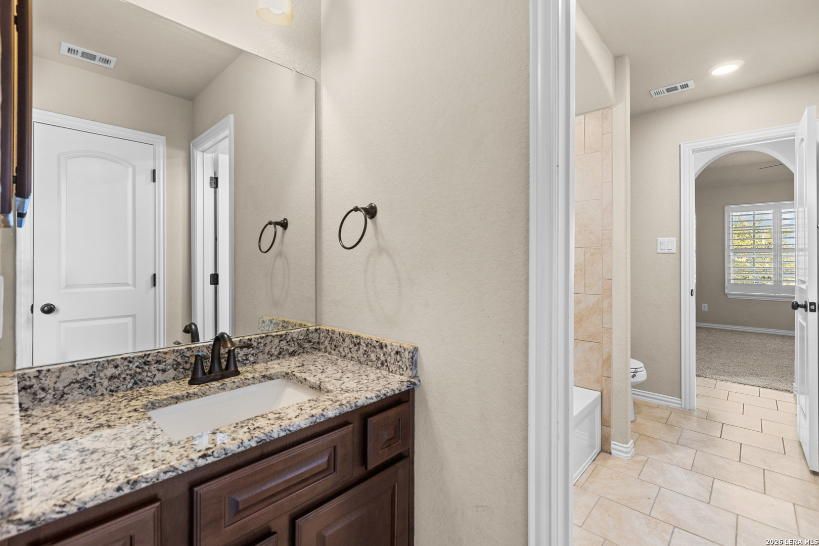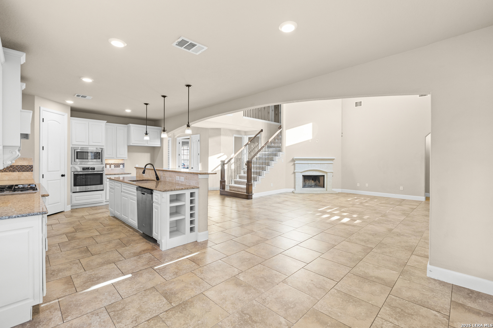Expansive two-story residence offering 5 bedrooms and 3.5 bathrooms with a well-designed open floor plan ideal for both everyday living and entertaining. Soaring ceilings and abundant natural light enhance the elegant feel of the main living spaces. The grand living room features a fireplace, while the kitchen offers a breakfast bar perfect for casual dining or hosting guests. A very large attic provides exceptional potential for future expansion or customized living space. Situated in the gated Sonoma Mesa community, this 3,804 sq ft home is conveniently located minutes from La Cantera, The Rim, Palmer Golf Course, Six Flags, Valero, and USAA, with easy interstate access. An excellent opportunity to elevate and personalize a luxury home-some TLC needed.