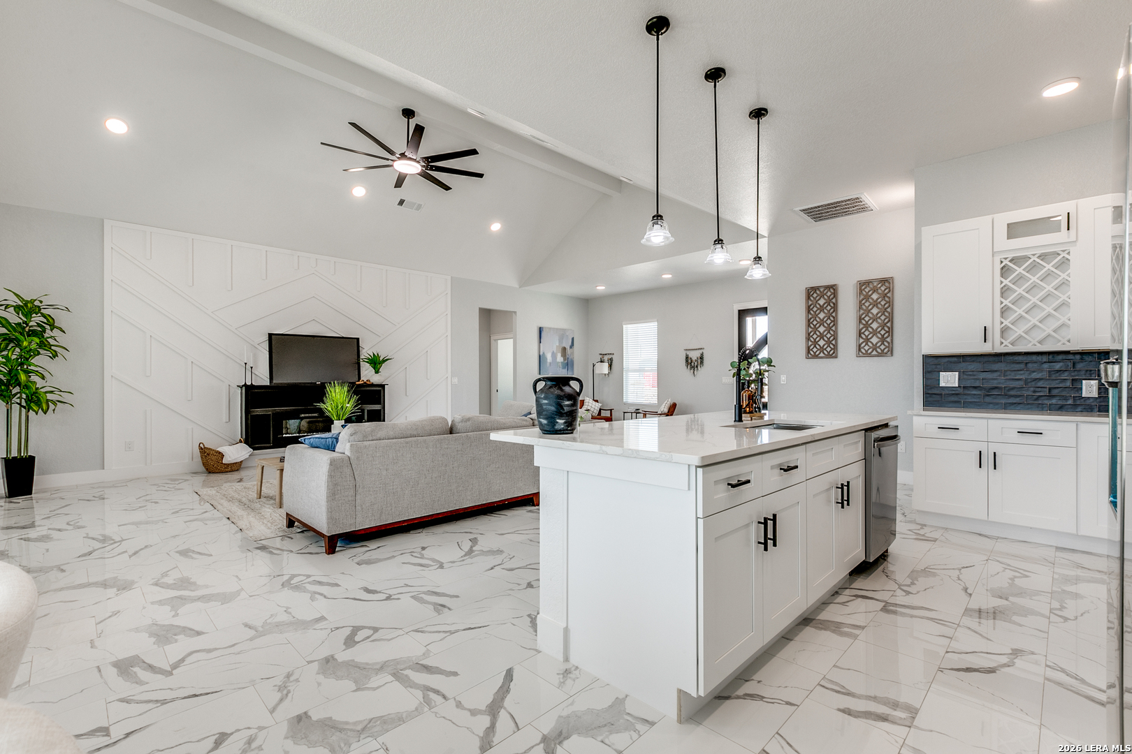Welcome to this beautifully designed 4-bedroom home situated on over half an acre, offering the perfect blend of modern style and comfortable living. As you enter through the inviting foyer, you're welcomed into a large, open-concept living area with impressive high ceilings, abundant natural light, and a stunning floor-to-ceiling electric fireplace feature wall that creates a striking focal point. The spacious living room flows seamlessly into the custom-designed kitchen, showcasing custom cabinetry, modern lighting, generous counter space, and a large walk-in pantry, making it perfect for everyday living and entertaining. Just off the kitchen, the thoughtfully designed layout includes a mudroom and a spacious laundry room complete with a utility sink for added convenience and functionality. The home offers four well-sized bedrooms and a convenient half bath with exterior access, ideal for guests enjoying the outdoor space without needing to walk through the home. Step outside to enjoy the expansive property featuring a covered back porch, perfect for relaxing evenings or hosting gatherings. The property also includes a large side carport with beautiful wood accents, providing ample covered parking and additional outdoor entertaining space. With high ceilings, modern finishes, functional spaces, and over half an acre of land, this home offers the perfect combination of comfort, style, and room to enjoy both indoor and outdoor living.