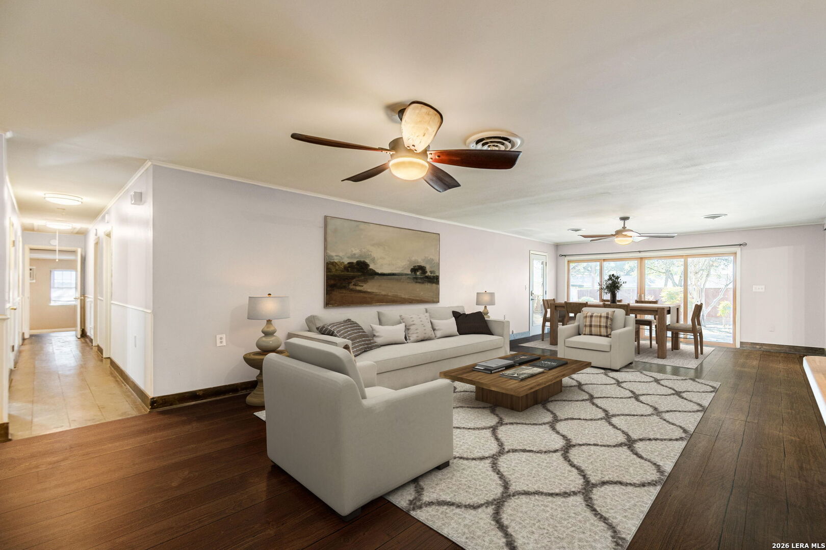 Rare Opportunity "On the Hill" - Over 4,500 SQFT of Mid-Century Potential! Discover the ultimate canvas for your dream estate in one of New Braunfels' most established and sought-after neighborhoods. Built in 1965, this sprawling 5-bedroom, 5.5-bathroom residence offers the kind of character and architectural footprint rarely found today. The interior is designed for effortless flow, featuring a massive primary retreat with a private fireplace, a dedicated office/library, and a 24-foot flex/game room. The layout is a dream for multi-generational living, boasting a separate guest wing with its own entrance. The living space extends brilliantly outdoors, where the lifestyle options are endless. Enjoy quiet evenings in the screened-in porch with a hot tub, featuring a private entrance directly from the primary suite. A second screened-in porch serves as a private retreat for Bedrooms 2 and 3, while the central deck and expansive covered entertainment patio-complete with additional storage and built-in bar potential-provide the perfect backdrop for hosting. Opportunities to own a home of this size in the Hill district are few and far between. Bring your contractor and your imagination to restore this mid-century gem to its full glory! This house sits in a prime neighborhood close to downtown New Braunfels. No HOA. See docs for floor plan.