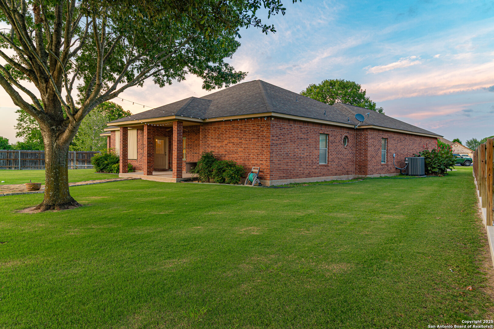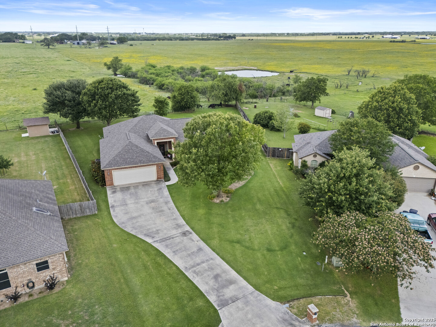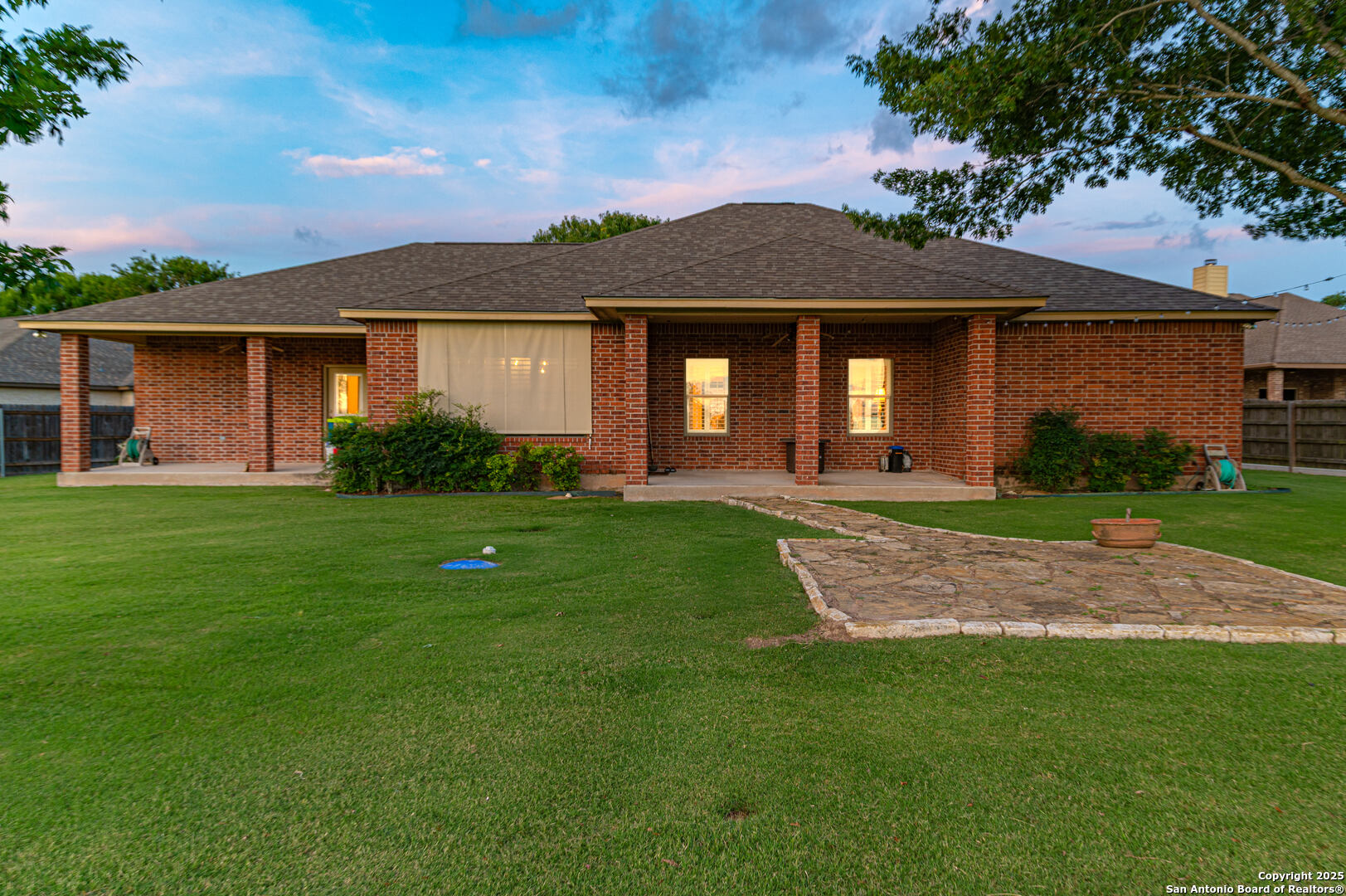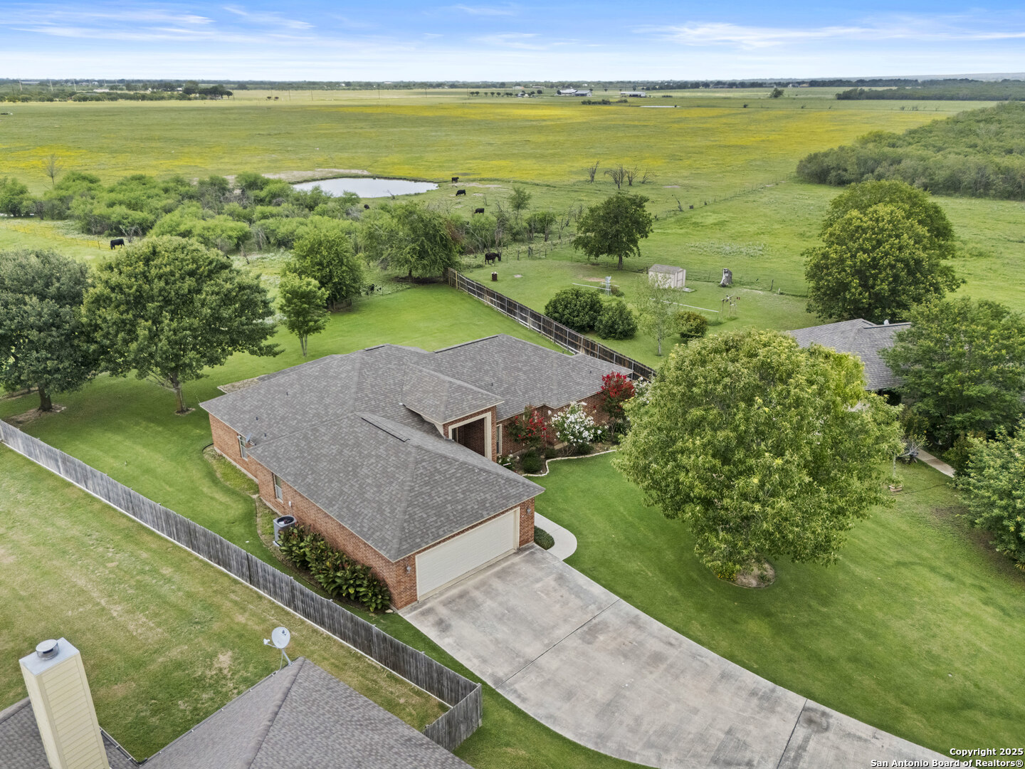 Welcome to this inviting 3 bedroom, 2 1/2 bathroom home nestled on a spacious 1/2 acre lot at the end of a peaceful cul-de-sac. Located just outside the city limits in a quaint and quiet neighborhood, this home offers the perfect blend of country serenity and modern convenience. As you enter, you're welcomed by a beautiful foyer that opens into a spacious living room, elegantly framed by a graceful archway. The kitchen has just been thoughtfully renovated with brand-new stainless steel appliances, gleaming quartz countertops, and custom cabinetry that combines function and style. Whether you're preparing meals or entertaining guests, this space is sure to impress. In 2024 a brand new HVAC, garage door, and an Andersen window in the dining room were put in. The roof was also replaced in 2022. This home also has a sprinkler system and has permanent LED exterior lighting (TrimLights Brand) for year round programmable lighting options. The expansive primary suite is a true retreat, boasting two walk-in closets and a unique en-suite layout with separate his and hers toilet areas for added privacy and comfort. A private door from the primary bedroom opens to a covered patio-perfect for morning coffee or watching the sunsets in the evenings. Outside the primary suite is a study that is perfect for working from home or a quiet reading space. The additional bedrooms are thoughtfully situated on the other side of the home, offering privacy and separation from the primary suite. Designed for convenience, the guest bath offers a dual-vanity layout-an area with a double vanity and wall-to-wall storage along with another single vanity inside the private toilet/shower area. Enjoy sitting on your back porch overlooking serene countryside views all while being just a short drive to town. This home truly has it all. Don't miss your chance to own this one-of-a-kind property-schedule your showing today!