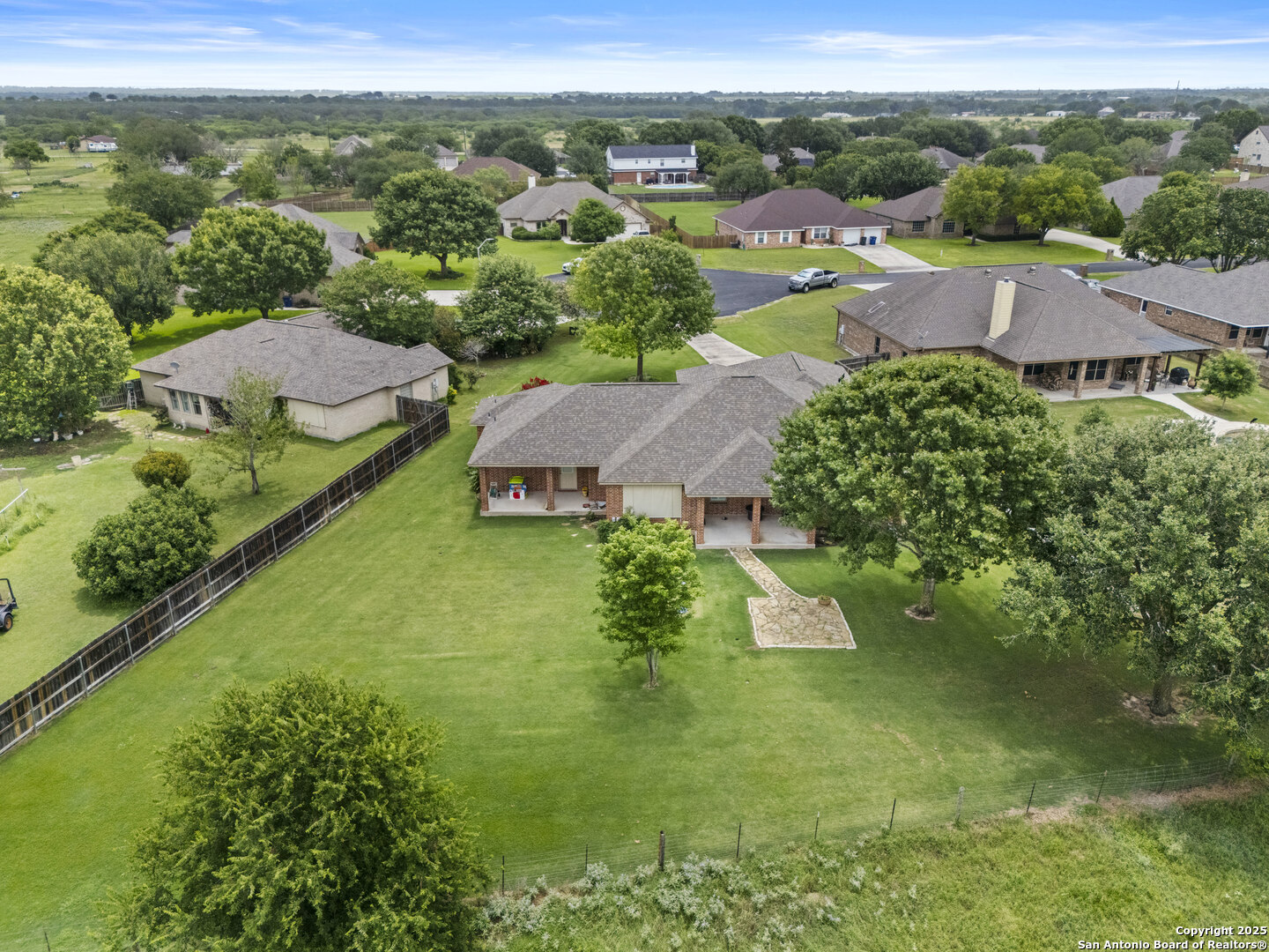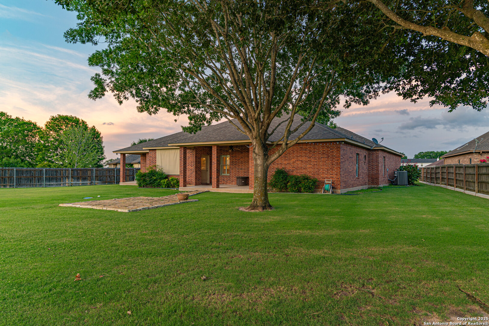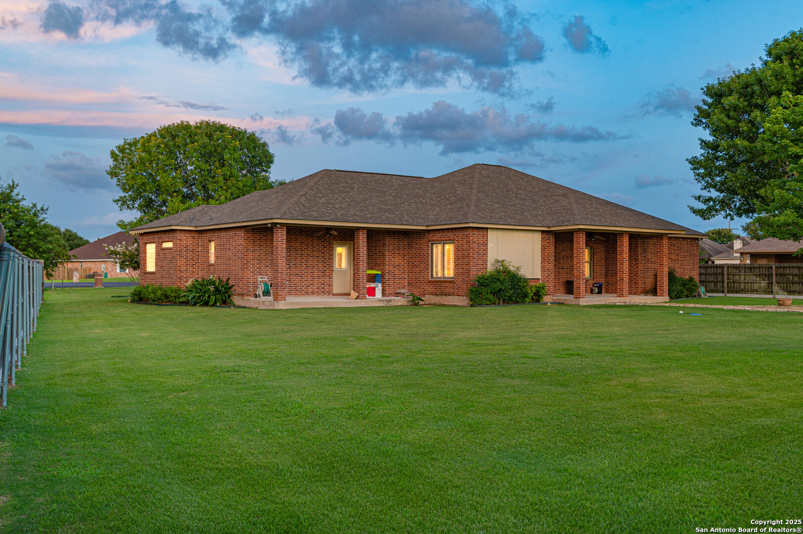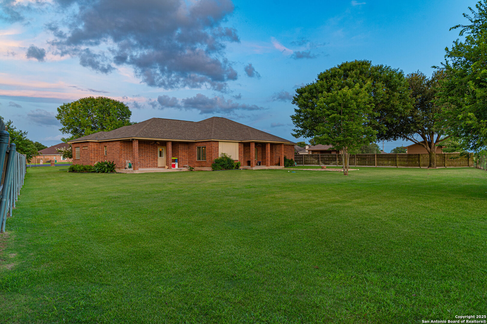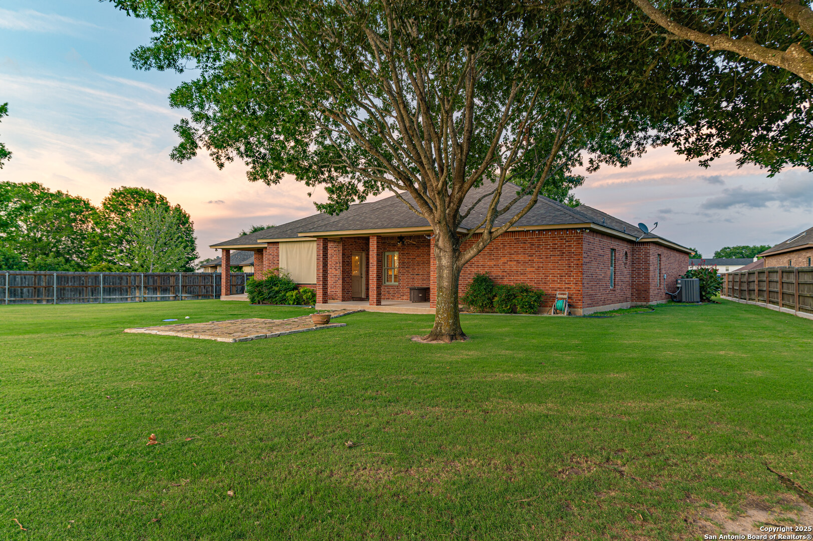 Welcome to this inviting 3 bedroom, 2 1/2 bathroom home nestled on a spacious 1/2 acre lot at the end of a peaceful cul-de-sac. Located just outside the city limits in a quaint and quiet neighborhood, this home offers the perfect blend of country serenity and modern convenience. As you enter, you're welcomed by a beautiful foyer that opens into a spacious living room, elegantly framed by a graceful archway. The kitchen has just been thoughtfully renovated with brand-new stainless steel appliances, gleaming quartz countertops, and custom cabinetry that combines function and style. Whether you're preparing meals or entertaining guests, this space is sure to impress. In 2024 a brand new HVAC, garage door, and an Andersen window in the dining room were put in. The roof was also replaced in 2022. This home also has a sprinkler system and has permanent LED exterior lighting (TrimLights Brand) for year round programmable lighting options. The expansive primary suite is a true retreat, boasting two walk-in closets and a unique en-suite layout with separate his and hers toilet areas for added privacy and comfort. A private door from the primary bedroom opens to a covered patio-perfect for morning coffee or watching the sunsets in the evenings. Outside the primary suite is a study that is perfect for working from home or a quiet reading space. The additional bedrooms are thoughtfully situated on the other side of the home, offering privacy and separation from the primary suite. Designed for convenience, the guest bath offers a dual-vanity layout-an area with a double vanity and wall-to-wall storage along with another single vanity inside the private toilet/shower area. Enjoy sitting on your back porch overlooking serene countryside views all while being just a short drive to town. This home truly has it all. Don't miss your chance to own this one-of-a-kind property-schedule your showing today!