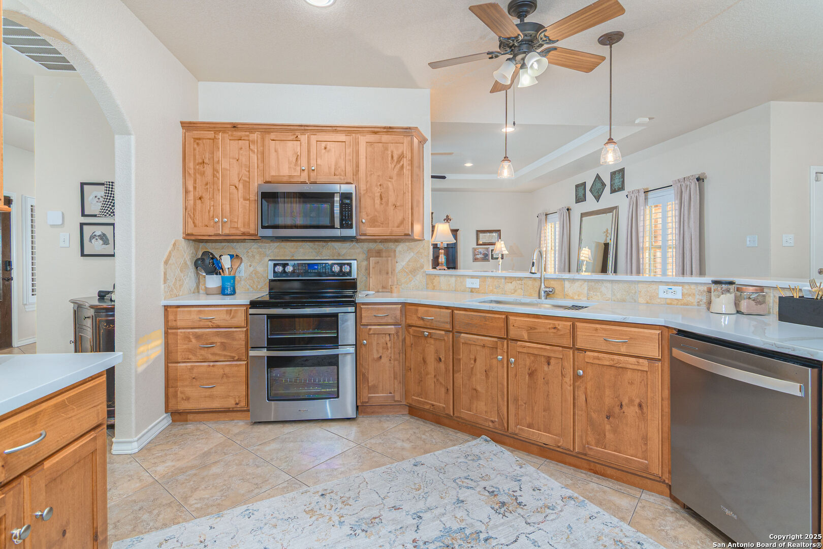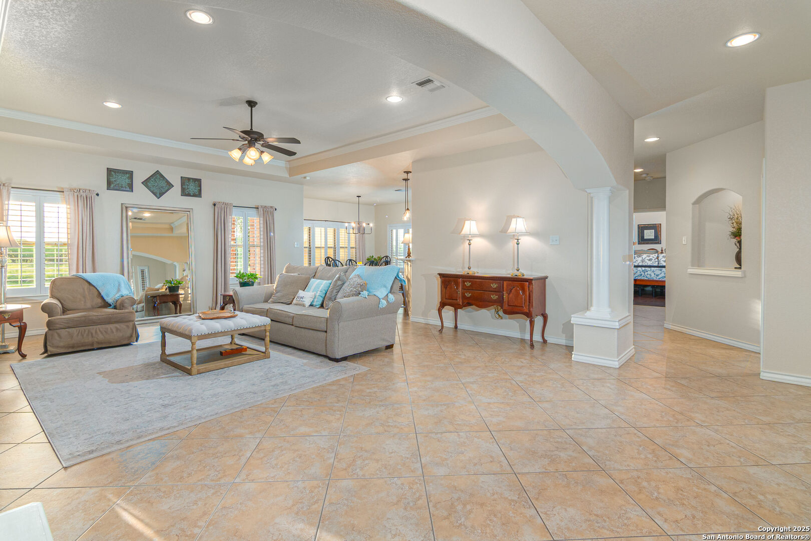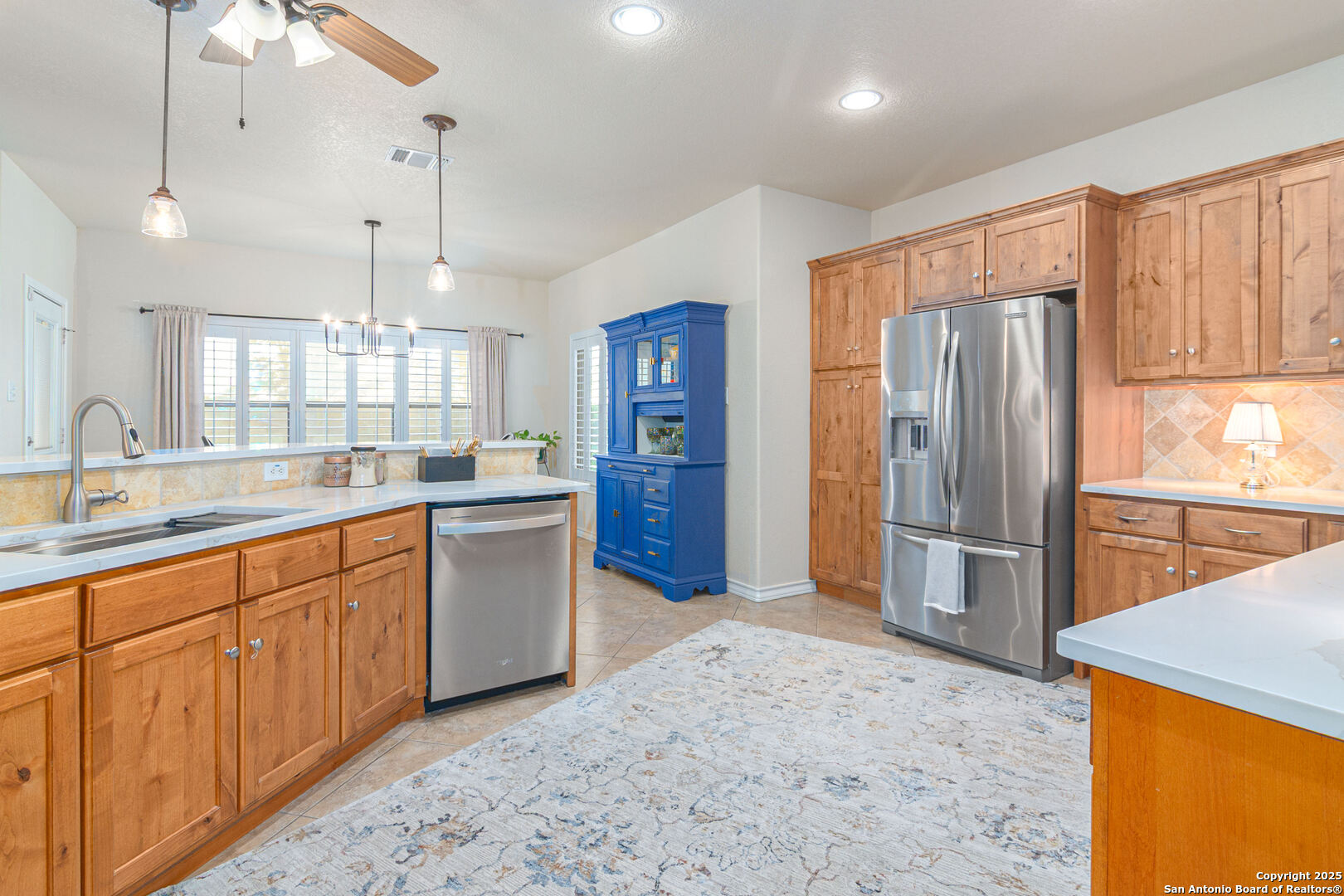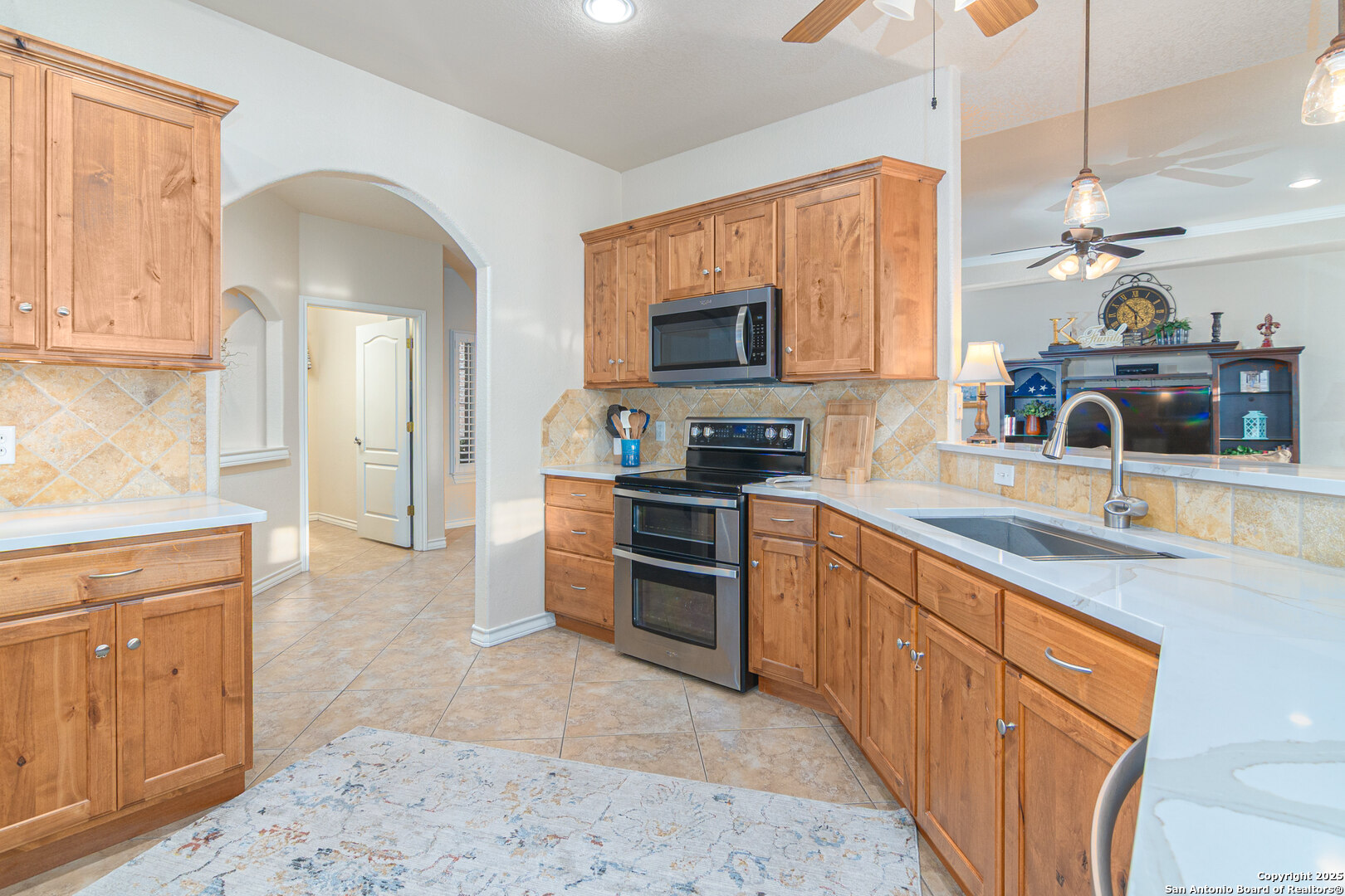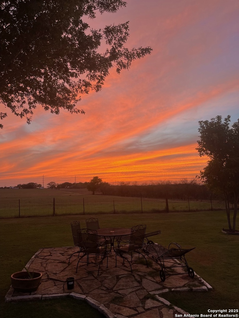 Welcome to this inviting 3 bedroom, 2 1/2 bathroom home nestled on a spacious 1/2 acre lot at the end of a peaceful cul-de-sac. Located just outside the city limits in a quaint and quiet neighborhood, this home offers the perfect blend of country serenity and modern convenience. As you enter, you're welcomed by a beautiful foyer that opens into a spacious living room, elegantly framed by a graceful archway. The kitchen has just been thoughtfully renovated with brand-new stainless steel appliances, gleaming quartz countertops, and custom cabinetry that combines function and style. Whether you're preparing meals or entertaining guests, this space is sure to impress. In 2024 a brand new HVAC, garage door, and an Andersen window in the dining room were put in. The roof was also replaced in 2022. This home also has a sprinkler system and has permanent LED exterior lighting (TrimLights Brand) for year round programmable lighting options. The expansive primary suite is a true retreat, boasting two walk-in closets and a unique en-suite layout with separate his and hers toilet areas for added privacy and comfort. A private door from the primary bedroom opens to a covered patio-perfect for morning coffee or watching the sunsets in the evenings. Outside the primary suite is a study that is perfect for working from home or a quiet reading space. The additional bedrooms are thoughtfully situated on the other side of the home, offering privacy and separation from the primary suite. Designed for convenience, the guest bath offers a dual-vanity layout-an area with a double vanity and wall-to-wall storage along with another single vanity inside the private toilet/shower area. Enjoy sitting on your back porch overlooking serene countryside views all while being just a short drive to town. This home truly has it all. Don't miss your chance to own this one-of-a-kind property-schedule your showing today!