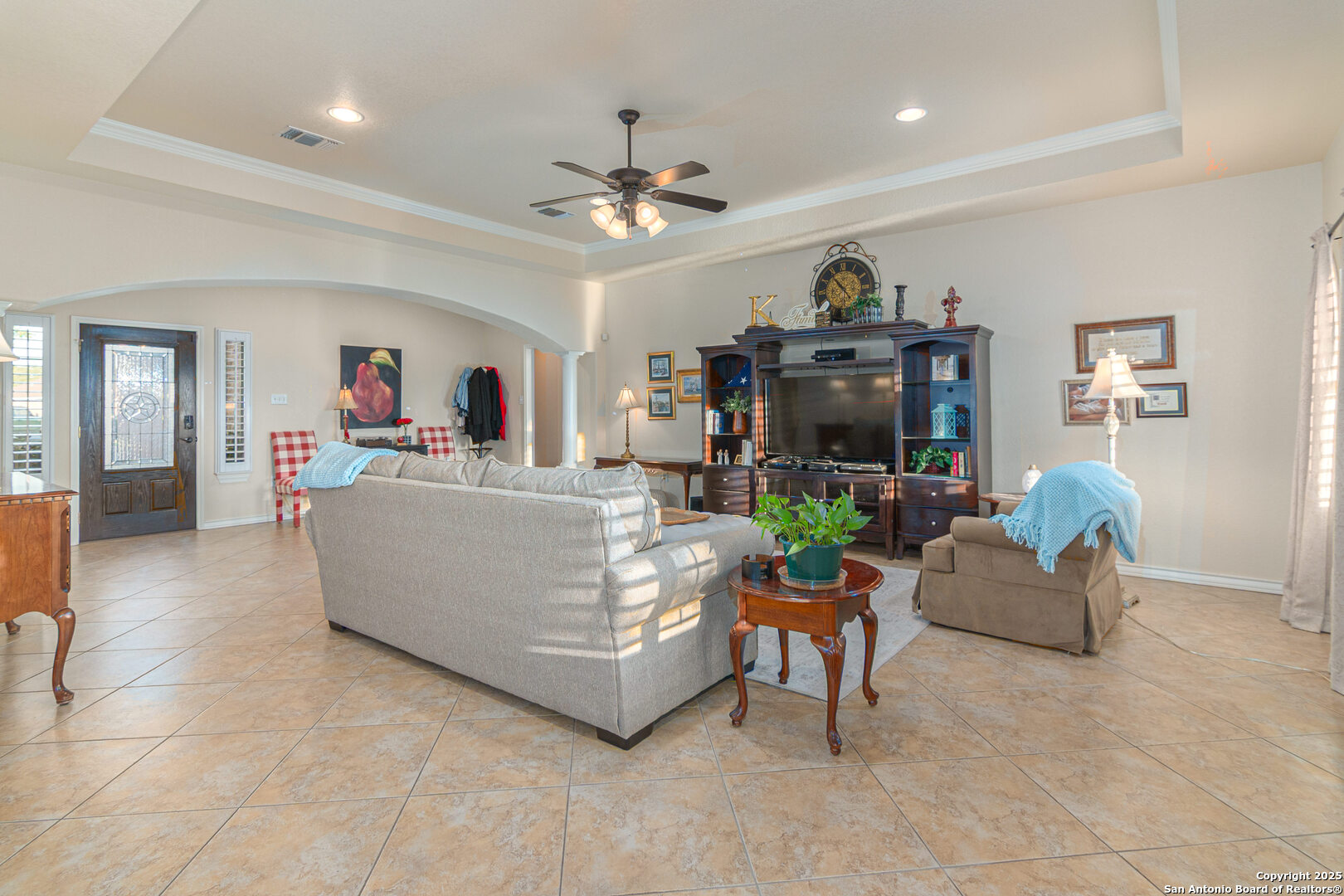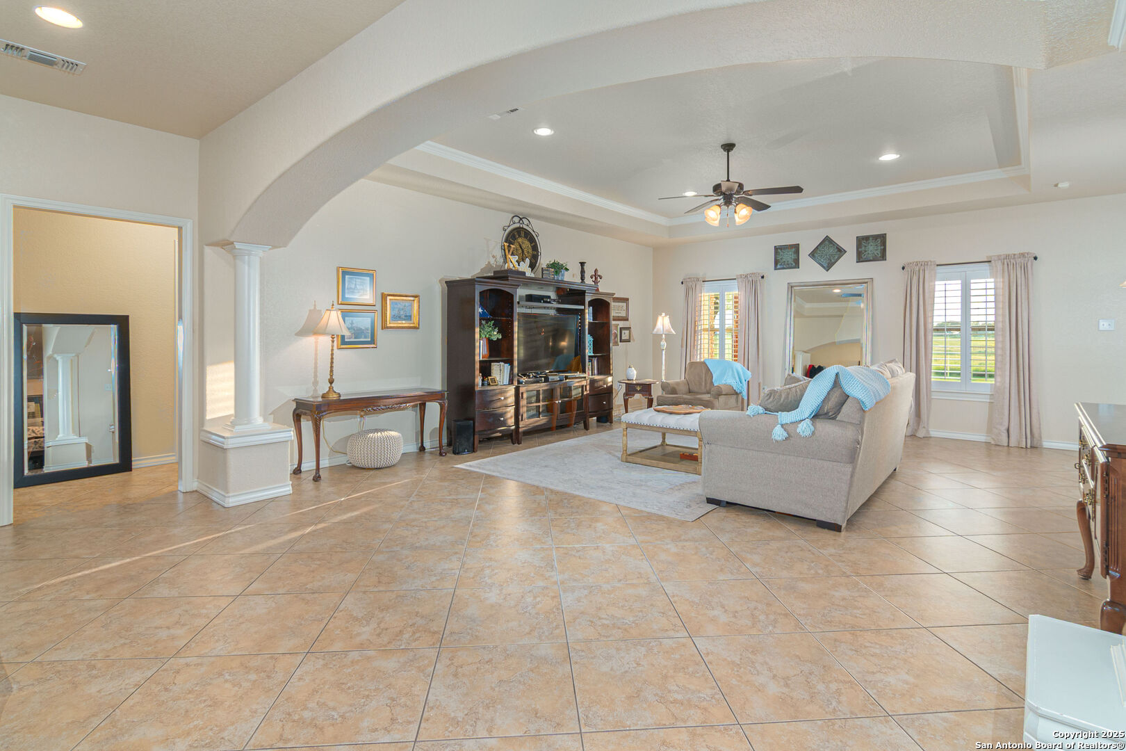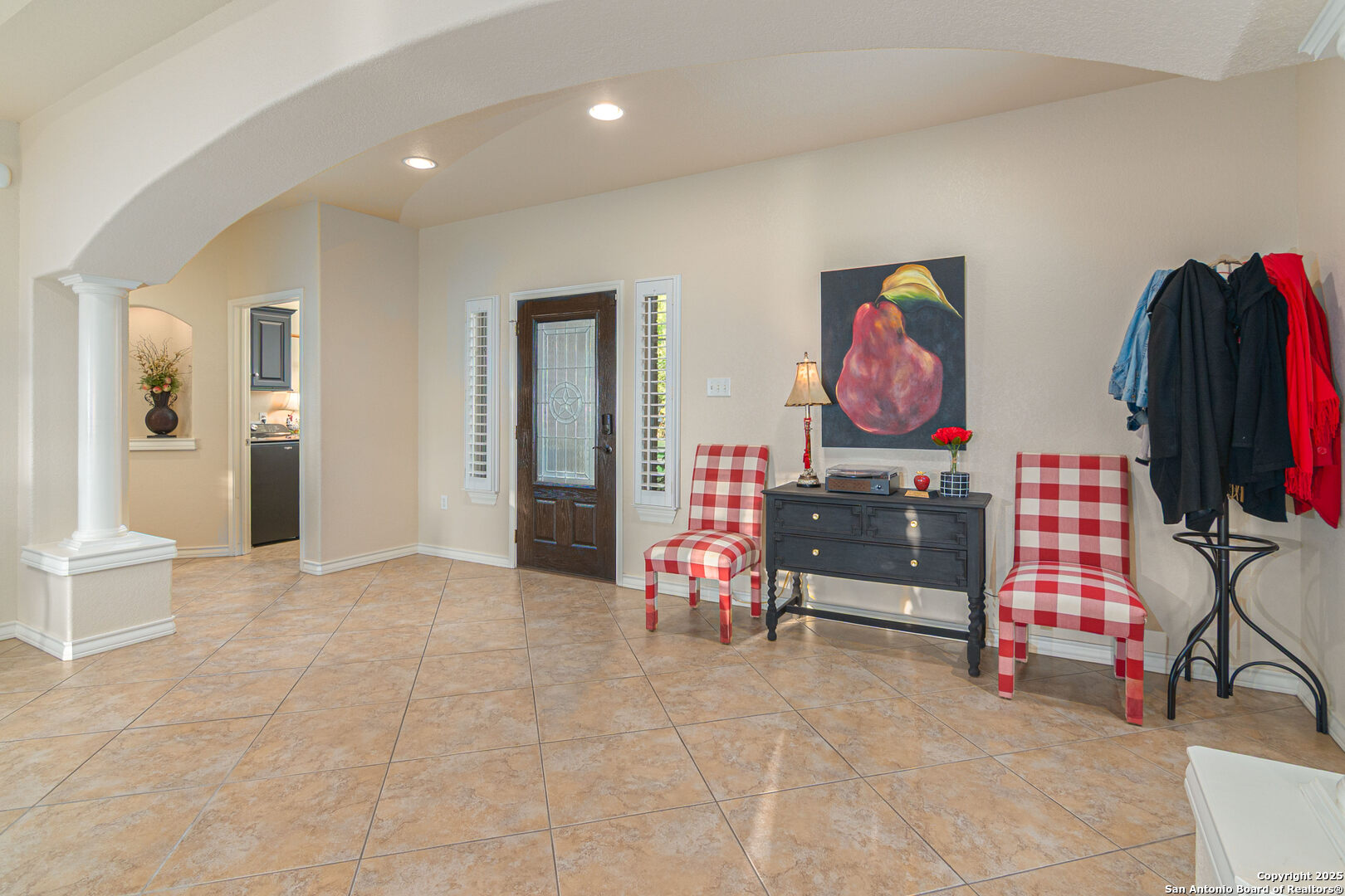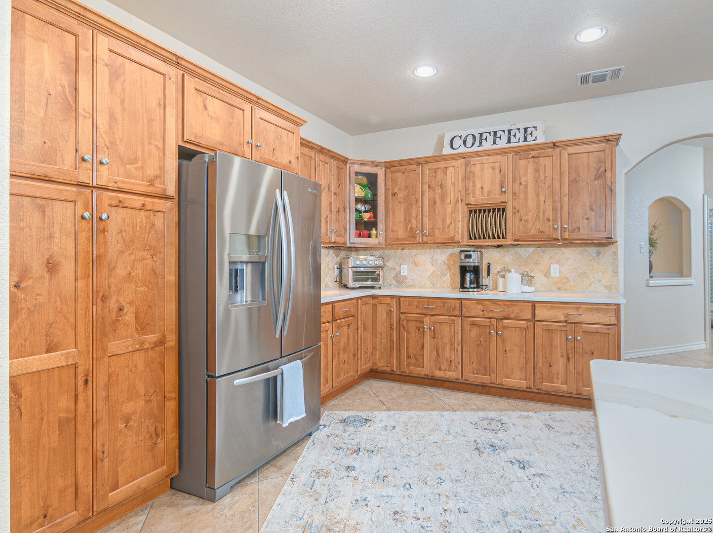 Welcome to this inviting 3 bedroom, 2 1/2 bathroom home nestled on a spacious 1/2 acre lot at the end of a peaceful cul-de-sac. Located just outside the city limits in a quaint and quiet neighborhood, this home offers the perfect blend of country serenity and modern convenience. As you enter, you're welcomed by a beautiful foyer that opens into a spacious living room, elegantly framed by a graceful archway. The kitchen has just been thoughtfully renovated with brand-new stainless steel appliances, gleaming quartz countertops, and custom cabinetry that combines function and style. Whether you're preparing meals or entertaining guests, this space is sure to impress. In 2024 a brand new HVAC, garage door, and an Andersen window in the dining room were put in. The roof was also replaced in 2022. This home also has a sprinkler system and has permanent LED exterior lighting (TrimLights Brand) for year round programmable lighting options. The expansive primary suite is a true retreat, boasting two walk-in closets and a unique en-suite layout with separate his and hers toilet areas for added privacy and comfort. A private door from the primary bedroom opens to a covered patio-perfect for morning coffee or watching the sunsets in the evenings. Outside the primary suite is a study that is perfect for working from home or a quiet reading space. The additional bedrooms are thoughtfully situated on the other side of the home, offering privacy and separation from the primary suite. Designed for convenience, the guest bath offers a dual-vanity layout-an area with a double vanity and wall-to-wall storage along with another single vanity inside the private toilet/shower area. Enjoy sitting on your back porch overlooking serene countryside views all while being just a short drive to town. This home truly has it all. Don't miss your chance to own this one-of-a-kind property-schedule your showing today!