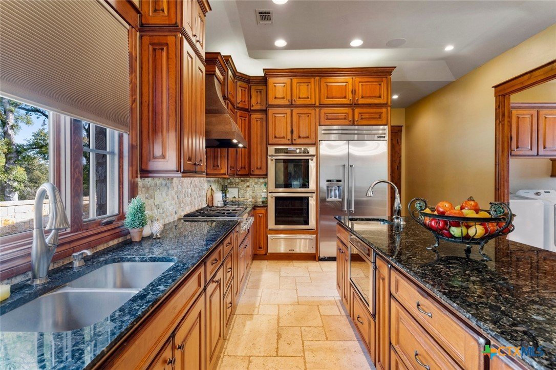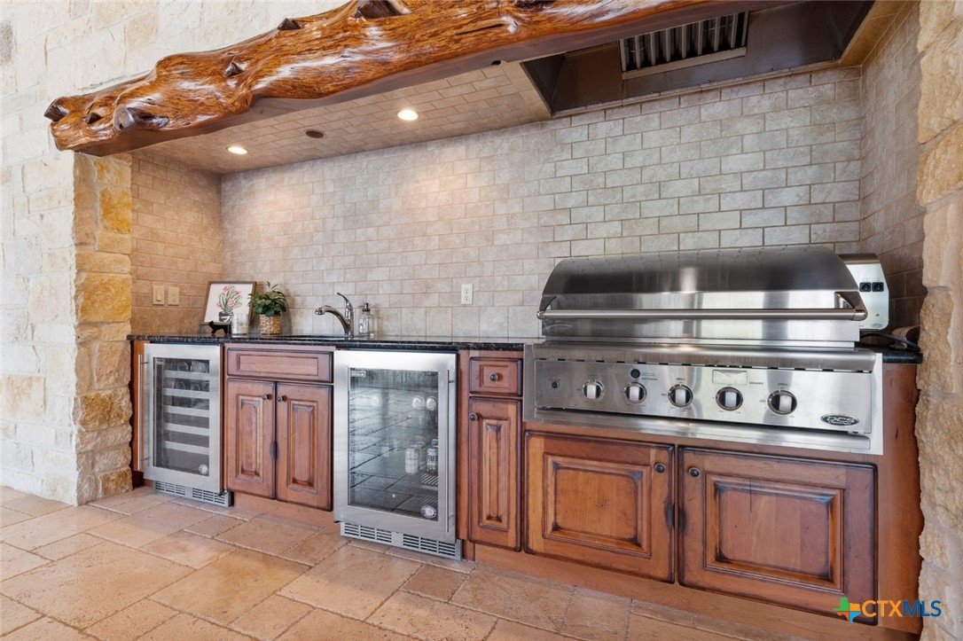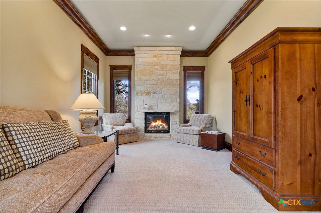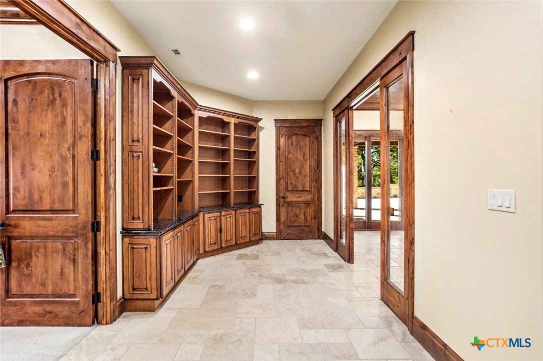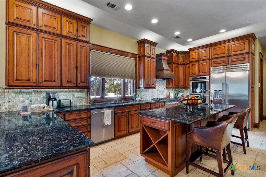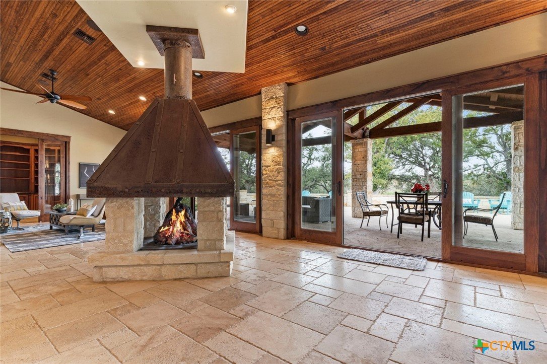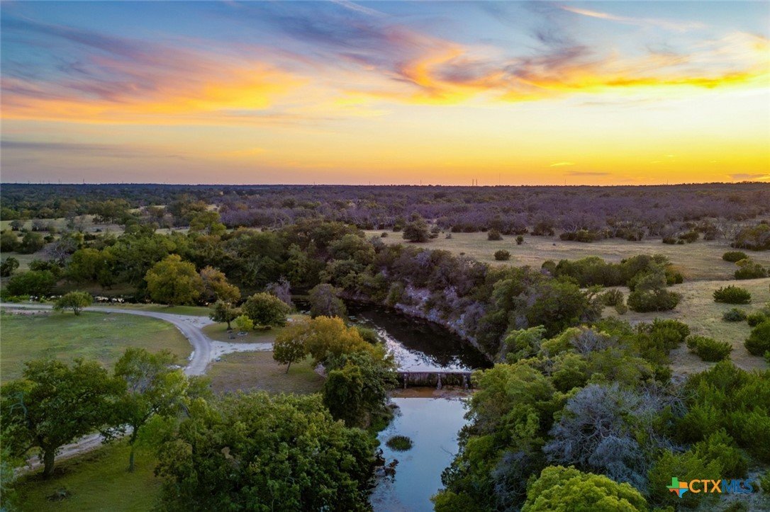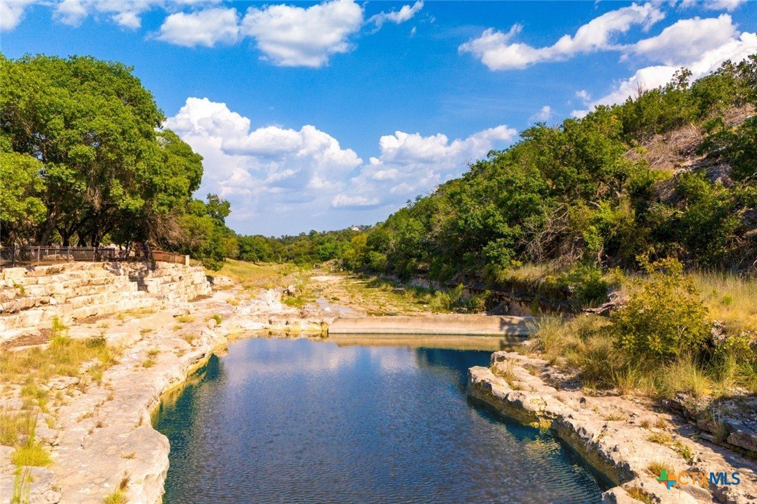 Experience the best of both worlds on this stunning 28.15-acre live water ranch, where serene Hill Country views meet refined comfort. The main house rests under tall oaks near creekside bluffs, w/ features like wrought iron doors, hand-hewn cedar beams, vaulted ceilings, rich woodwork, multiple fireplaces. The open-concept kitchen boasts a large island, high-end appliances, & a walk-through butler’s pantry. Step onto the vaulted, cedar-beamed patio & expansive stone terrace overlooking the creek—ideal for peaceful mornings or lively gatherings. A standout feature is the indoor/outdoor firepit room with floor-to-ceiling gas firepit, recessed wet bar, wine cooler, mini fridge, & built-in grill. A full wall of sliding glass doors opens to the outdoors, transforming the space for any occasion. Nearby, the game house offers a living area, full bath, cedar bar, built-in kegerator, & room for games or guests. At the far end of the property sits a 90x74' steel building w/ five 12x10 garage doors, HVAC living space, kitchenette, & bath—great for guests, caretakers, or income. The barn includes 14 covered bays, RV/equipment storage, & hookups. Located in the high-end gated Maverick community, enjoy a clubhouse, pool, sport courts, trails, Blue Hole access, paved roads, fiber internet, high-fenced perimeter, & more. Smaller acreage options: Lot 22 (10.57± acres), Lots 21+22 (16.2± acres).