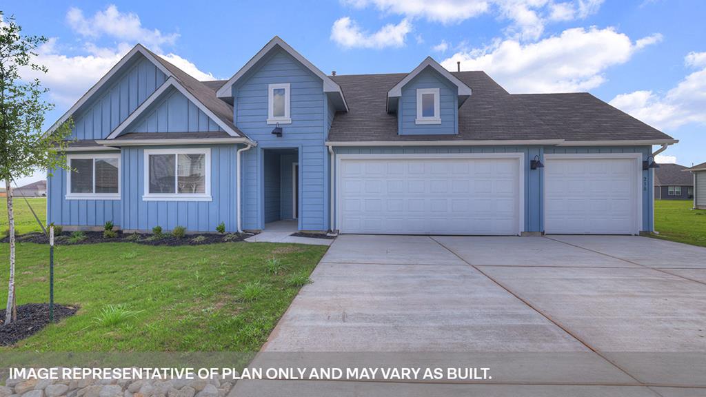 JANUARY ESTIMATED COMPLETION. Check out the Holden at Sonoma Oaks, a one-story floorplan featured in our community in Fredericksburg, Texas. Designed across 2,314 square feet, this home includes 4 bedrooms, 2 bathrooms, study and 3-car garage. Our homes in Sonoma Oaks feature our modern farmhouse exterior. Step inside the home from the covered entryway into the foyer. Down a short hall, you will find the secondary bedrooms, bathroom, and the utility room. Each bedroom includes a closet with shelving and the secondary bathroom features a shower/tub combination as well as a private door to the toilet and shower area. Moving through the short foyer, you will enter the kitchen, dining and family room. This spacious open concept living area will become your retreat at the end of the day. The kitchen includes an island with undermount sink, quartz countertops, decorative tile backsplash, a corner pantry closet, stainless-steel appliances and 36'' upper cabinets. The family room opens to the bright study, perfect for a home office or library. The primary bedroom is tucked away off the family room and includes a private bathroom with his and hers walk in closets. Enjoy the luxurious 5' walk in shower, quartz countertop vanity with double sinks, and a private toilet area with a door in this large bathroom space. The Holden includes vinyl flooring throughout the common areas of the home and the primary bedroom, and carpet in the secondary bedrooms. All our new homes at Sonoma Oaks feature a covered back patio, full yard landscaping, and irrigation system. This home includes our America's Smart Home base package, which includes a Video Doorbell, Front Door Deadbolt Lock, Home Hub, Thermostat, and Deako Smart Switches.