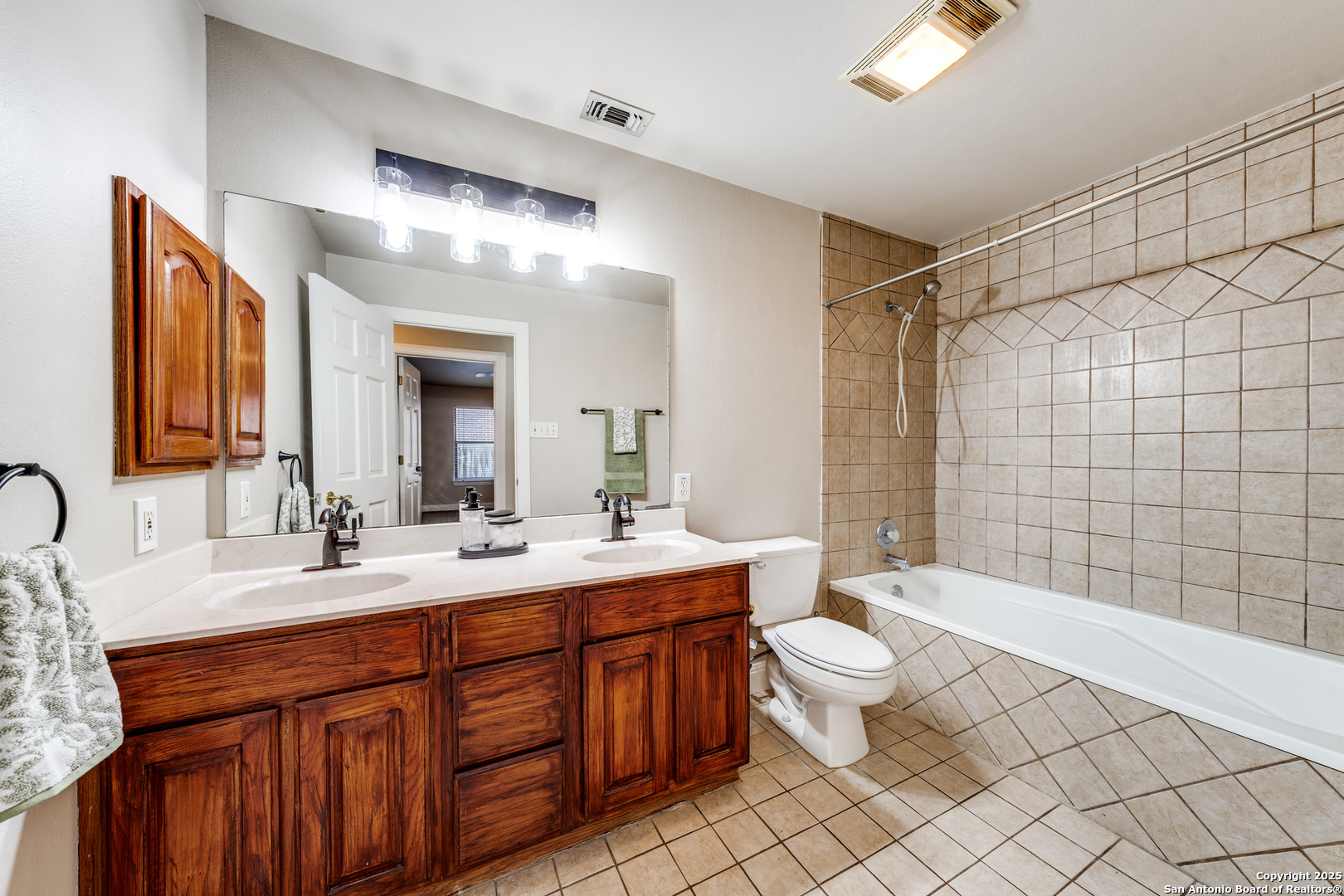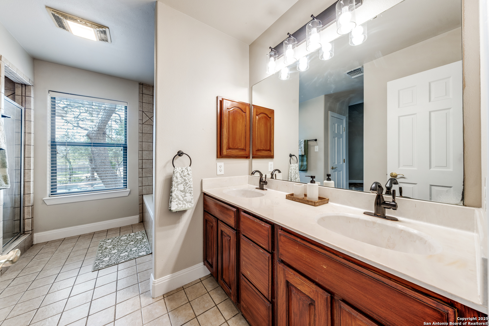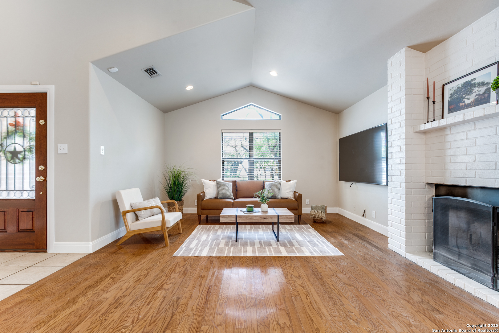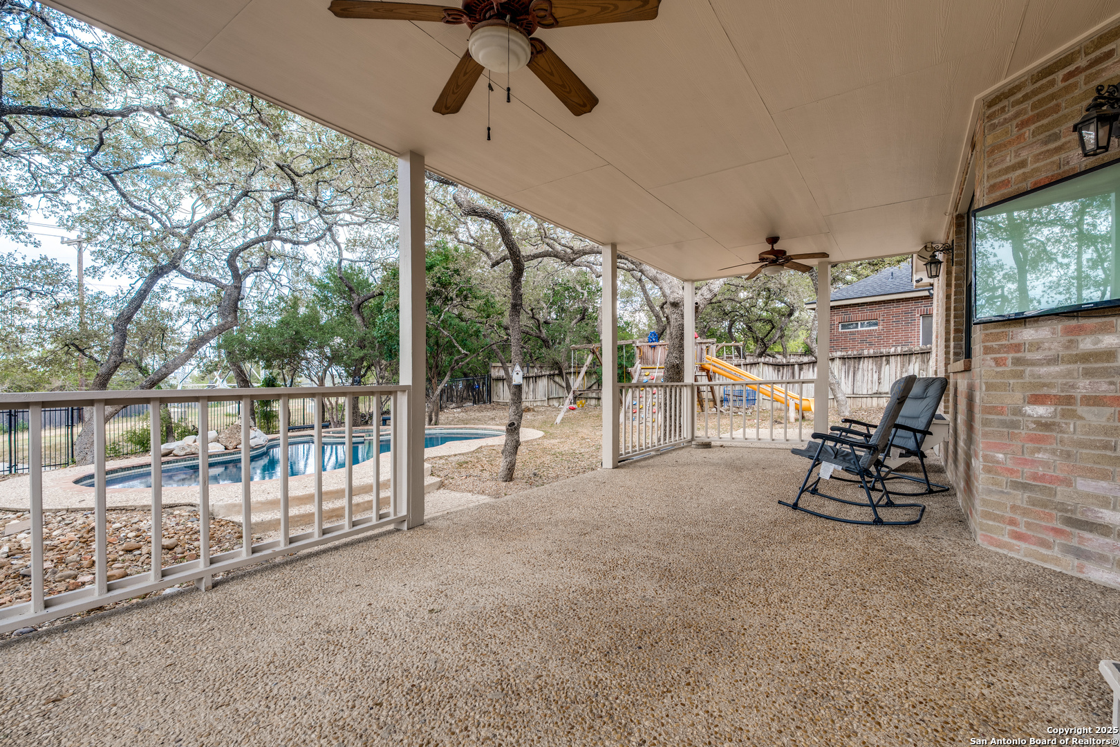 MOTIVATED SELLER***OPEN HOUSE 10/26 1-3PM ***OPEN HOUSE 10/30 4-6PM 400+ additional square footage added..Come see this lovely single-story home in the heart of far north central San Antonio. This stately brick residence, built in 2001, offers approximately 2500 sq feet of thoughtfully designed living space with 3 bedrooms, 2 full baths and a spacious 0.25- acre lot. This home features a beautiful inground pool with Mature trees and lots of area for outdoor entertainment. Additional highlights include a converted two-car garage ready for football watching or game room activities and a great storage unit, perfect for keeping yard equipment , tools, or seasonal supplies organized and out of sight. Don't miss your chance to make this beautiful home yours!