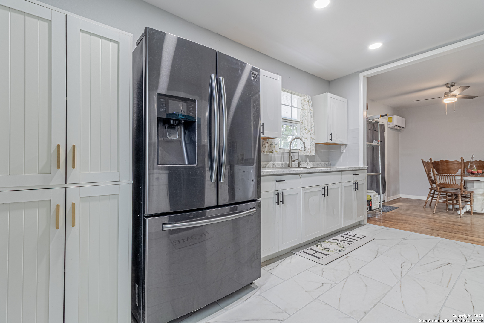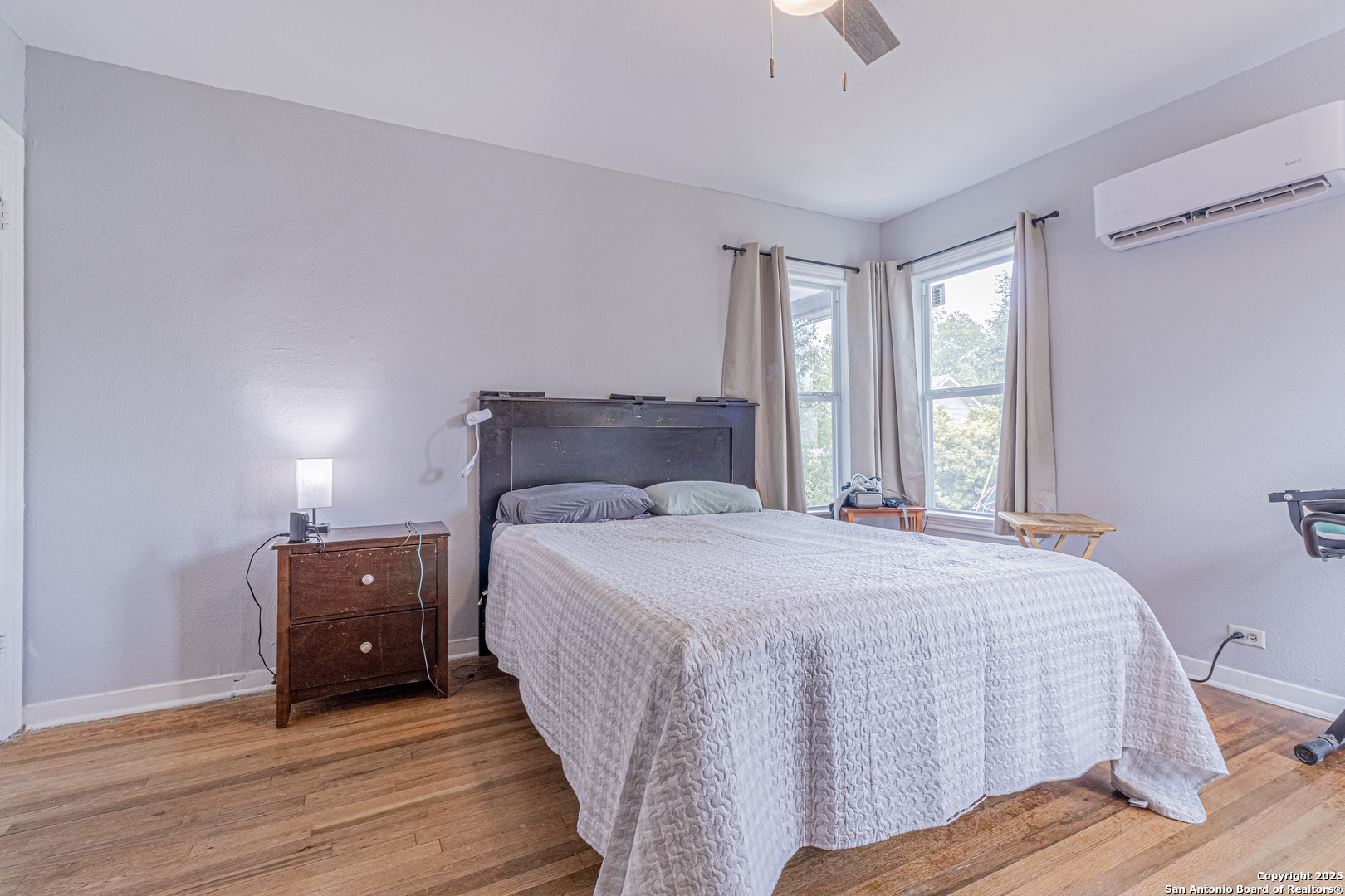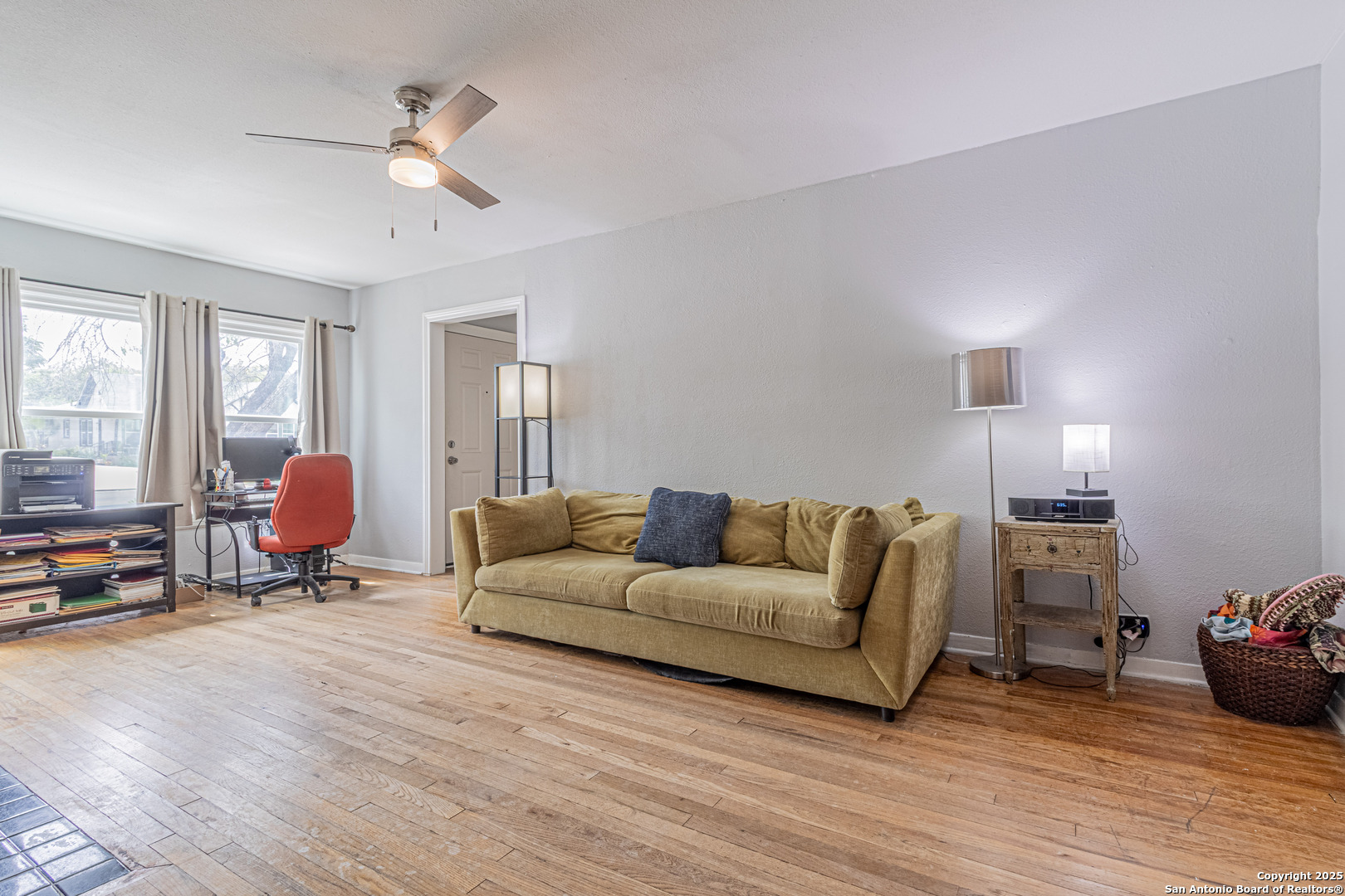 Charming and thoughtfully updated home in historic Woodlawn Lake! This 3-bedroom, 2-bath residence blends original character with modern upgrades across its 1,223 square feet. Step inside to find beautiful original hardwood floors and a fully renovated kitchen featuring updated cabinets, countertops, lighting, plumbing, a new gas stove (2025), and a refrigerator installed in 2023.. Primary bathroom have been remodeled with new tile, vanities, lighting, fixtures, and a new bathtub. Comfort is key with four mini-split AC/heating units, new ceiling fans, double-pane windows, and updated doors. Major system improvements include foundation leveling (2025), a new roof (2020), updated electrical, a 2017 water heater, and a 2015 privacy wood fence. The home also features a newly constructed front porch, fresh interior and exterior paint, and refreshed flooring in the kitchen and baths. Just minutes from Woodlawn Lake Park, this vibrant location offers access to trails, tennis and basketball courts, a playground, and a scenic lake with a boat ramp. Don't miss the opportunity to own a move-in-ready home in one of San Antonio's most established and walkable neighborhoods!