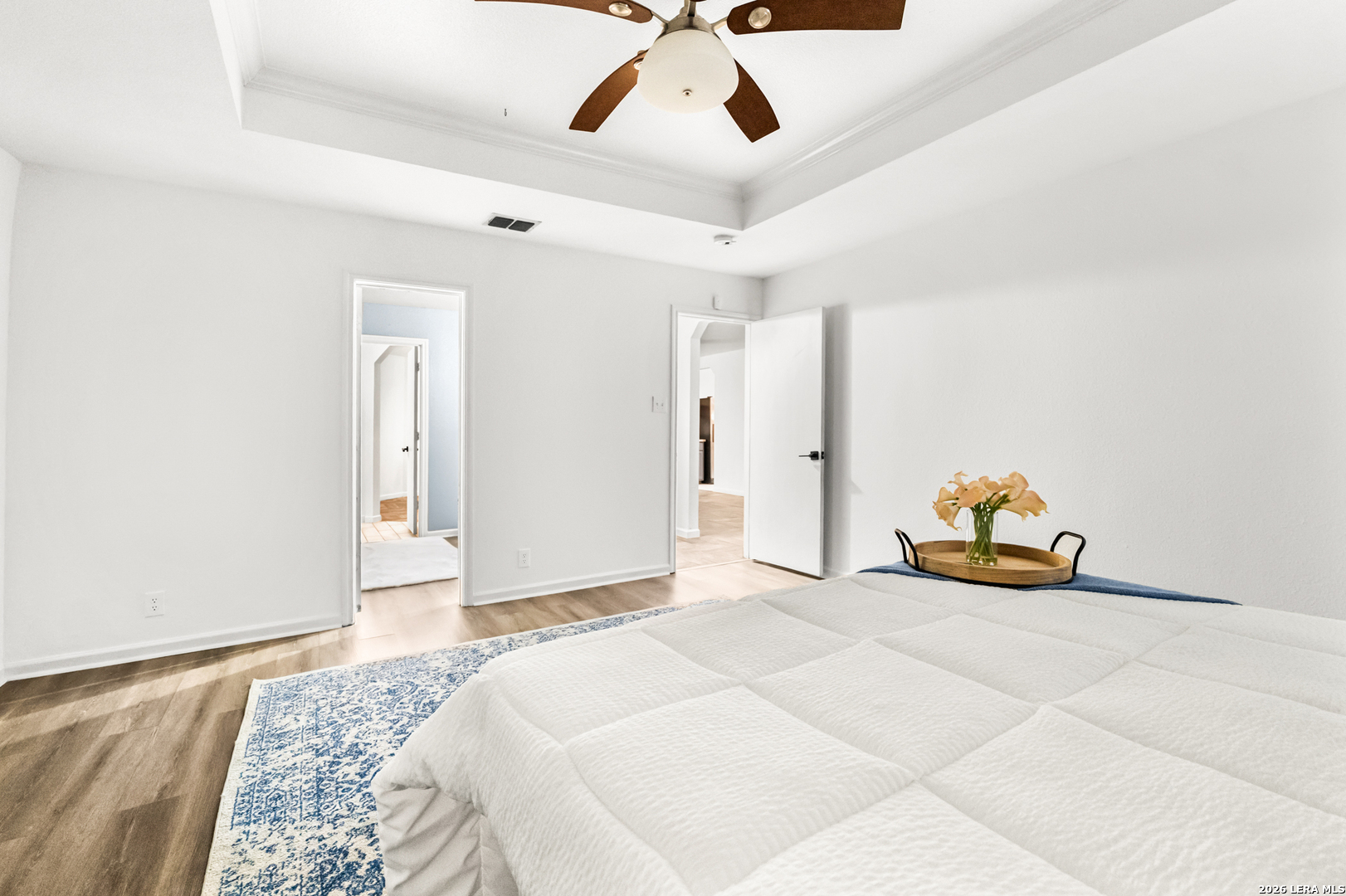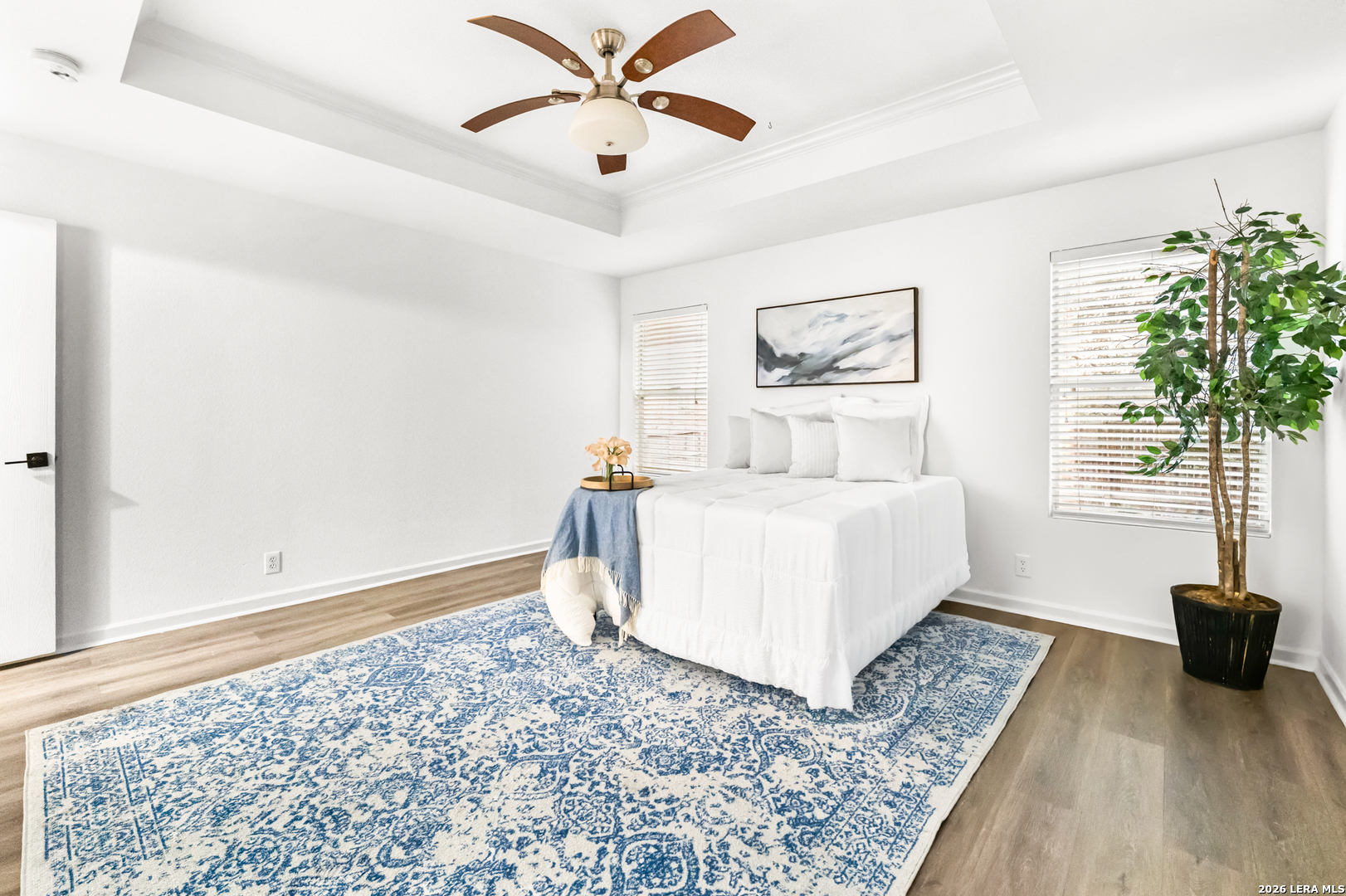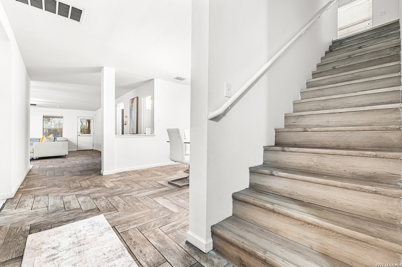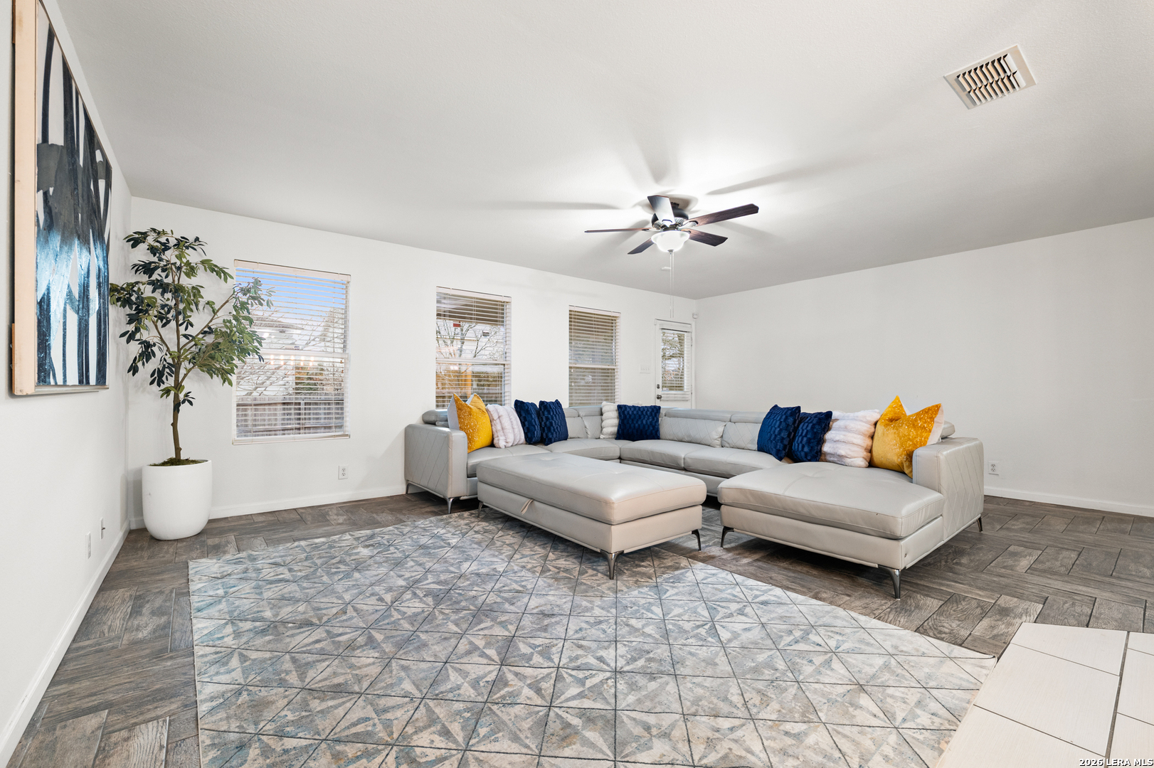 Discover this spacious two-story home offering 4 bedrooms, 2.5 bathrooms, and 2,861 sq ft of versatile living space. Built for modern family life, the open layout includes a welcoming entry that flows into generous living and dining areas, perfect for gatherings or everyday comfort. The kitchen provides ample counter space and cabinetry, ready for meal prep and casual dining. Downstairs, the primary suite delivers a private retreat with an en-suite bath, while three additional bedrooms upstairs offer flexibility for family, guests, or a home office. Additional highlights include a half bath downstairs for convenience, plenty of natural light throughout, and a backyard area ideal for outdoor enjoyment. Recent updates include a roof that is only four years old and fully paid-off solar panels, offering long-term savings and peace of mind. Located in the desirable Oliver Ranch community in north San Antonio, this property sits close to top-rated schools, shopping, dining, and major highways for easy commuting. A solid choice for those seeking room to grow in a convenient Hill Country-adjacent setting.